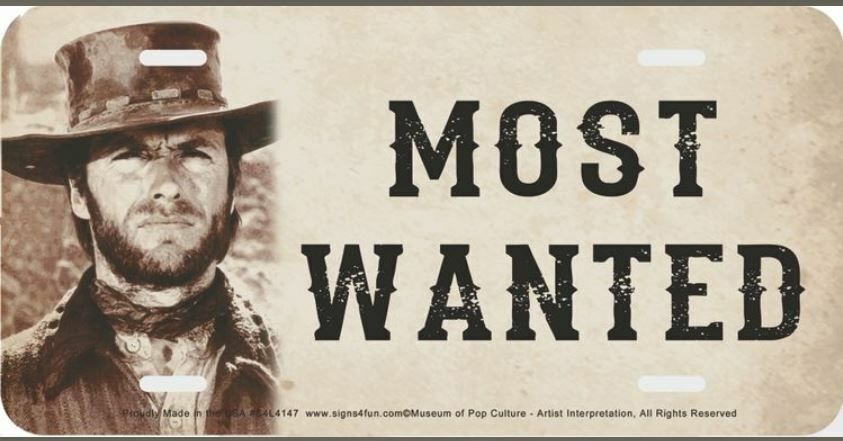 US Blechschilder im US Nummernschildformat ( 12 x 6 inch = ca. 30 x 15 cm ) Clint Eastwood - most wanted vorgebohrte Löcher lizenzierte Neuware, ovp - incl. Versand Abholung in unserem Ladengeschaeft Retro World in 73563 Mögglingen - Lauterstrasse 27 möglich !