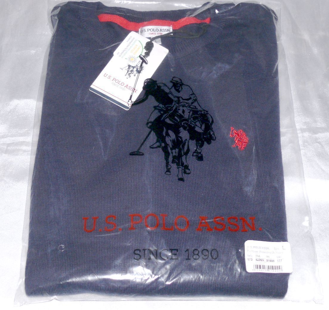 US POLO ASSN Herren Pullover Rundhals Ausschnitt Klassischer Schnitt Dk. Blau L