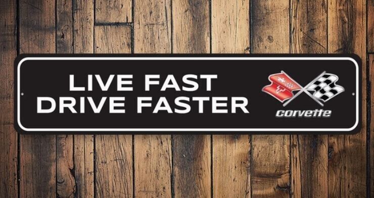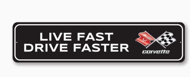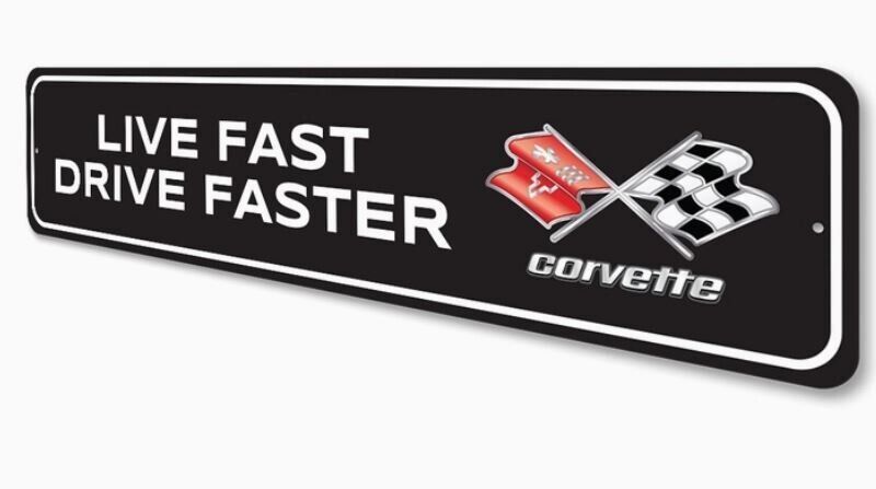 US Schild Corvette Live Fast Drive Faster 45x10 cm Vette Big Block V8 Ami