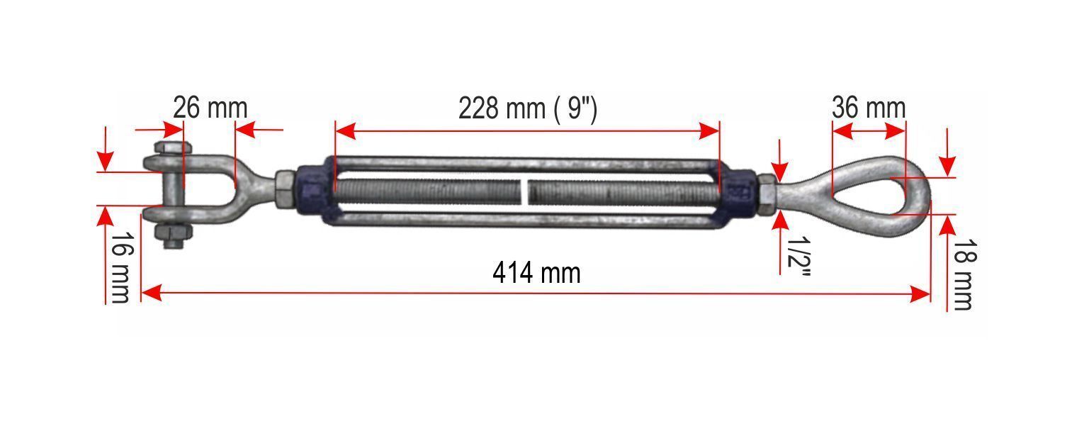 US Spannschloss 1/2 x 9 Zoll Gabel-Gabel Wantenspanner Spannschloß Spannschloss