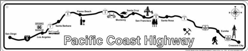 US Strassenschild 60x12 cm: Pacific Coast Highway 1 Map California San Diego