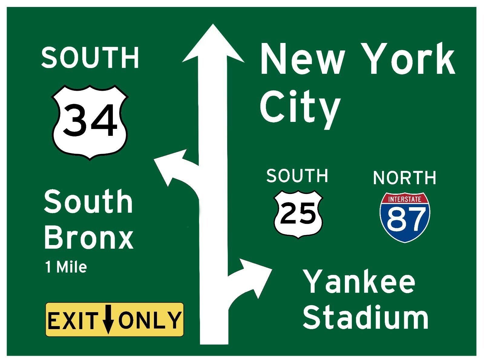 US Strassenschild Interstate 87 New York City - Yankee Stadium - Bronx 78x58 cm