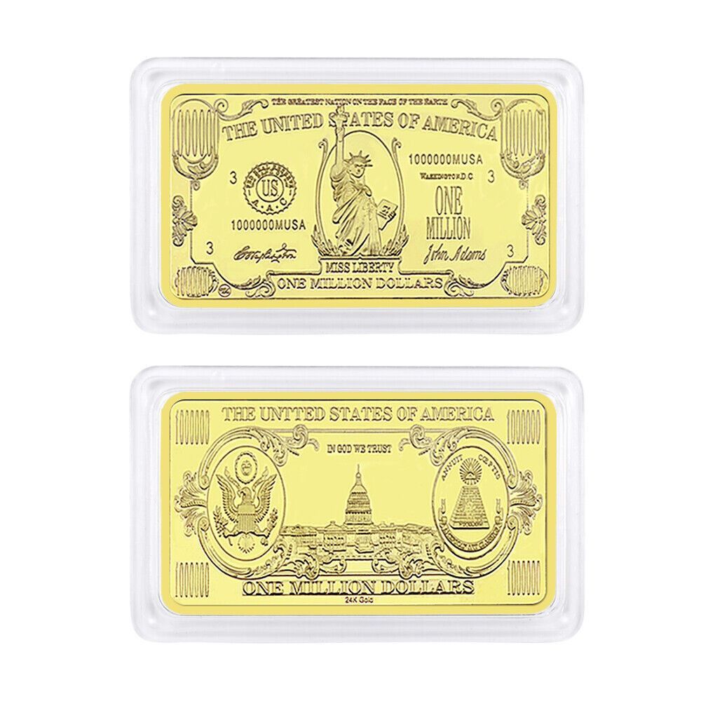 seltener USA Barren Dollar Souvenier Barren wie abgebildet 1 Million Dollar Diese Barren sind nur selten zu bekommen und wurden nur in kleiner Menge hergestellt. Nachprägung Ideal für Sammler oder auch einfach nur ein schönes Geschenk. vergoldet Maße ca. 5 x 3 x 2,9 mm Gewicht für 1 Barren ist ca. 3