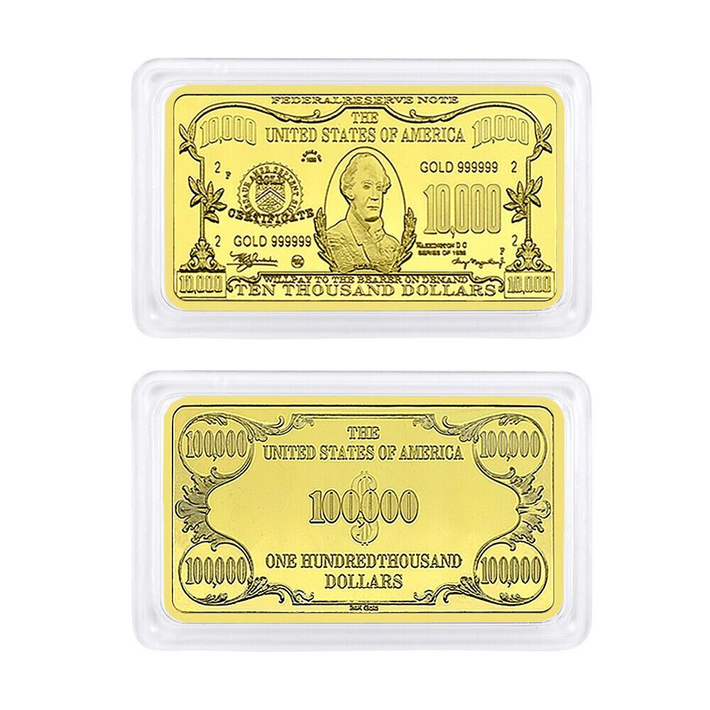 seltener USA Barren Dollar Souvenier Barren wie abgebildet 10000 Dollar Diese Barren sind nur selten zu bekommen und wurden nur in kleiner Menge hergestellt. Nachprägung Ideal für Sammler oder auch einfach nur ein schönes Geschenk. vergoldet Maße ca. 5 x 3 x 2,9 mm Gewicht für 1 Barren ist ca. 32,2