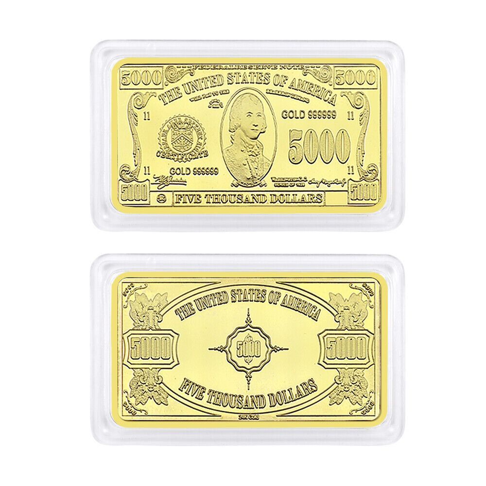 seltener USA Barren Dollar Souvenier Barren wie abgebildet 5000 Dollar Diese Barren sind nur selten zu bekommen und wurden nur in kleiner Menge hergestellt. Nachprägung Ideal für Sammler oder auch einfach nur ein schönes Geschenk. vergoldet Maße ca. 5 x 3 x 2,9 mm Gewicht für 1 Barren ist ca. 32,2 G