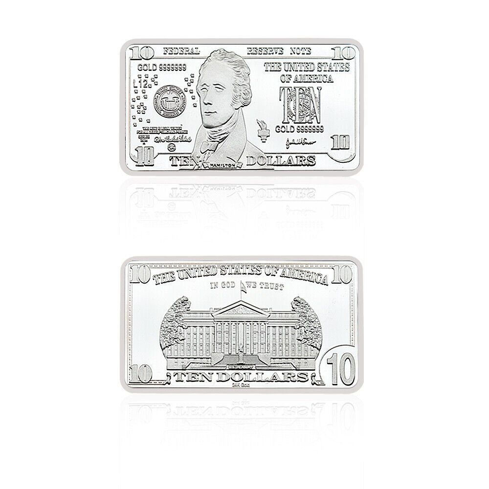 seltener USA Barren Dollar Souvenier Barren wie abgebildet 10 Dollar Diese Barren sind nur selten zu bekommen und wurden nur in kleiner Menge hergestellt. Nachprägung Ideal für Sammler oder auch einfach nur ein schönes Geschenk. Neusilber Maße ca. 5 x 3 x 2,9 mm Gewicht für 1 Barren ist ca. 31,1 Gra