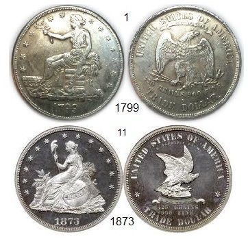 USA Trade Dollar Münze 1799 oder 1873, Nachdruck, je ca. 18 g / ca. 38 mm Durchmesser