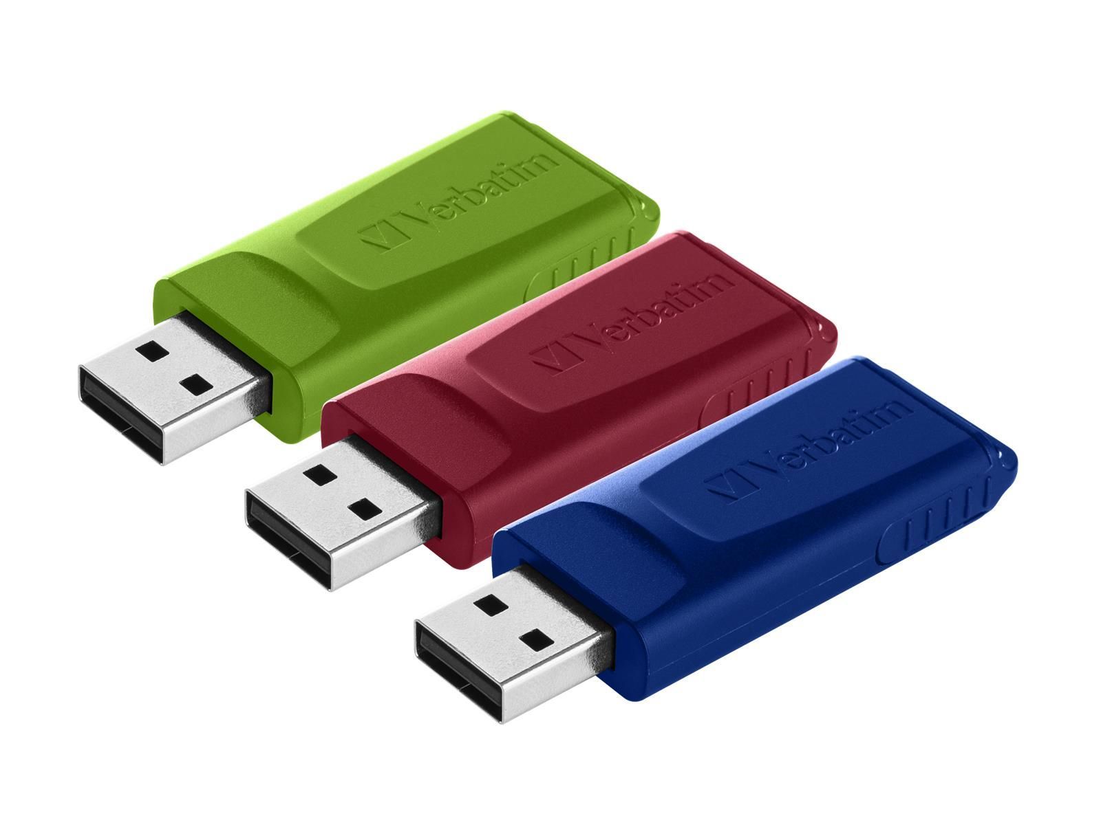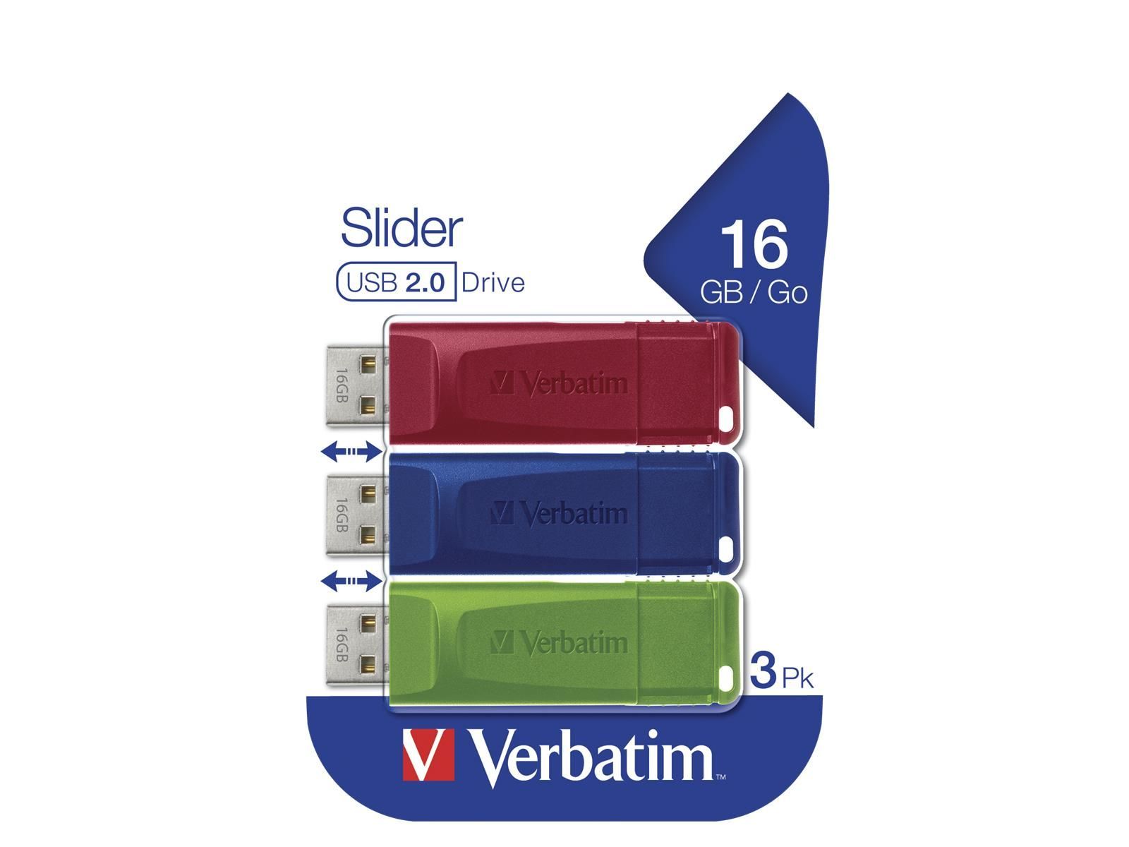 USB 2.0 Stick Verbatim, 16GB, Slider, rot-blau-grün, Multipack, 3er-Pack