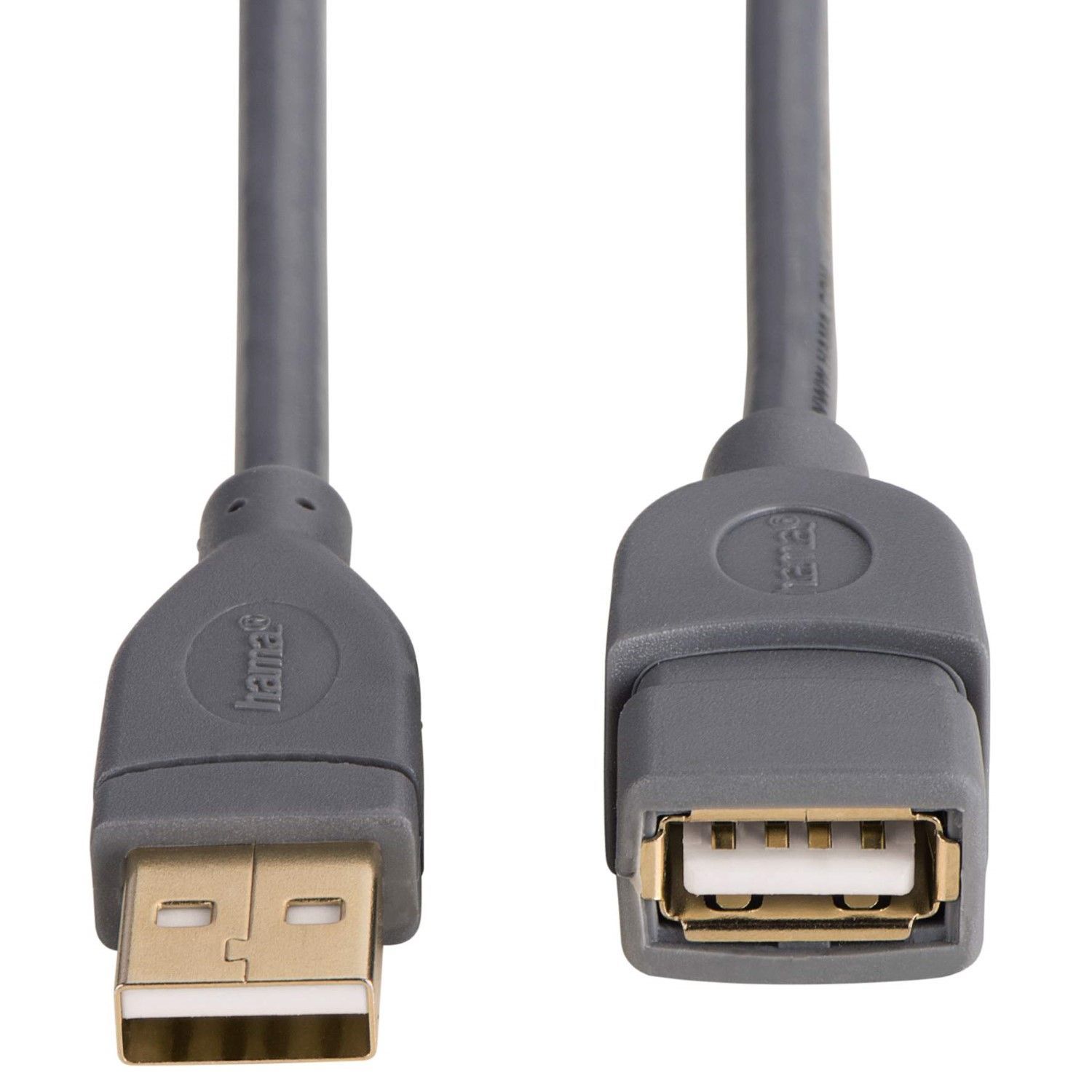 Hama USB 2.0 Verlängerungskabel 5m vergoldet Grau