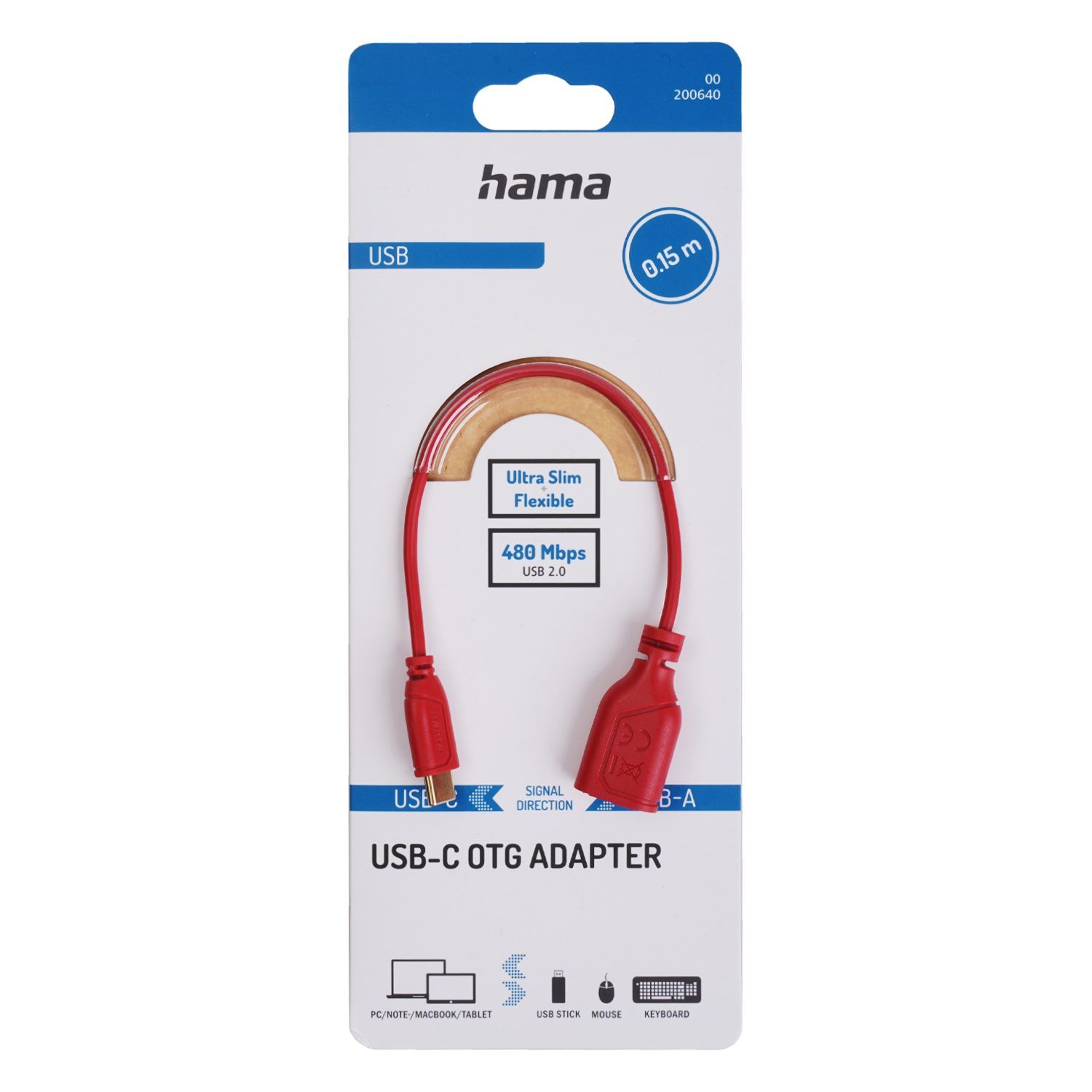 Hama USB-C auf USB-A Adapter-Kabel OTG Flexi&Slim Rot