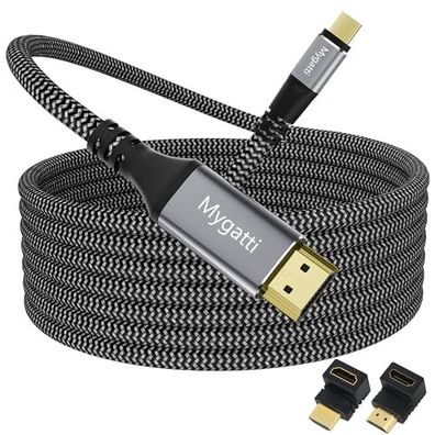 • Mygatti USB-C auf HDMI Kabel 10 m 4K 60 Hz mit Winkeladaptern