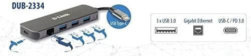 USB-C Hub D-Link mit Ethernet und 3 USB 3.0 Ports, Grau