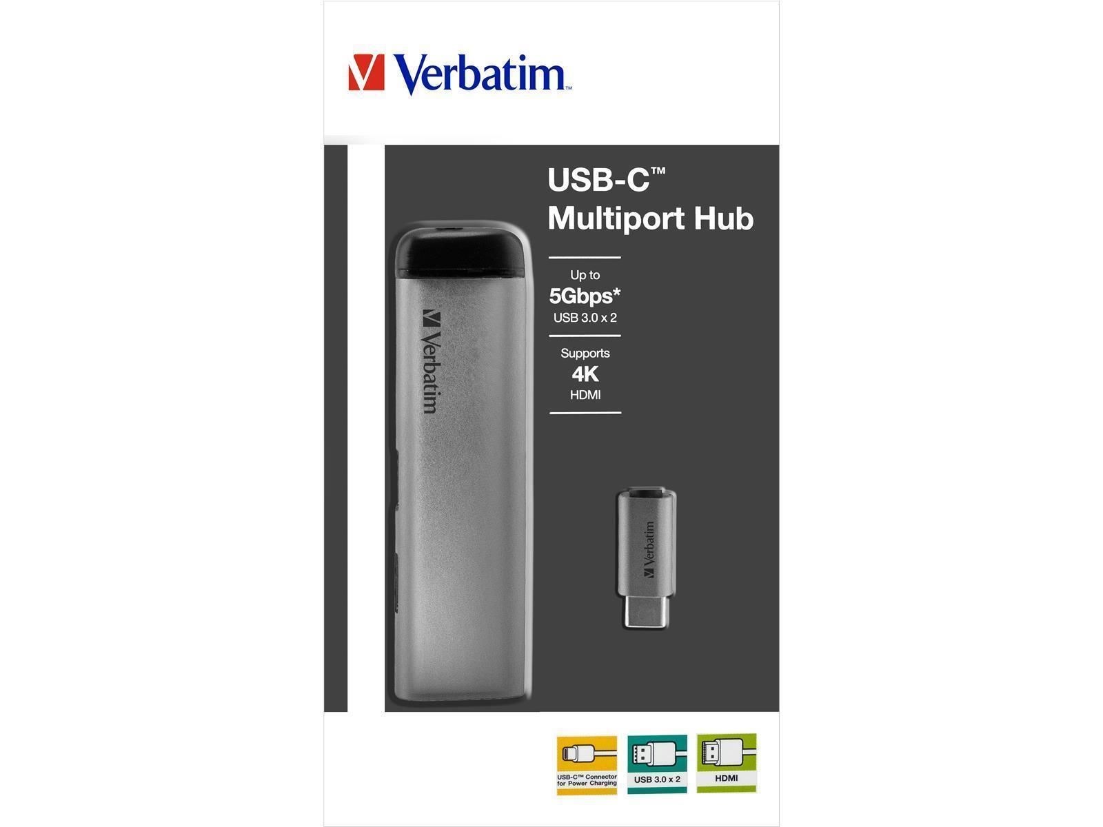 USB-C Multiport-Hub von Verbatim, USB 3.0, HDMI, SD, Ethernet, 15cm Kabel
