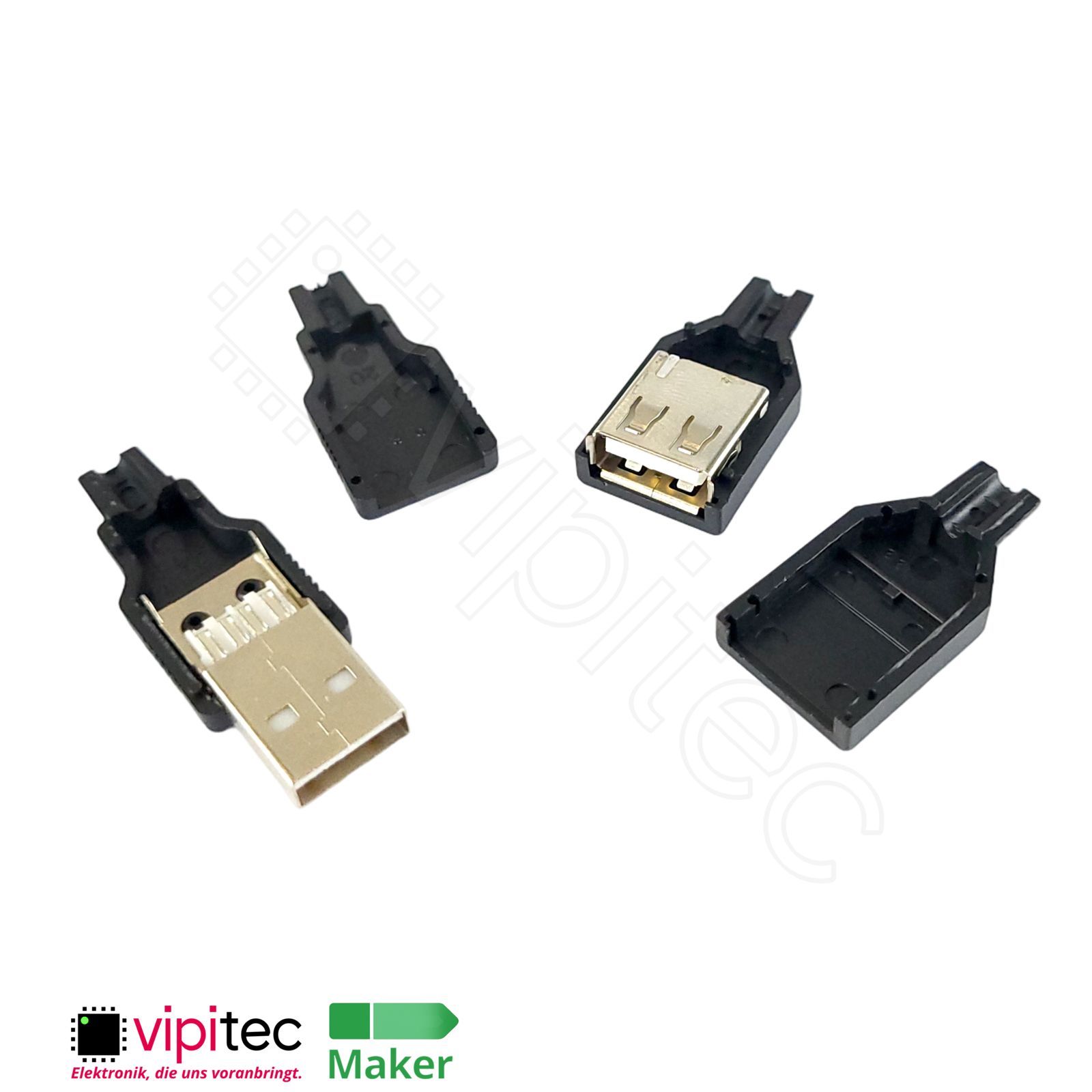 Warenkorb vipitec Shop Aktuelle Angebote Kontakt Bauelemente > Buchsen & Stecker > USB USB-A Kabelstecker Kabelbuchse & 8211; USB-Kontakt und Gehäuse als Bausatz Spezifikation: USB-A, 30 V, 1,5 A, -20..60 & 176;C In unserem Shop finden Sie weitere Produkte für Ihre Elektronikwerkstatt. Die