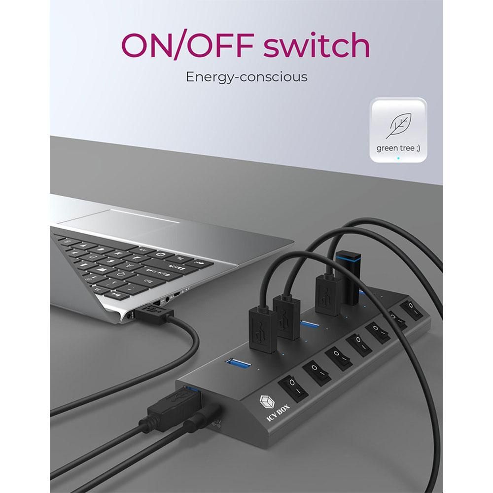 USB-Hub icy-box 7 Ports USB 3.0 Anthrazit