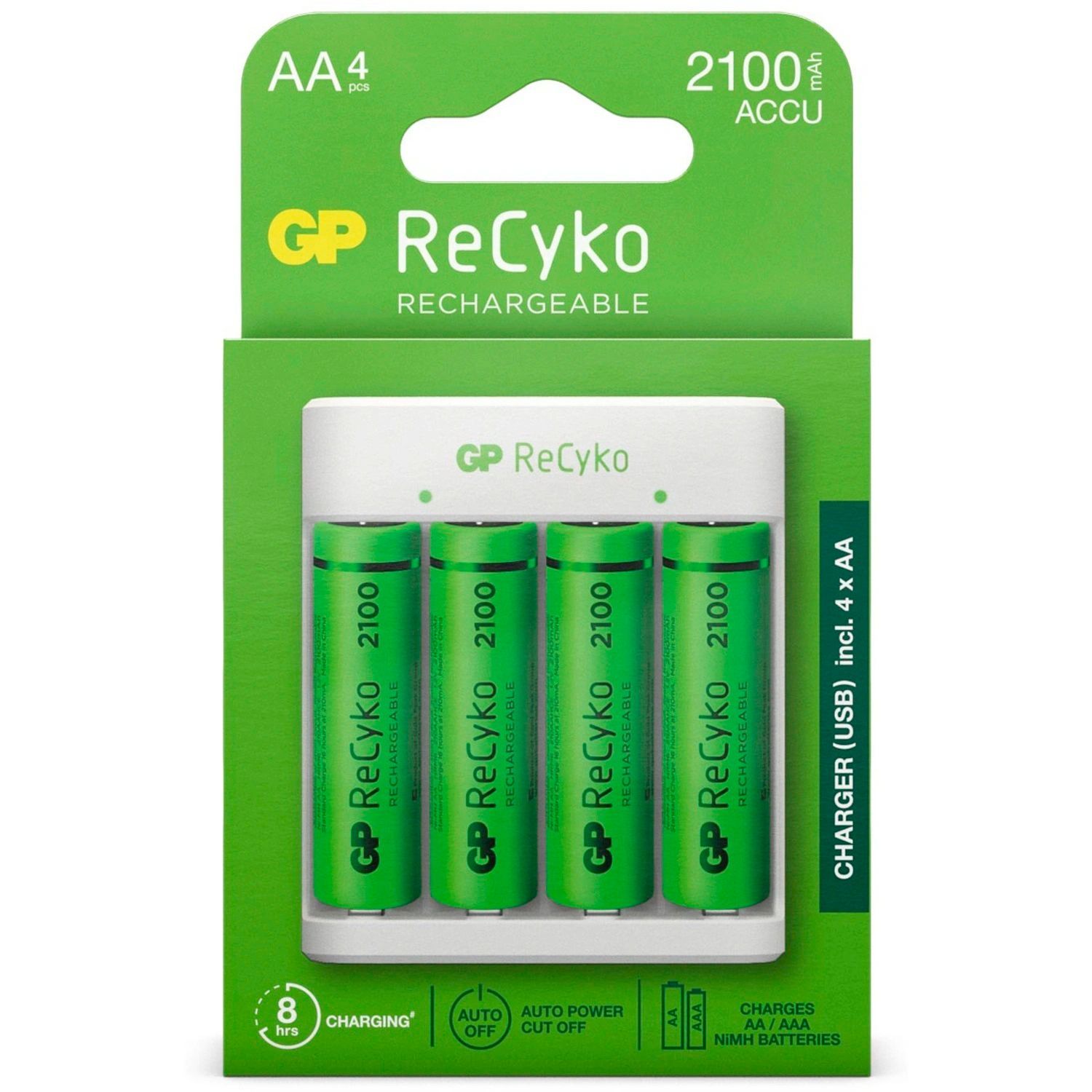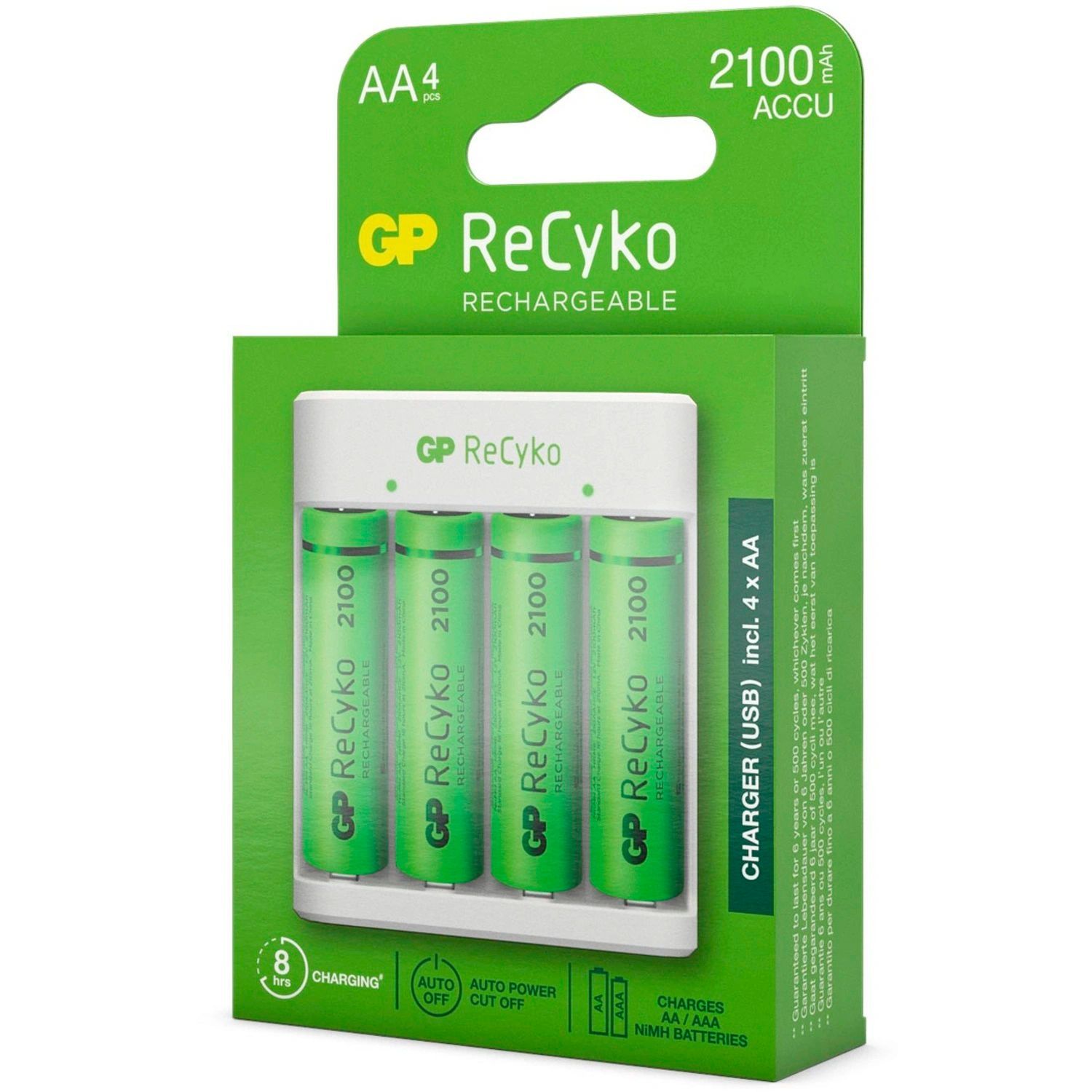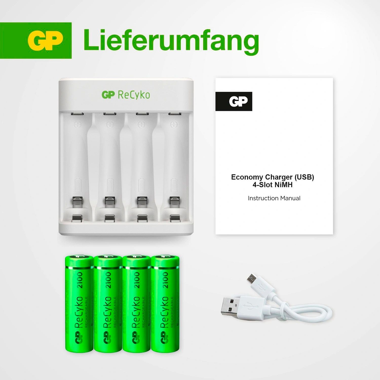 GP Batteries USB Ladegerät E411 + 4x ReCyko AA-Akkus 2100mAh