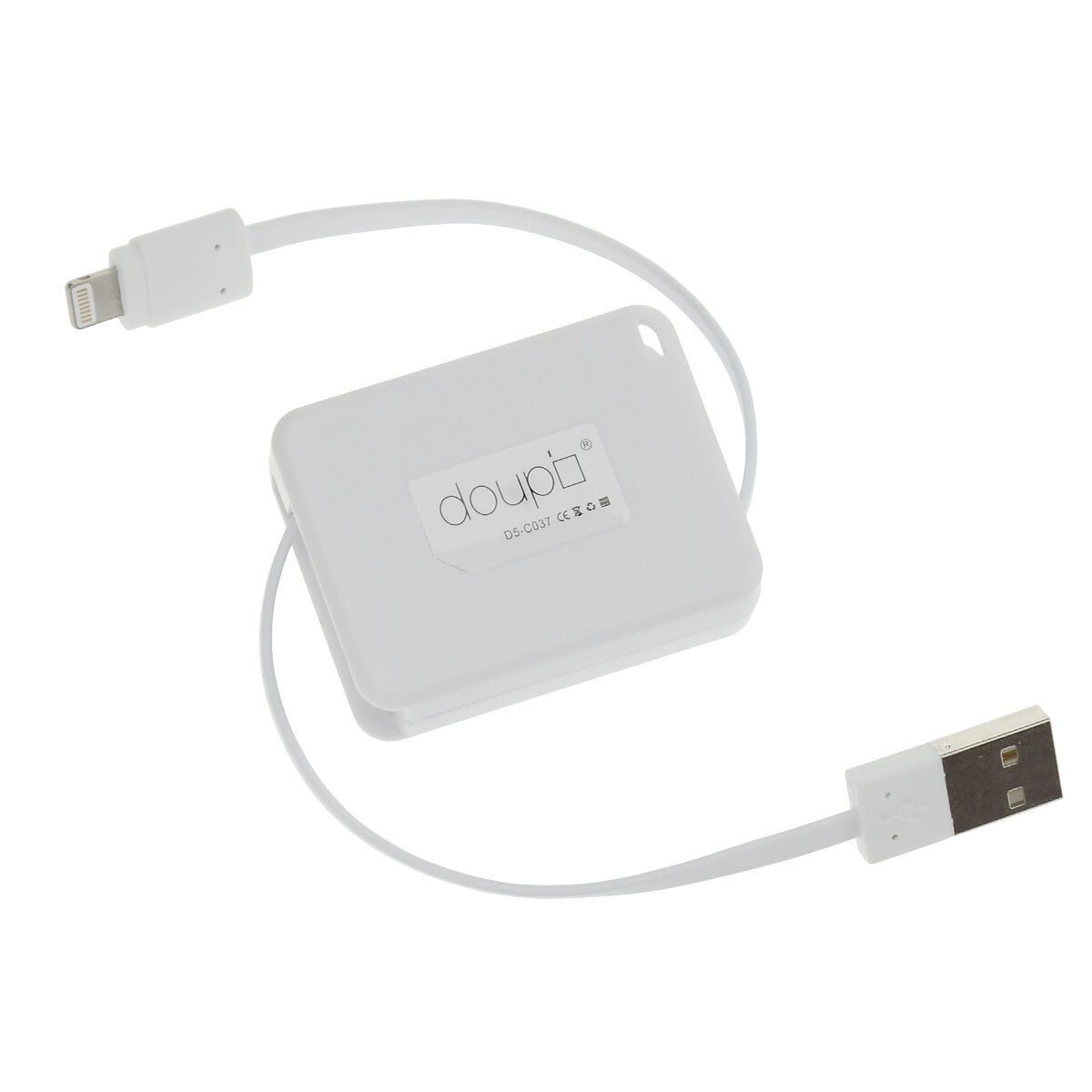 USB Lightning 8pin Lade Daten Sync Kabel Aufrollbar iPhone iPad iPod 1m Weiß