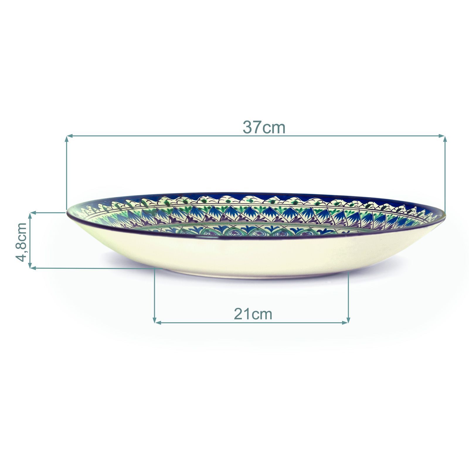 Usbekische Rischtan Lagan Ø37 cm Oriental Ljagan Keramik Schale Plate Glasur Telle