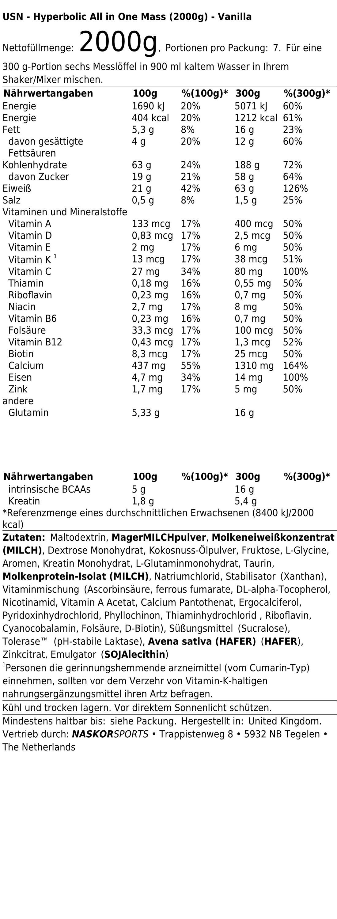 USN Hyperbolic All in One Mass (2000g) Vanilla