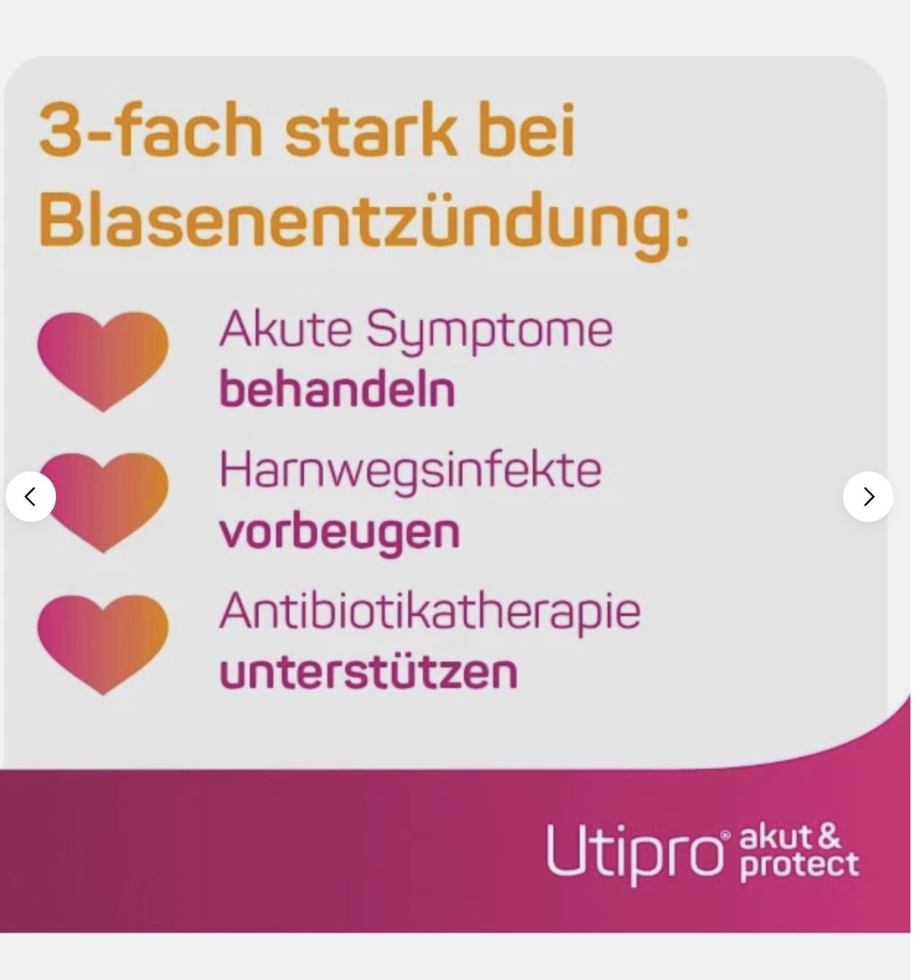 Utipro akut & protect, 3-fach stark bei akuter und wiederkehrender Blasenentzündung, akut und vorbeugend, unterstützend bei Antibiotika-Therapie, reduziert die Bakterien in Blase und Darm, 15 Stück Info zu diesem Artikel 3-fach stark bei Blasenentzündung: Utipro akut & protect lindert die Sy