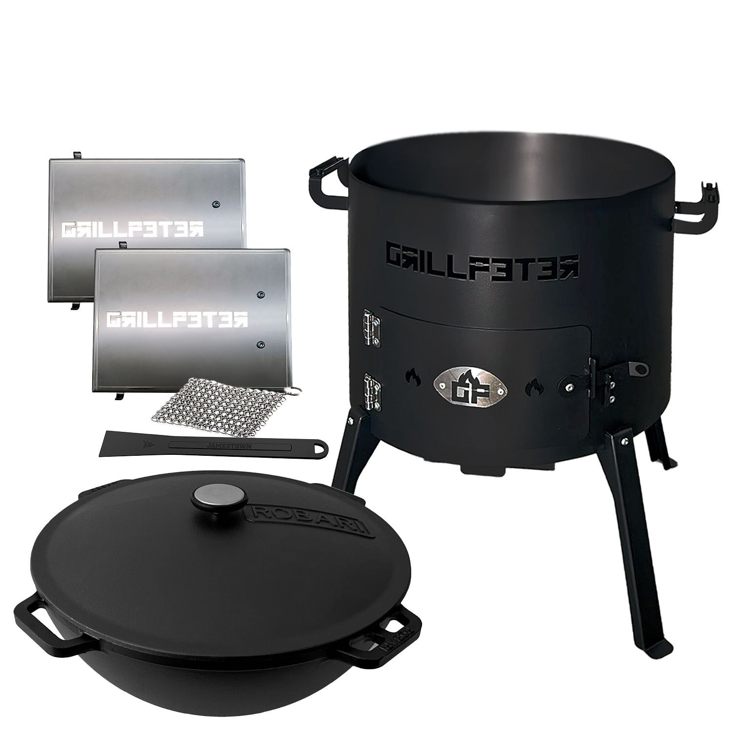 Utschak Nurlan Ø45 cm mit Kazan 20L aus Gusseisen und Reinigungsset