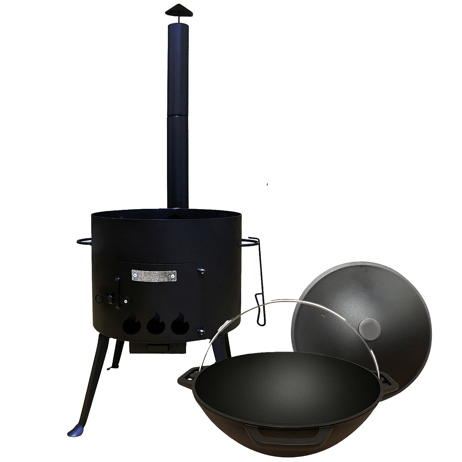 Utschak Set mit Rauchrohr Kasan 12L Gusseisen Deckel mit Henkel