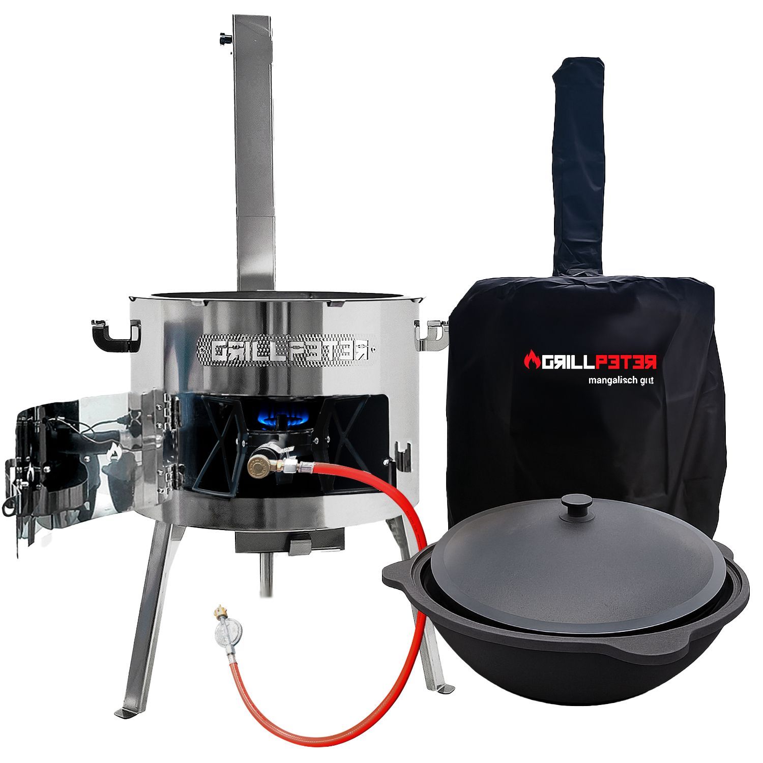 Utschak Timur Ø45 cm Edelstahl Kazan 16L Gaskocher und Abdeckhaube