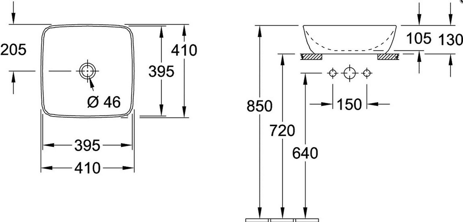 Villeroy & Boch V+B Aufsatzwaschtisch Artis 410x410mm ohne Überlauf weiss