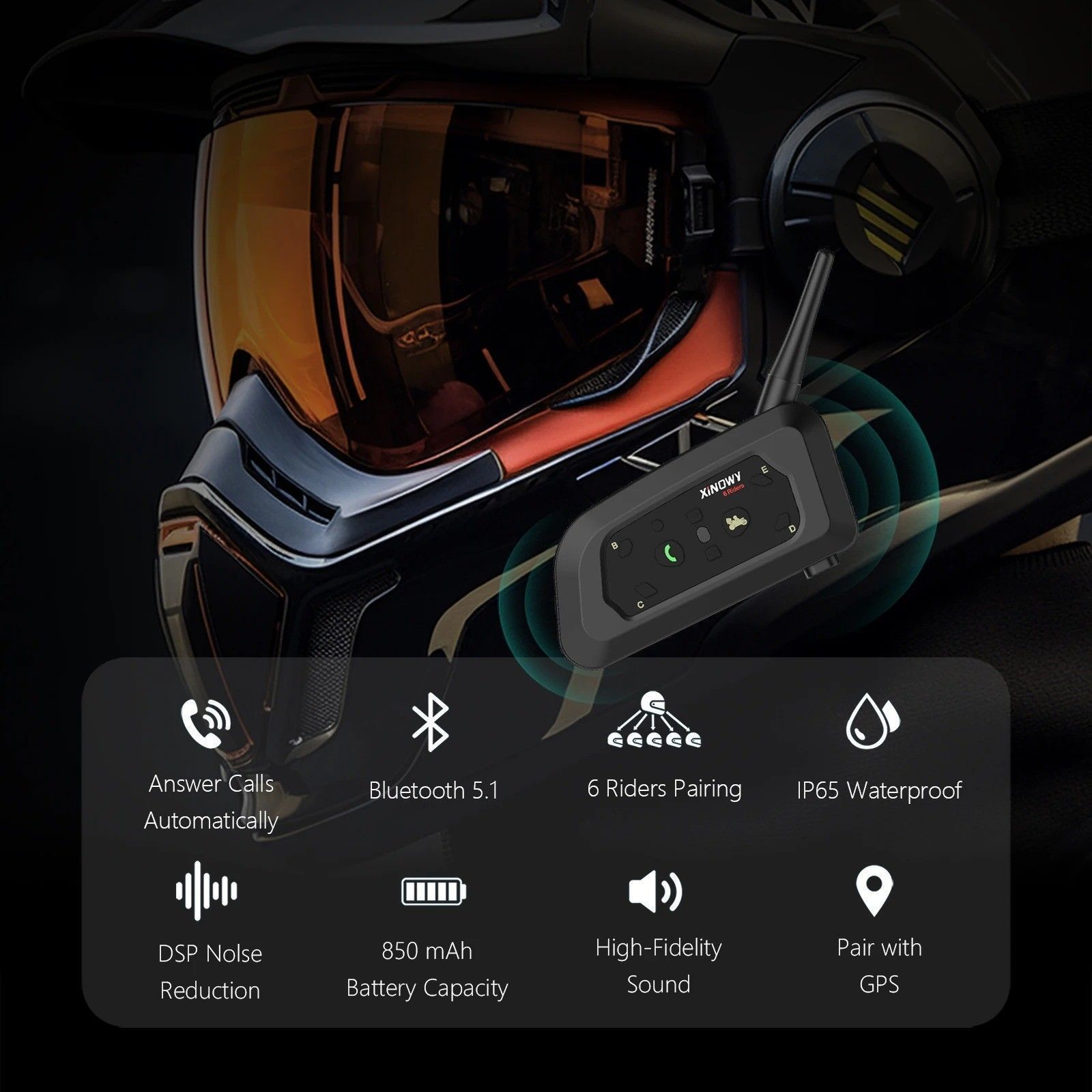 V6 PRO Motorcycle Bluetooth Helmet Intercom Headset 1200M Interphone Communicator