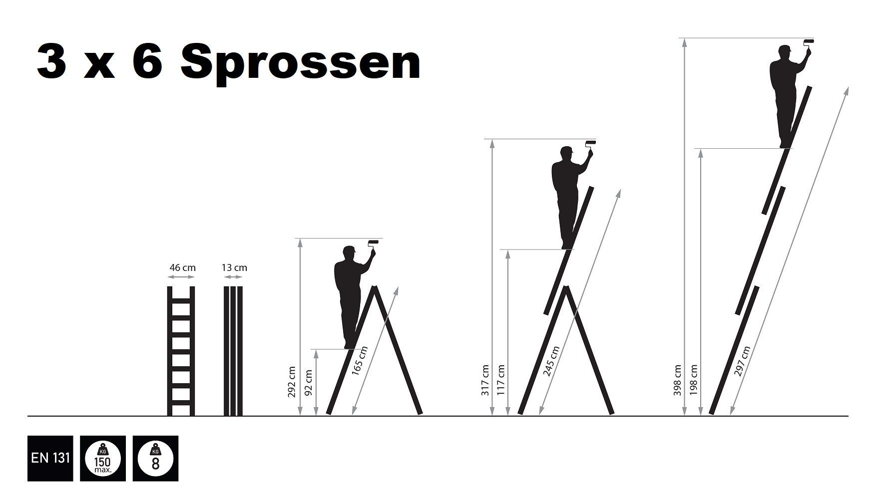 • Mehrzweckleiter Multifunktionsleiter Klappleiter 3x6 Sprossen Leiter