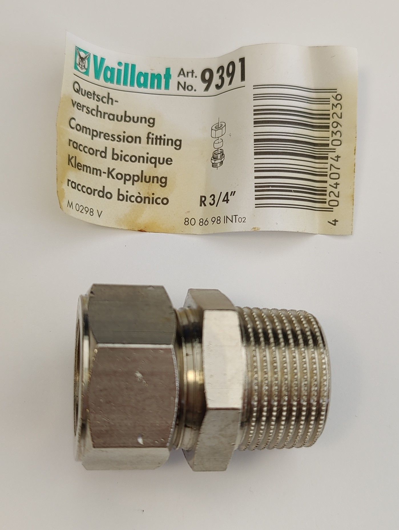 Wir bieten an: Vaillant Quetschverschraubung R 3 4 Art.-Nr. 9391 Artikel-Nr.: 2400001426 Technische Daten Hersteller Vaillant Modell Quetschverschraubung Herstellernummer 9391 Material Edelstahl, Messing Durchmesser R 3 4 Zoll Länge 43,3 mm Gewicht kg 0,1 Beschreibung: 1x Vaillant Quetschverschraubu... Mehr