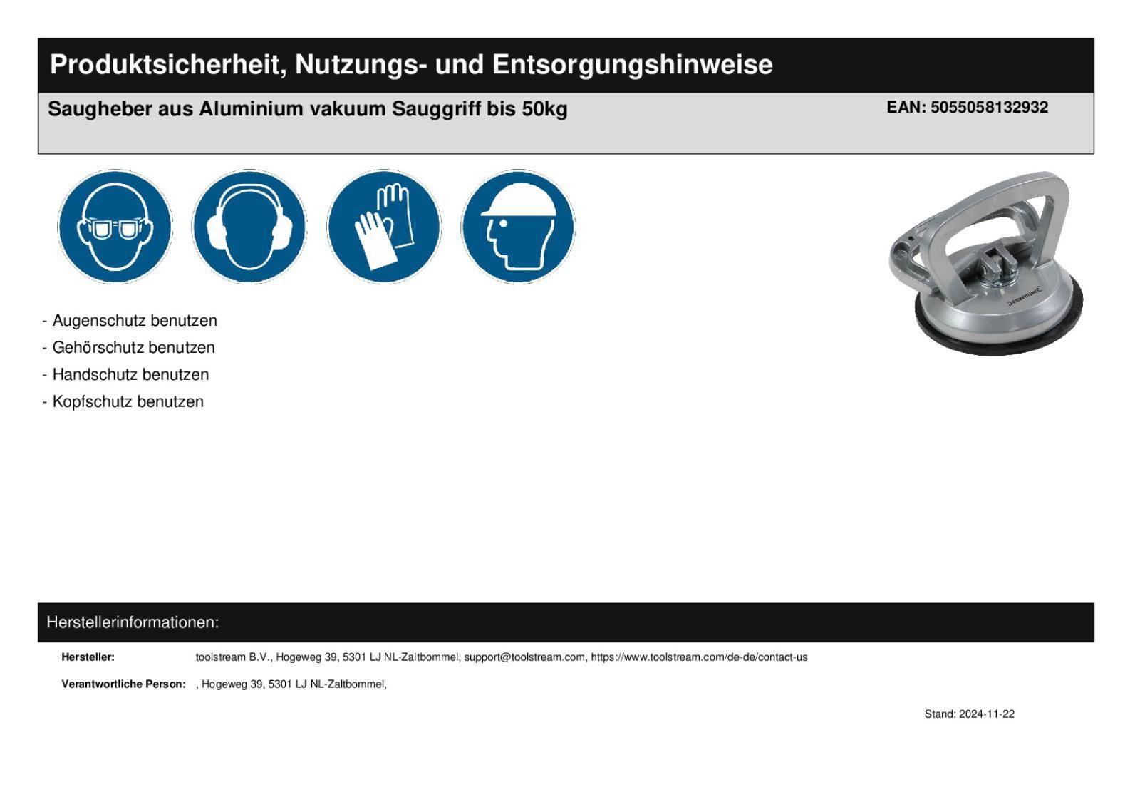 Vakuum Saugheber Aluminium Griff Gummisauger Plattenheber 50kg Hebekraft