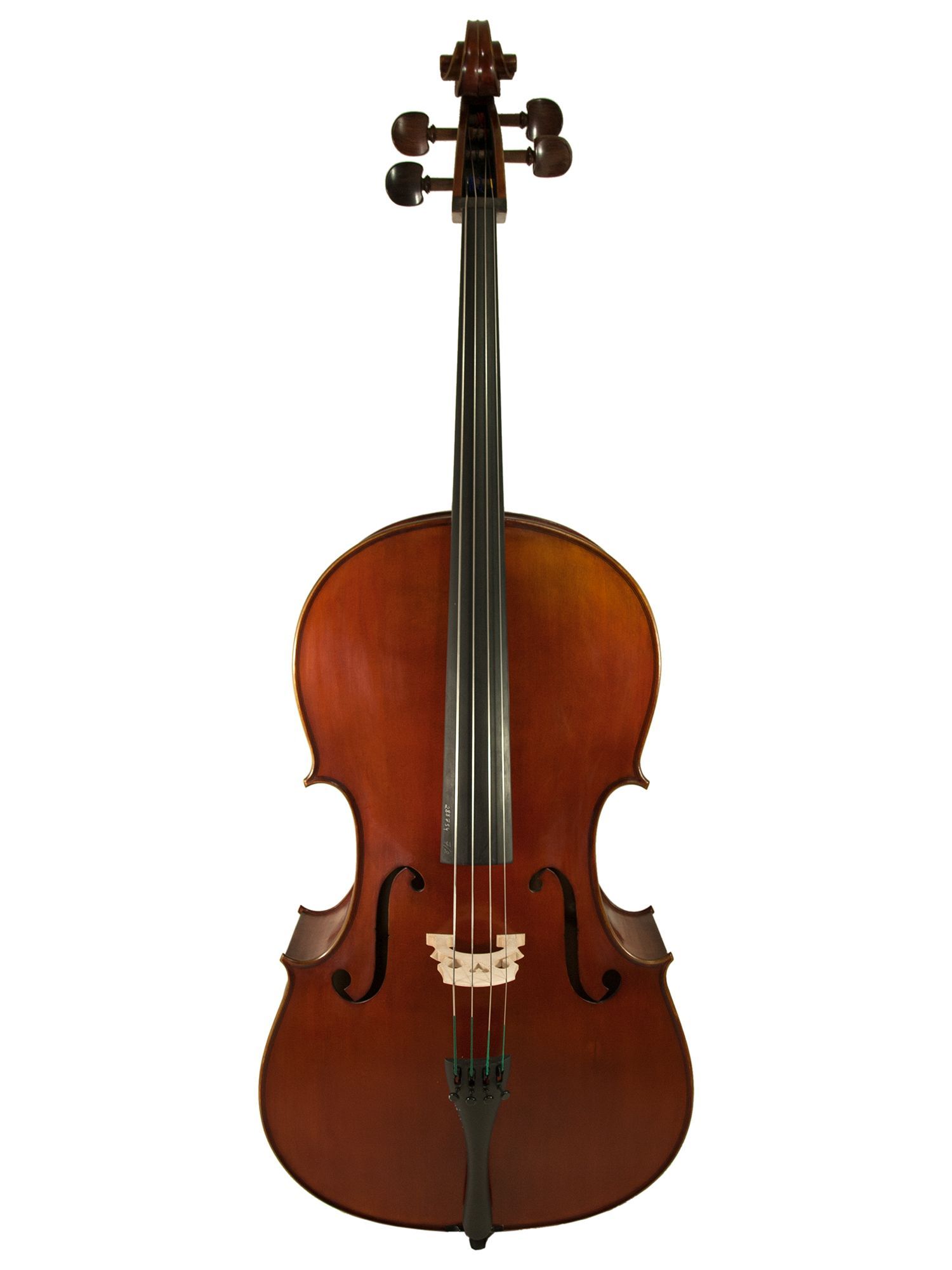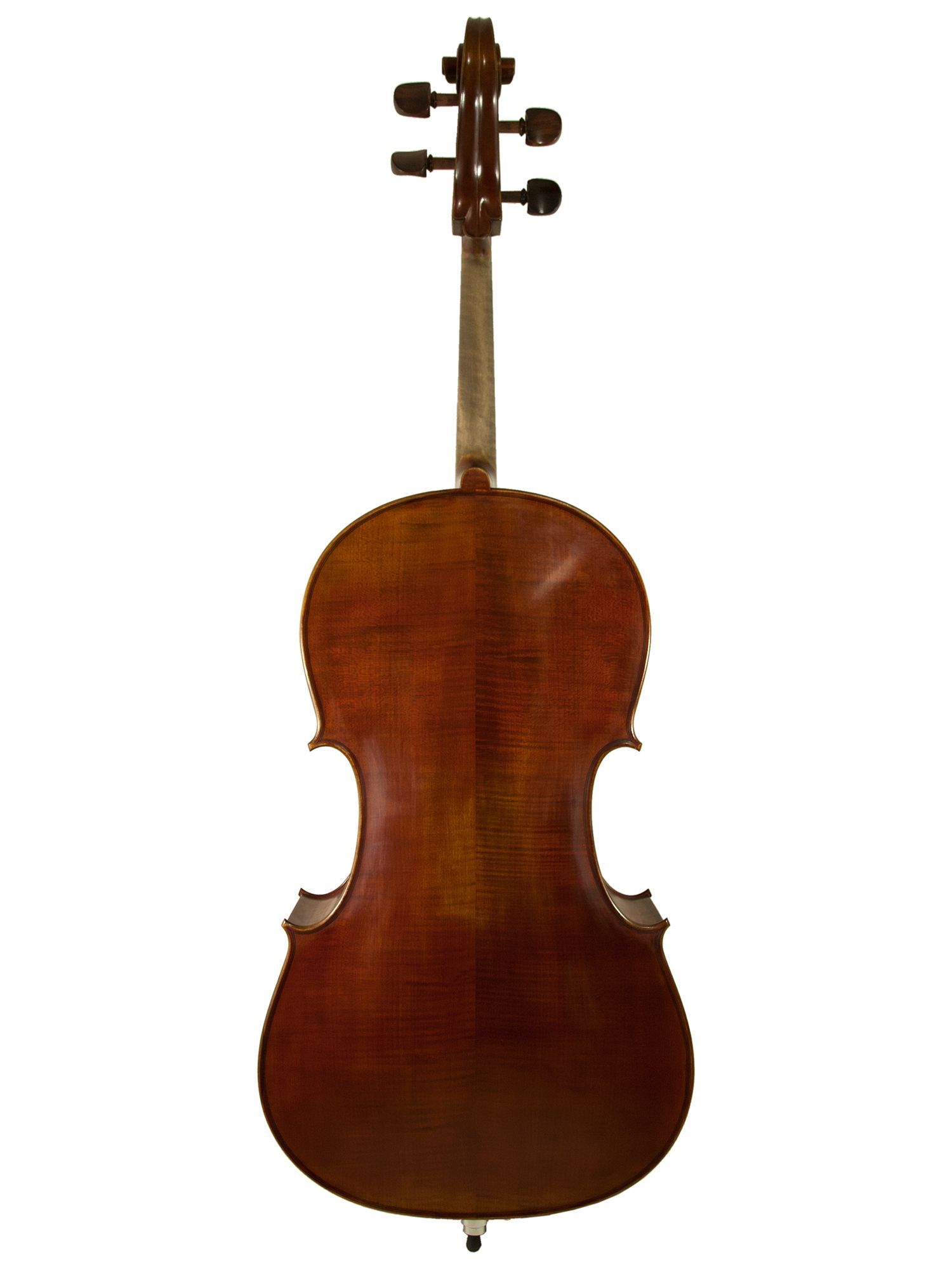 Valentina Cello VC 1903 7 8 feinjährige Fichtendecke mittelstark geflammter Boden mit breiten Jahresringen, Zargen schwach geflammt Ebenholzgriffbrett Wirbel aus Palisander mit Perlmuttauge Wittner Feinstimmsaitenhalter Pirastro Chromcor Saitensatz mittelbrauner Spirituslack auf gelbem Untergrund, h