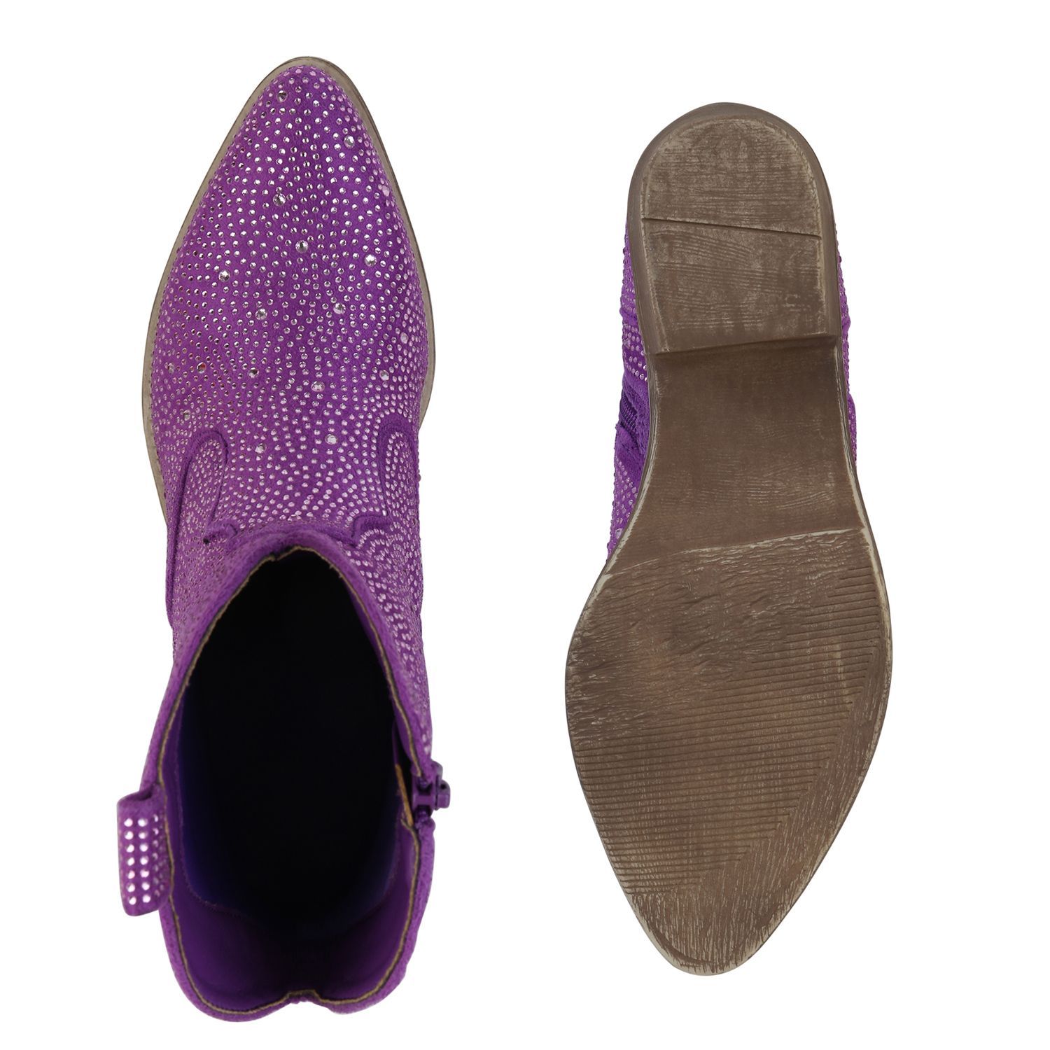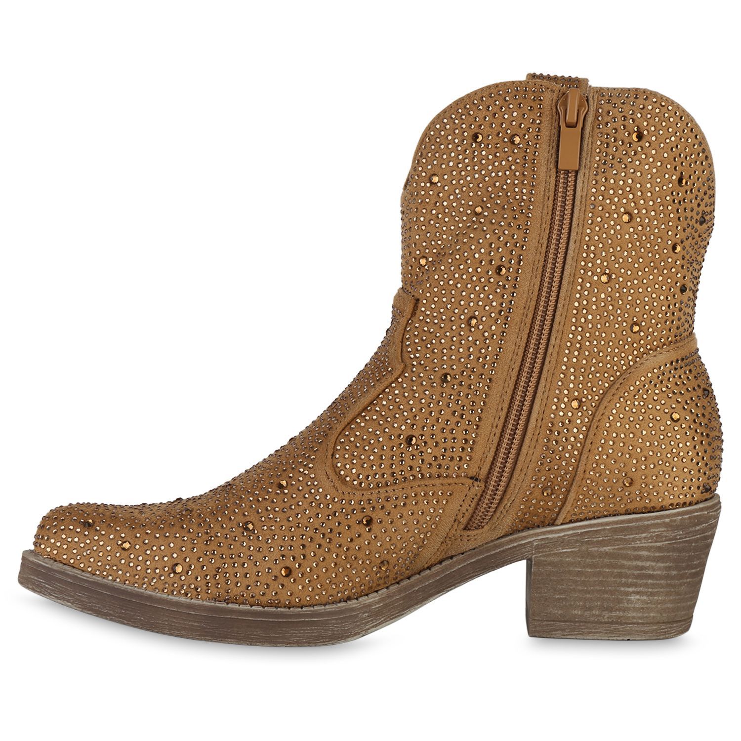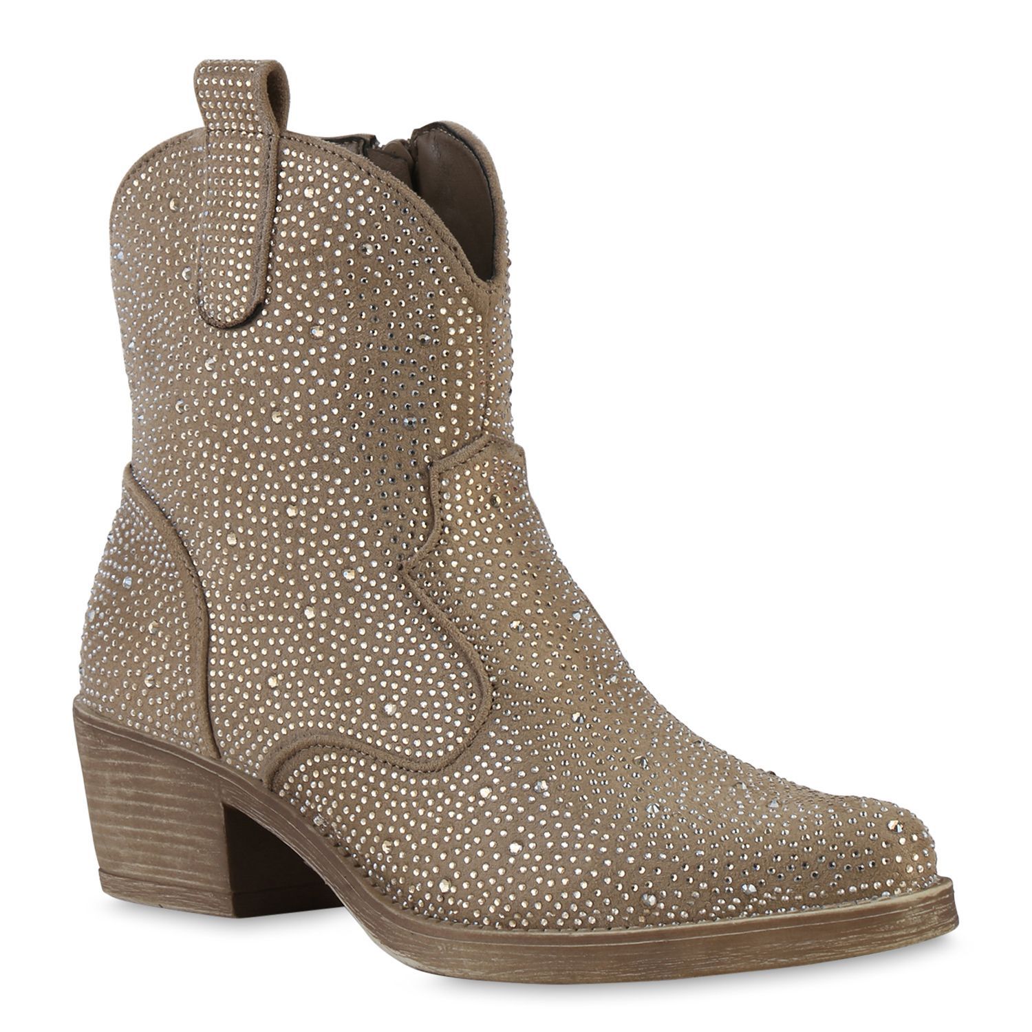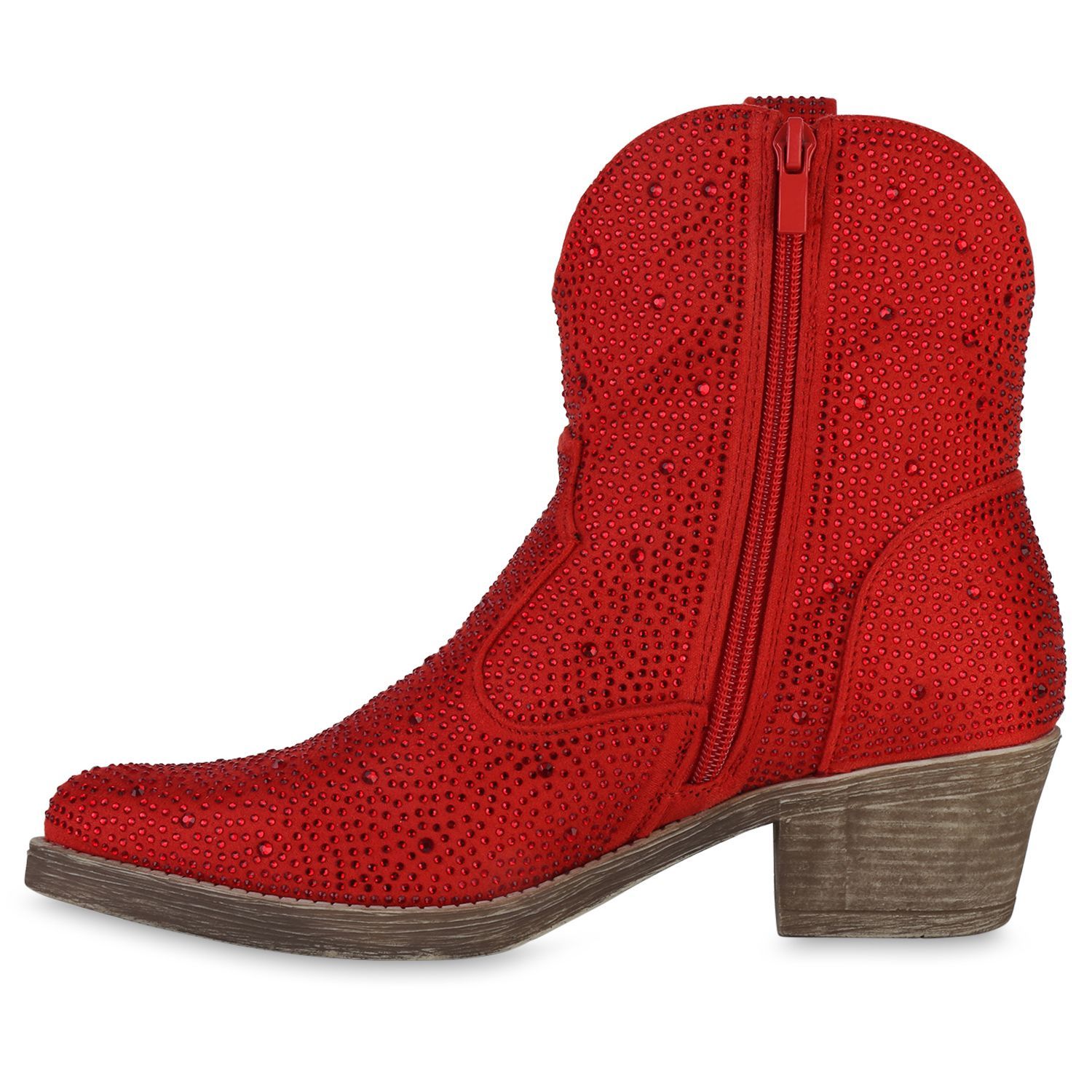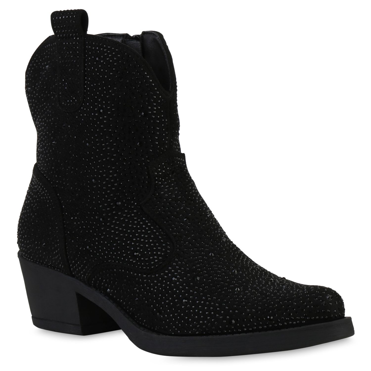 VAN HILL Damen Cowboy Boots Stiefeletten Spitze Strass Western Schuhe 840903
