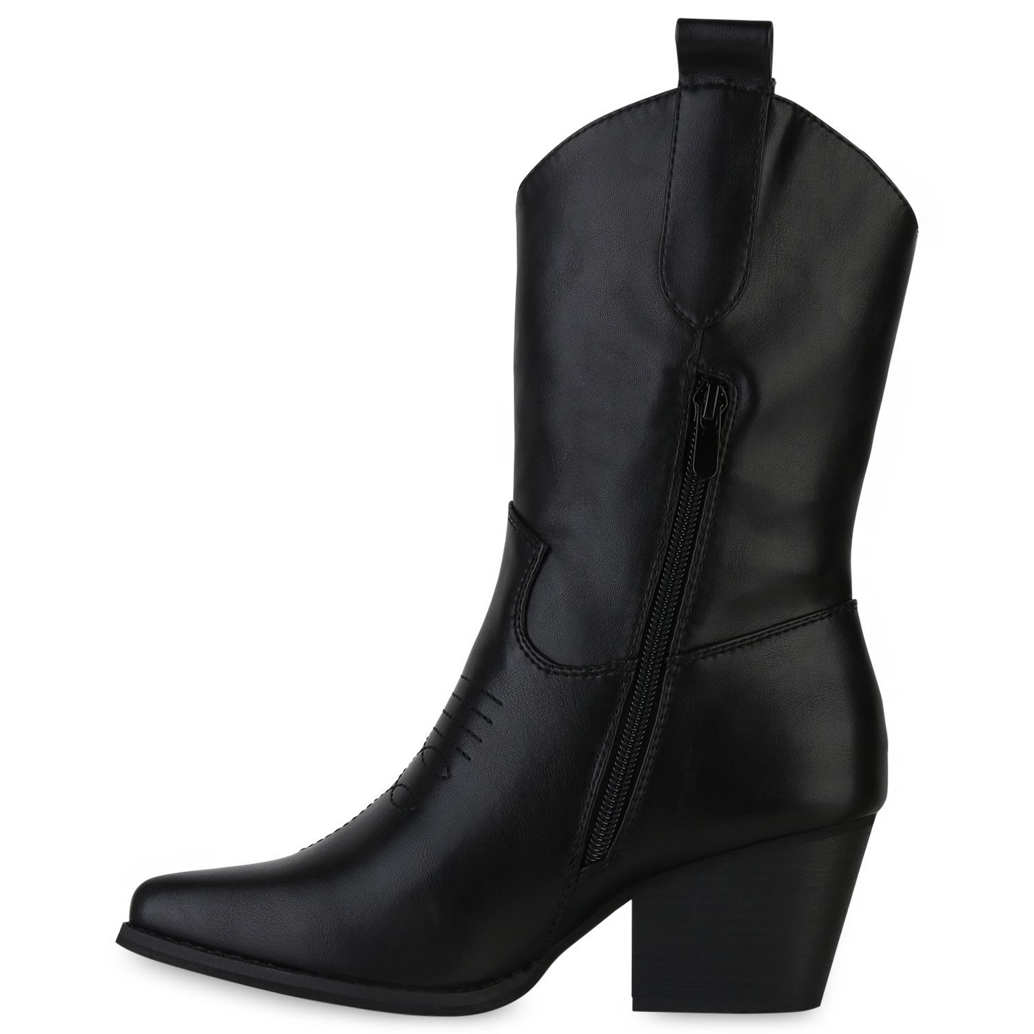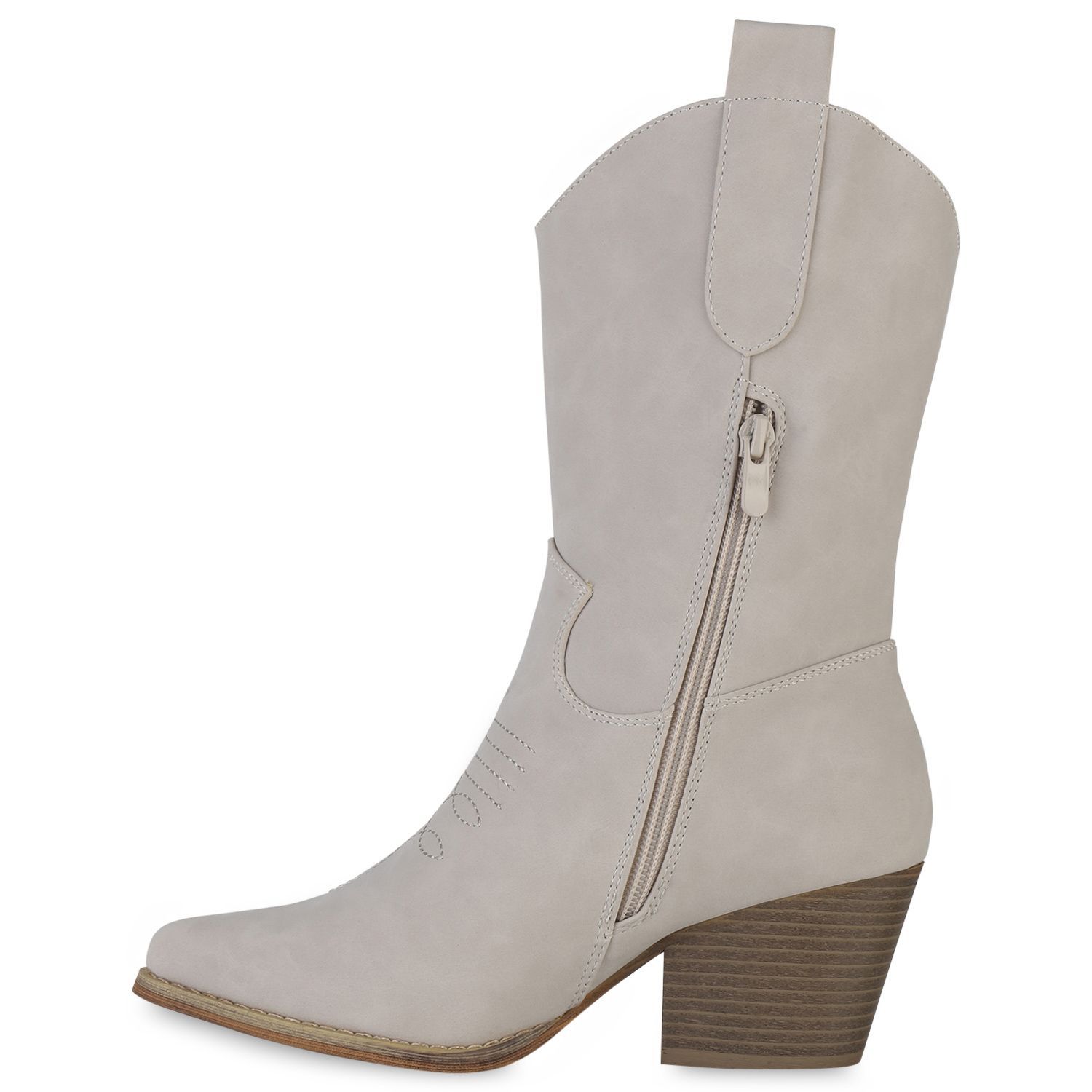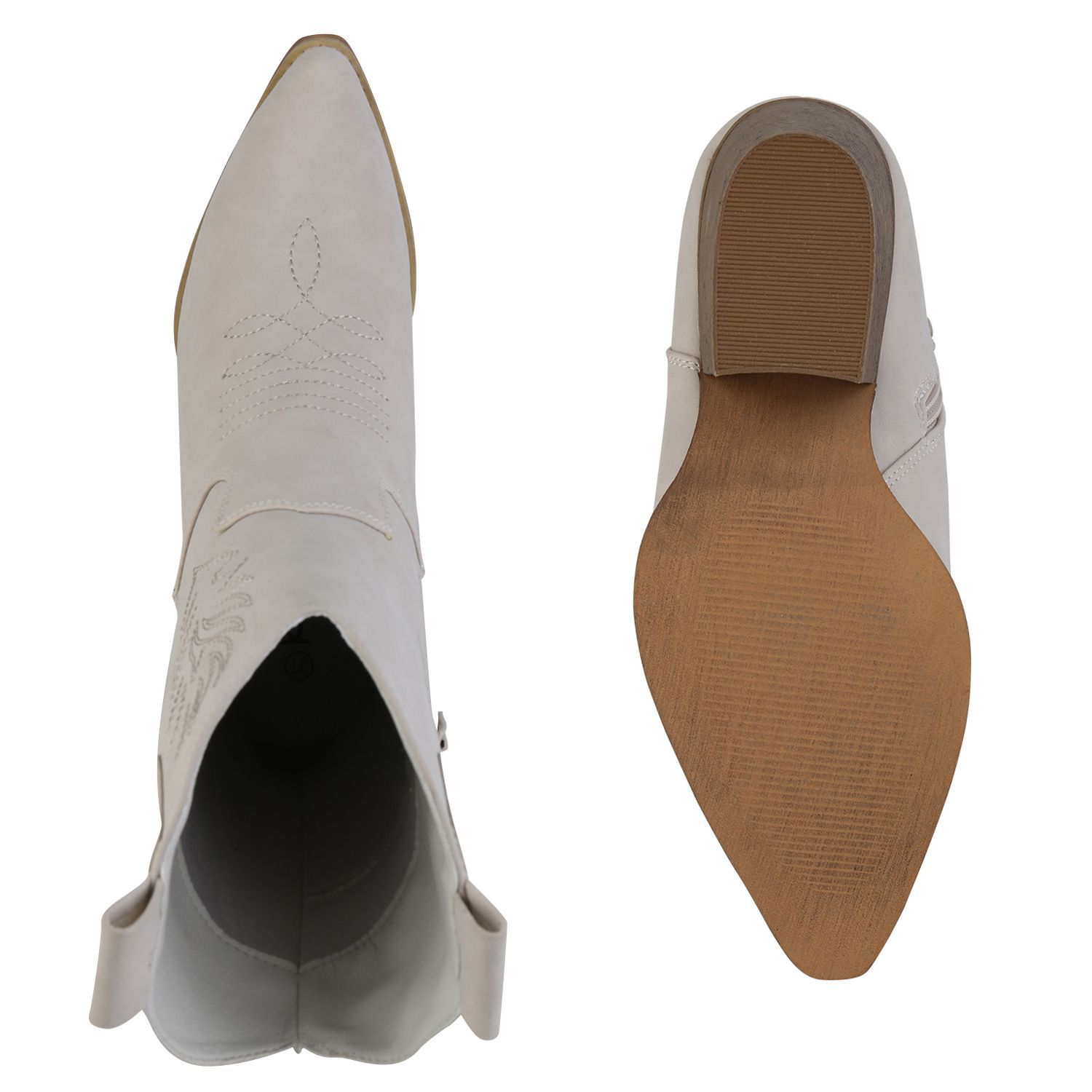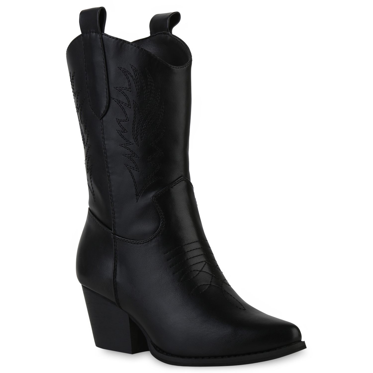 VAN HILL Damen Cowboy Boots Stiefeletten Stickereien Holzoptikabsatz Schuhe 839873