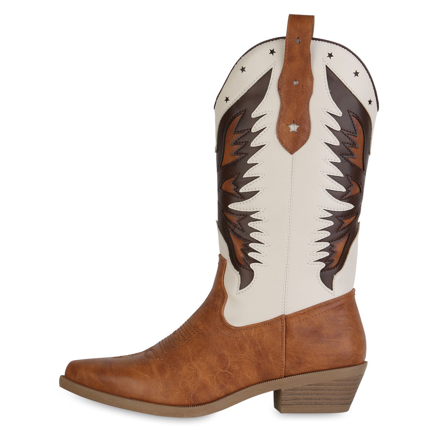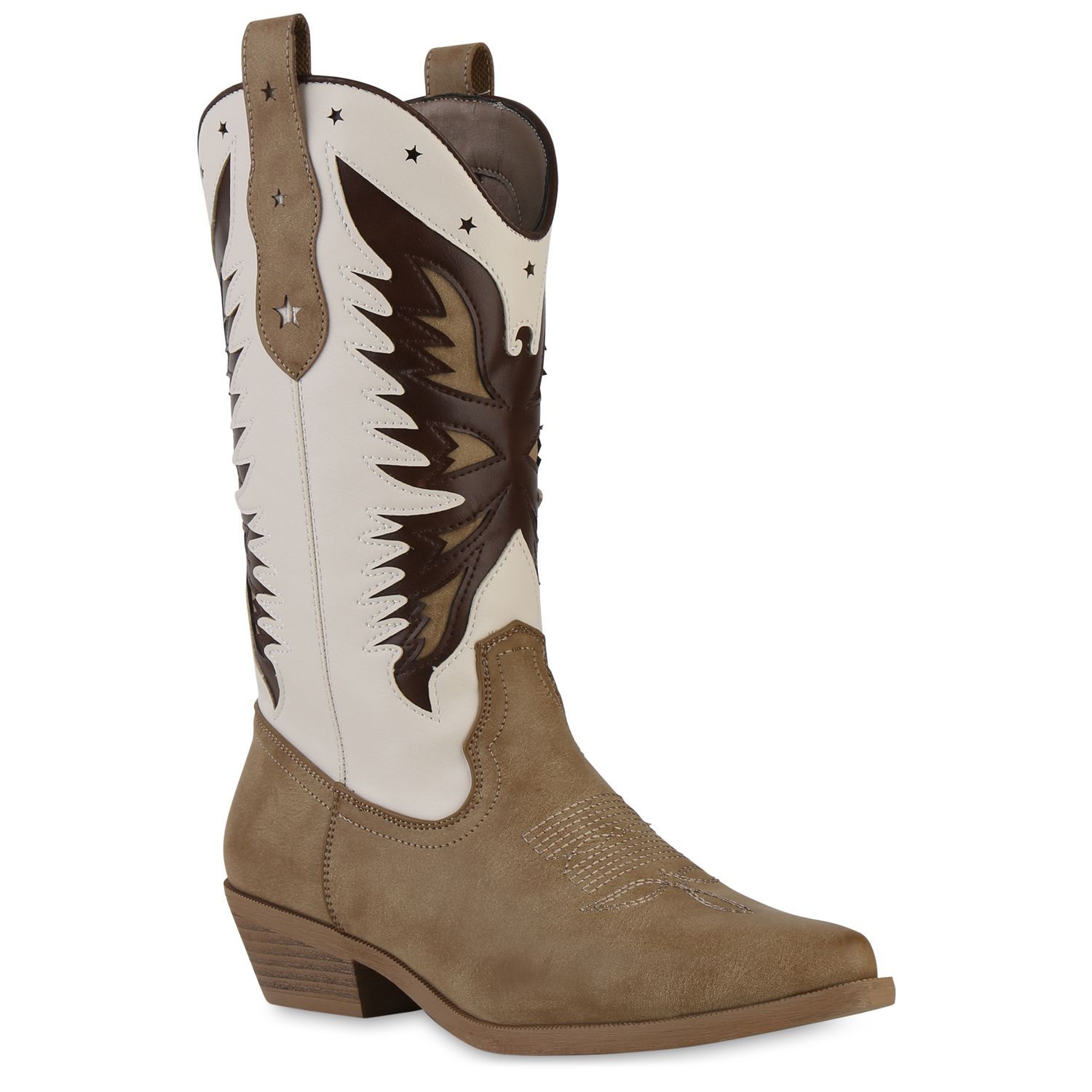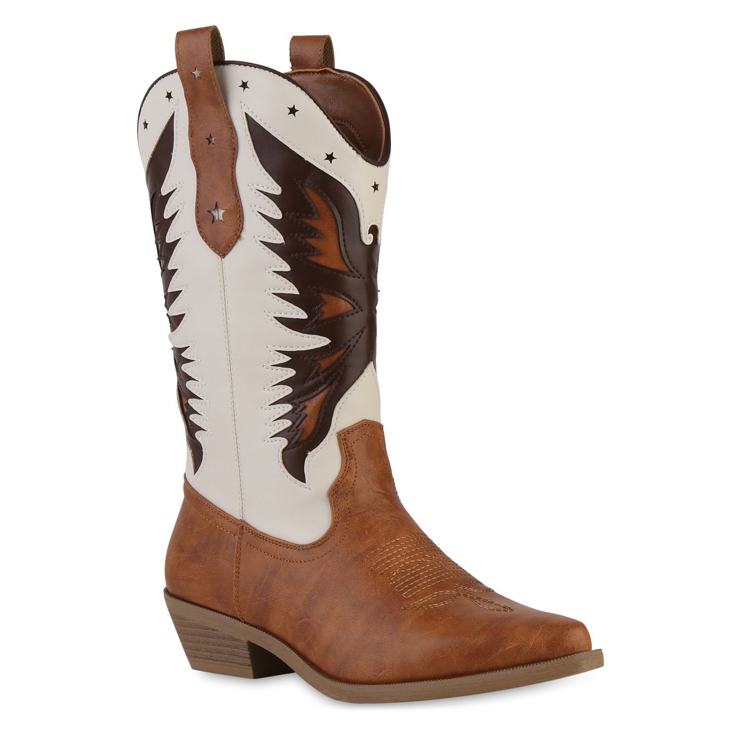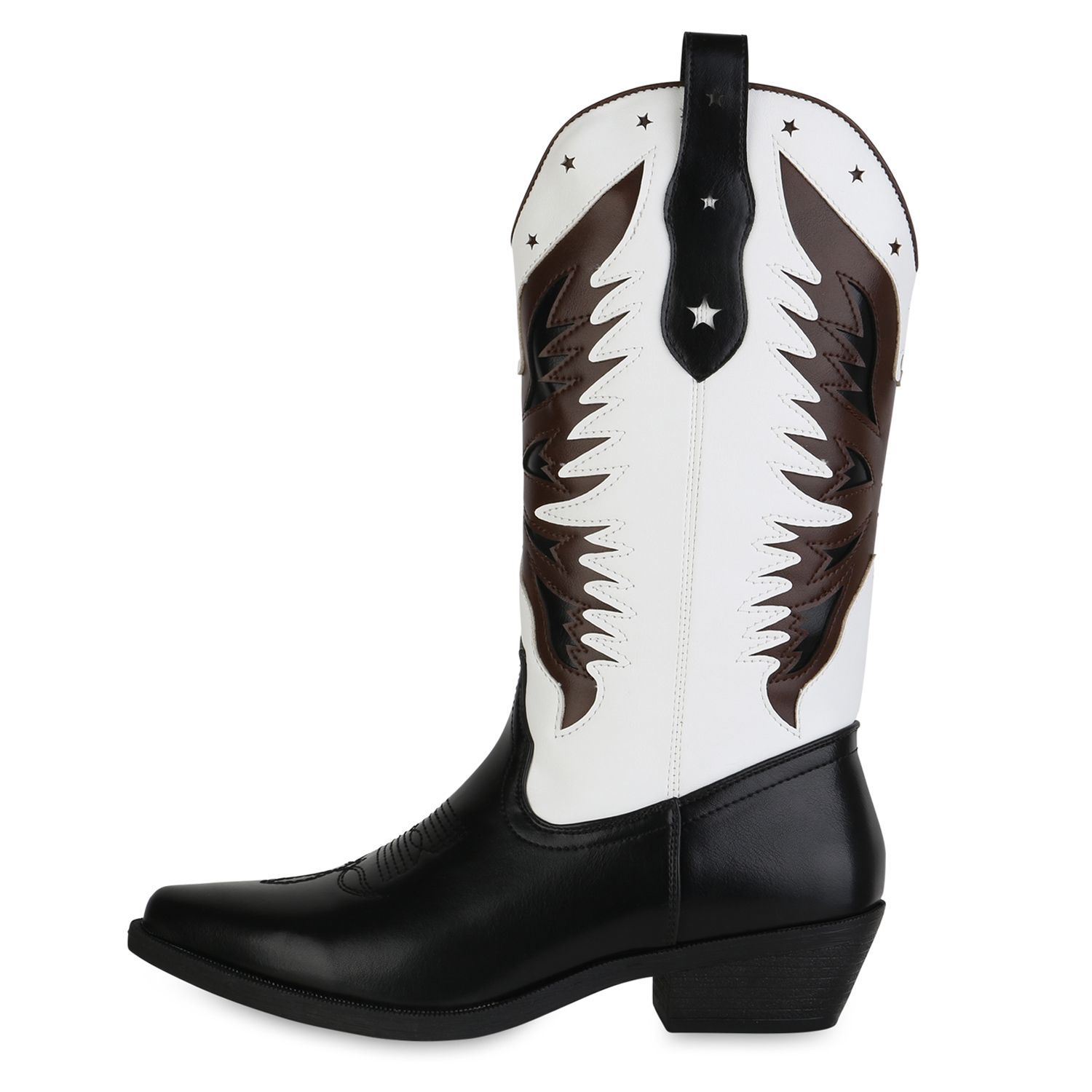 VAN HILL Damen Cowboystiefel Stiefel Spitze Holzoptikabsatz Western Schuhe 841113