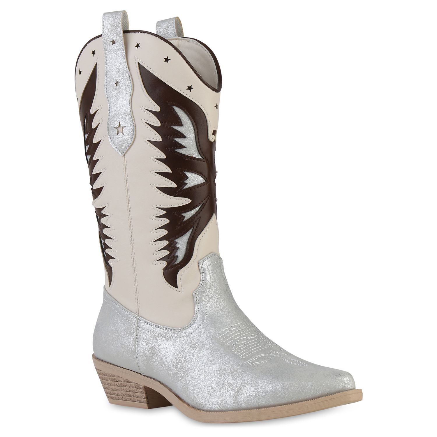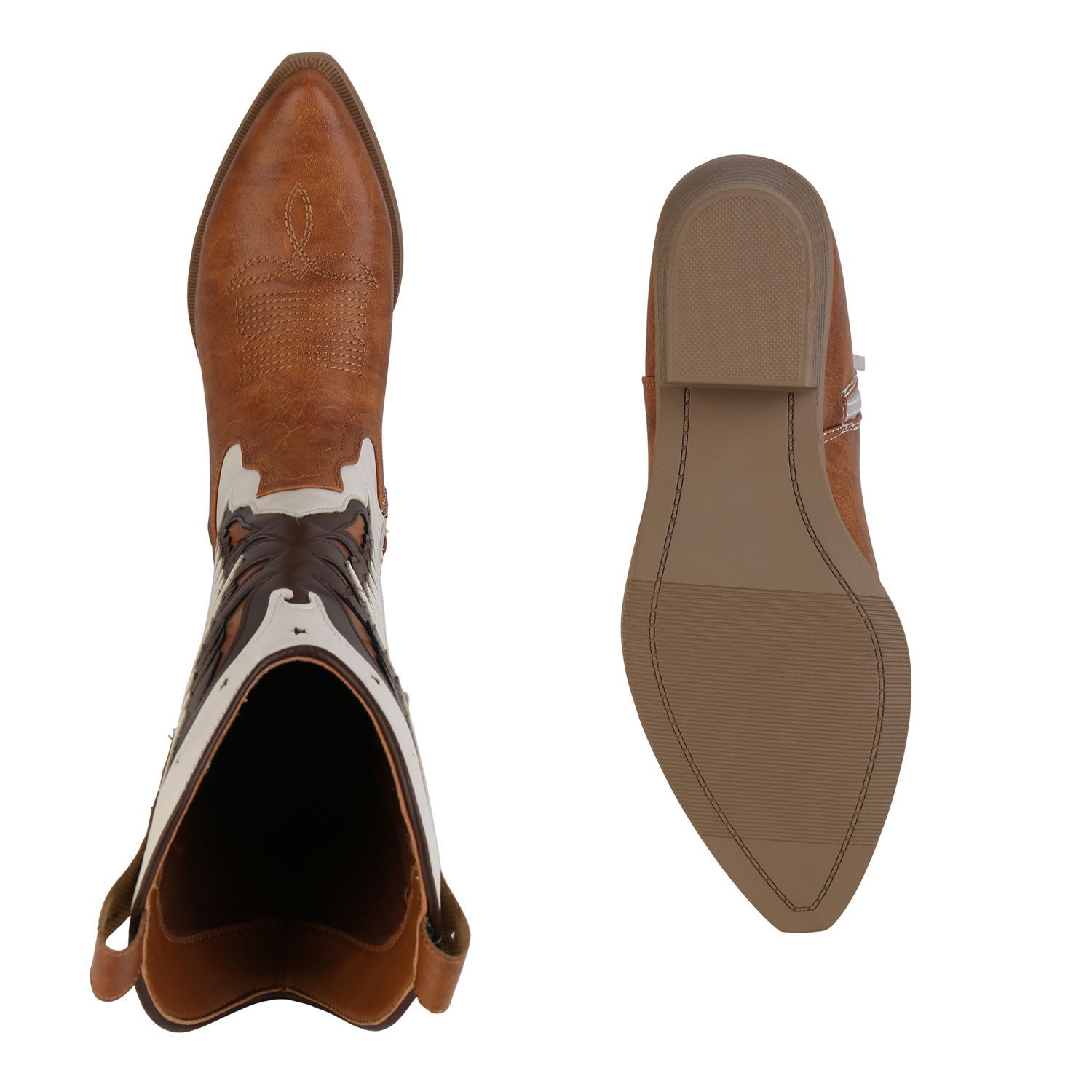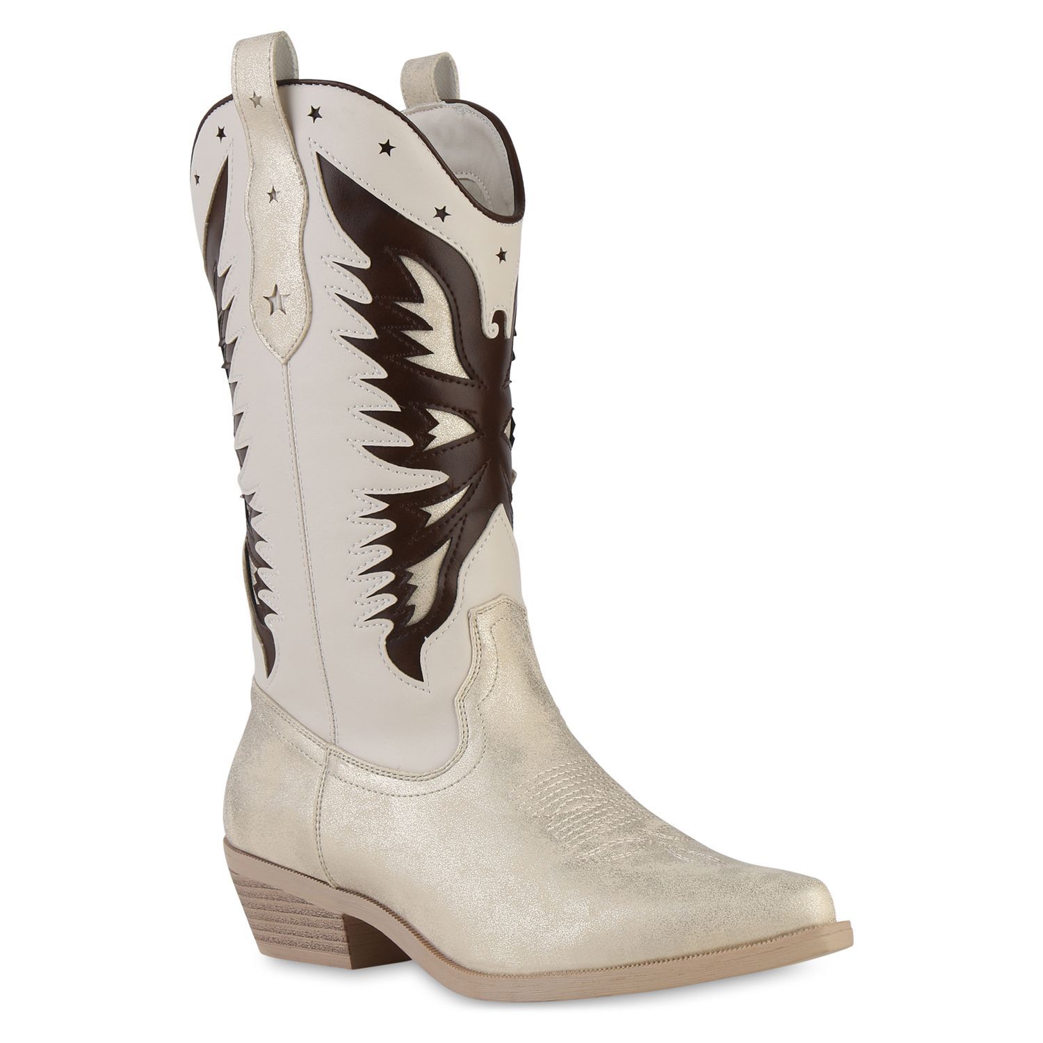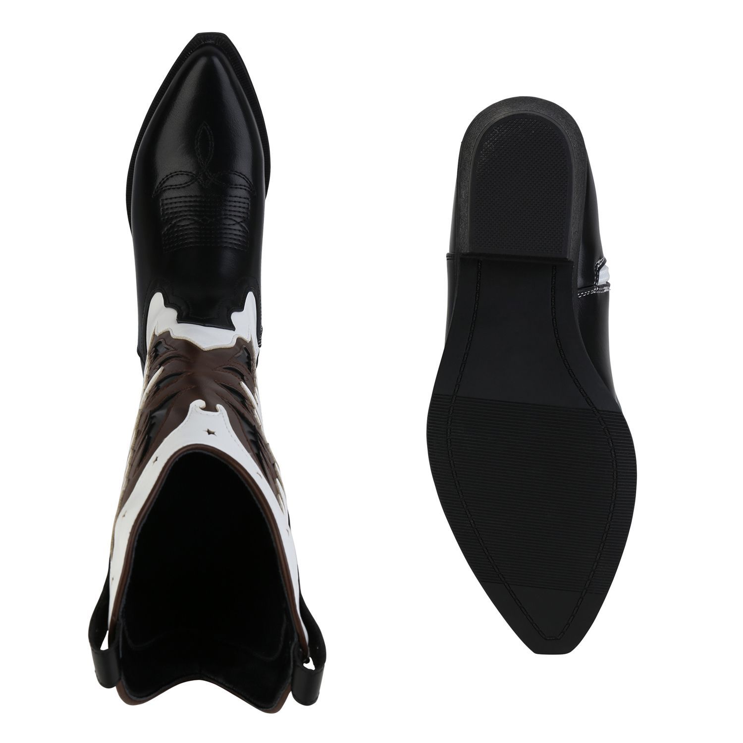 VAN HILL Damen Cowboystiefel Stiefel Spitze Holzoptikabsatz Western Schuhe 841113