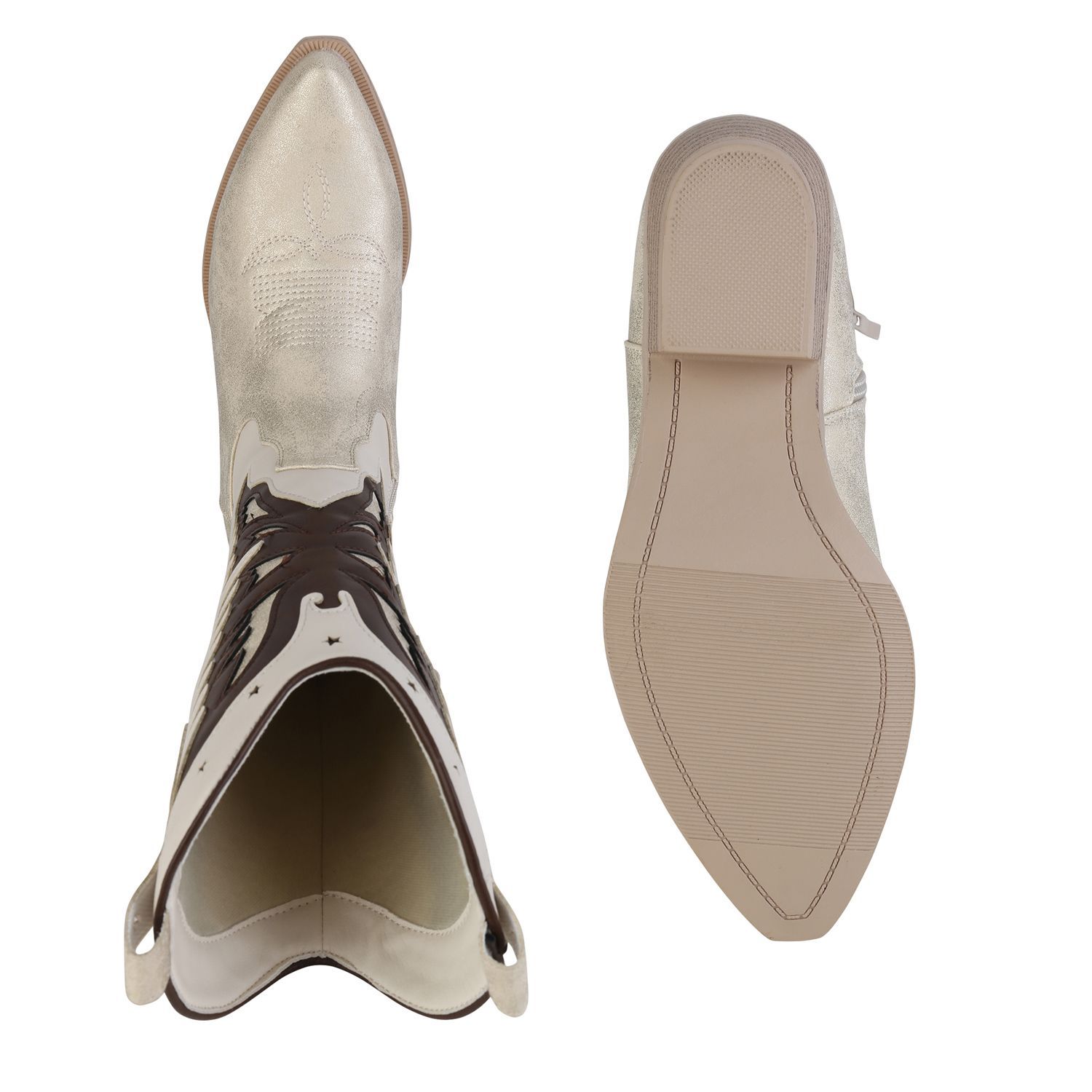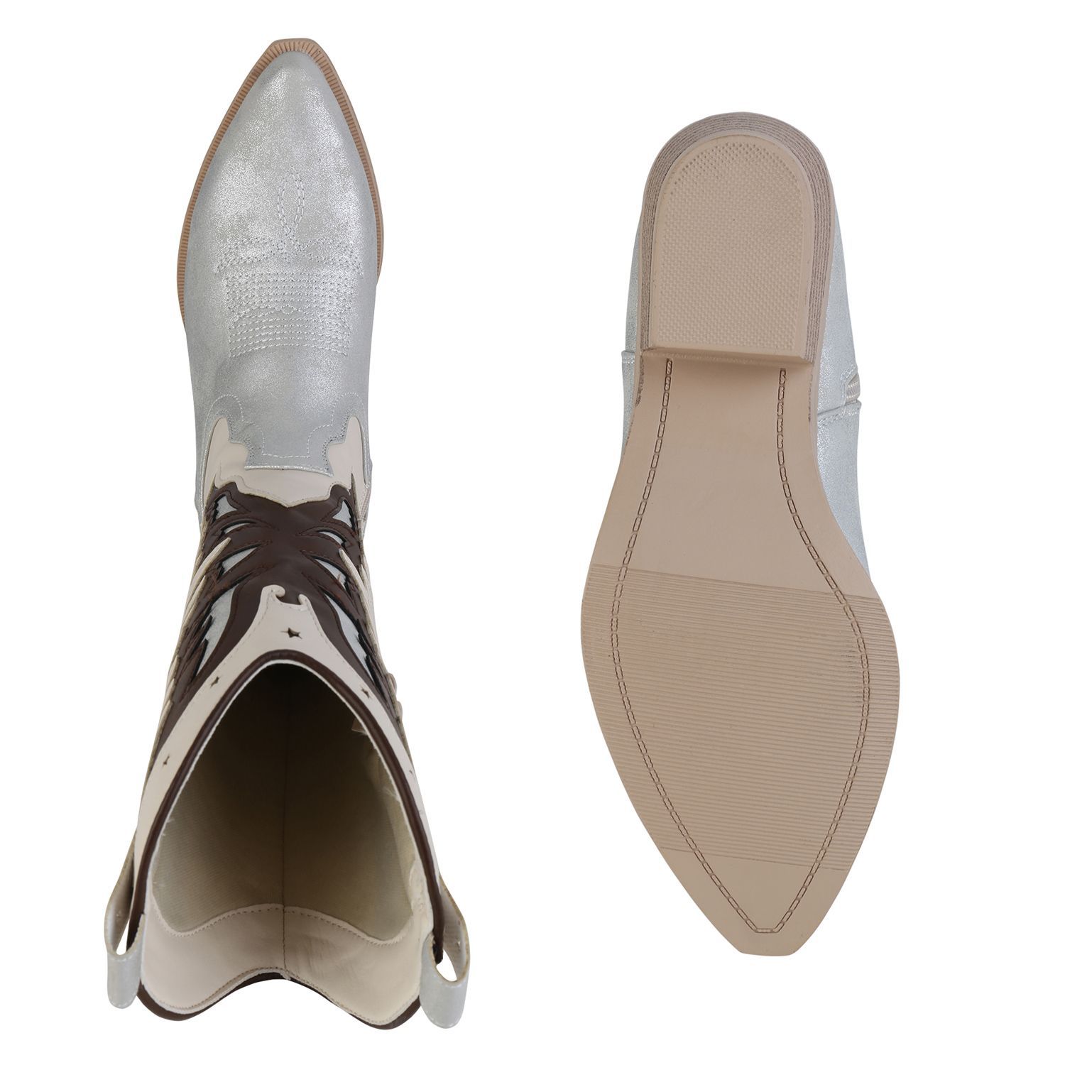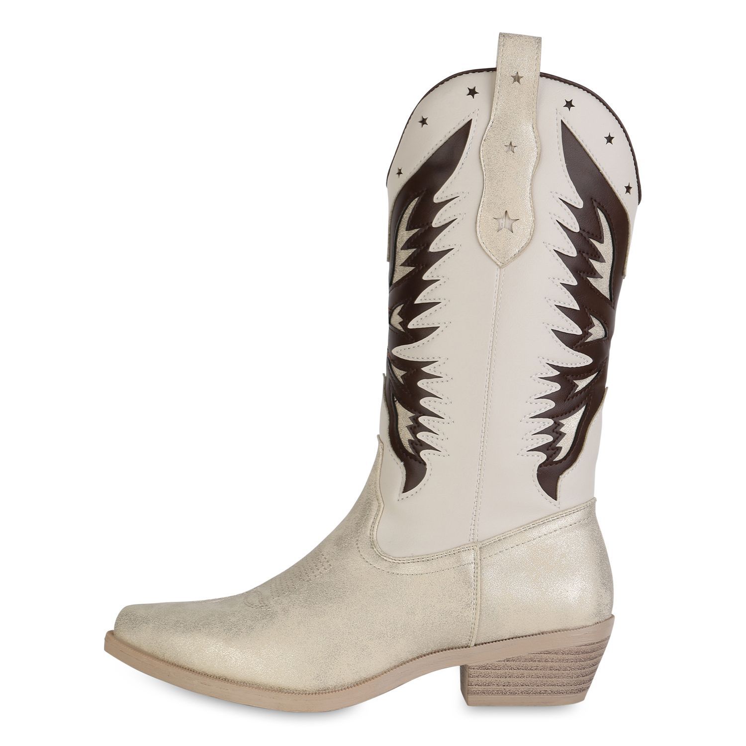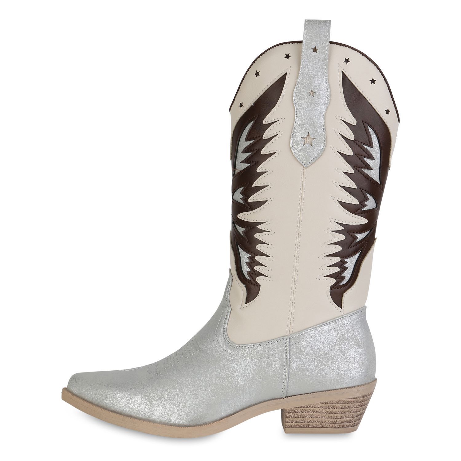 VAN HILL Damen Cowboystiefel Stiefel Spitze Holzoptikabsatz Western Schuhe 841113