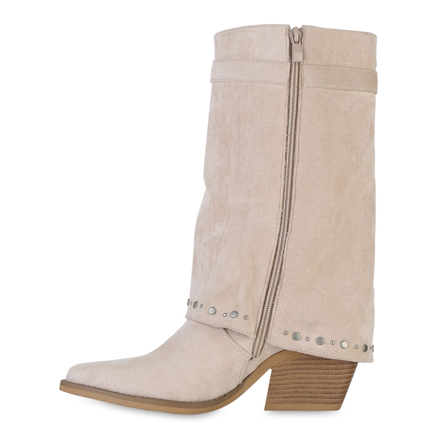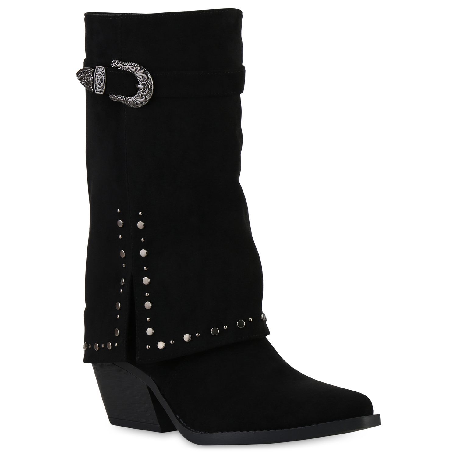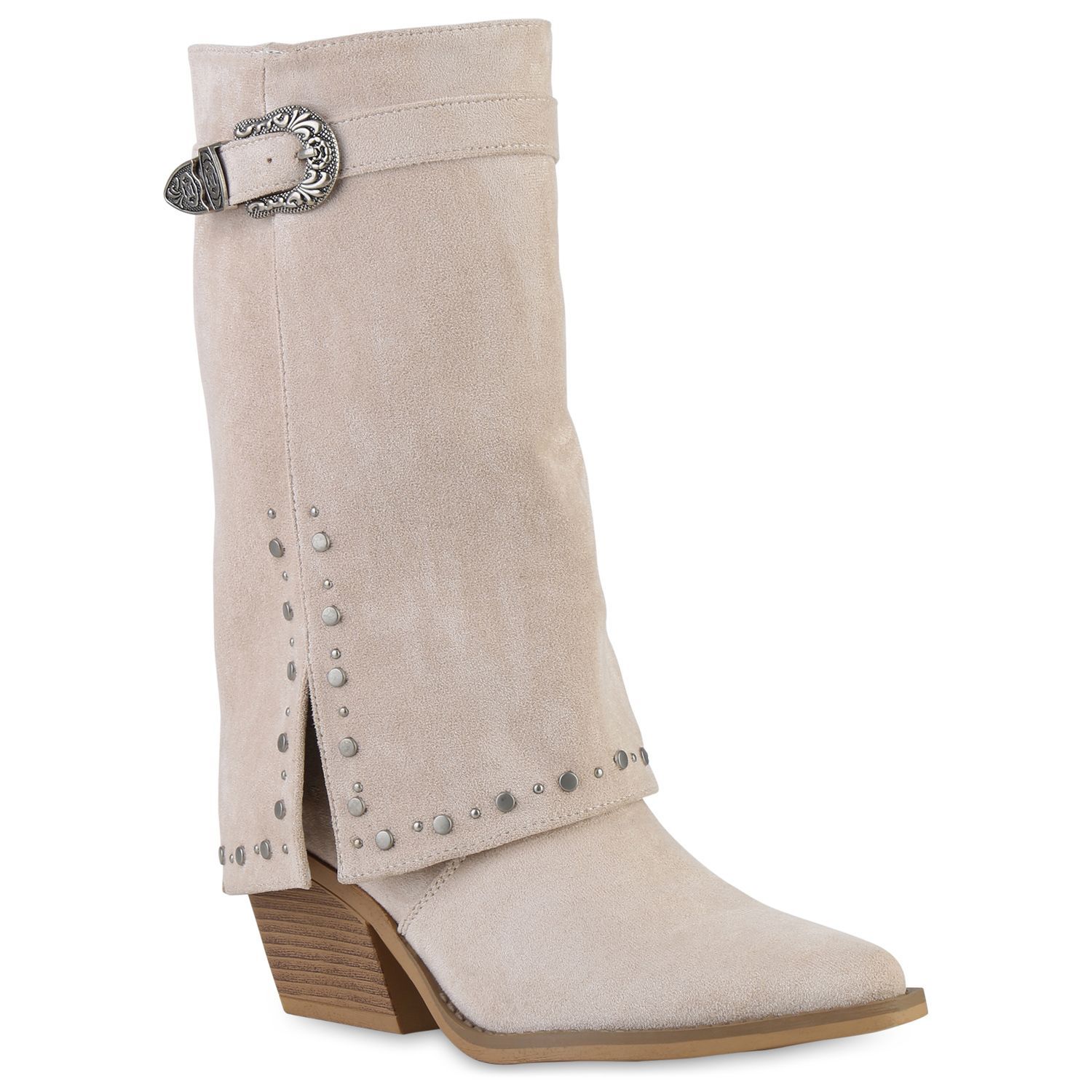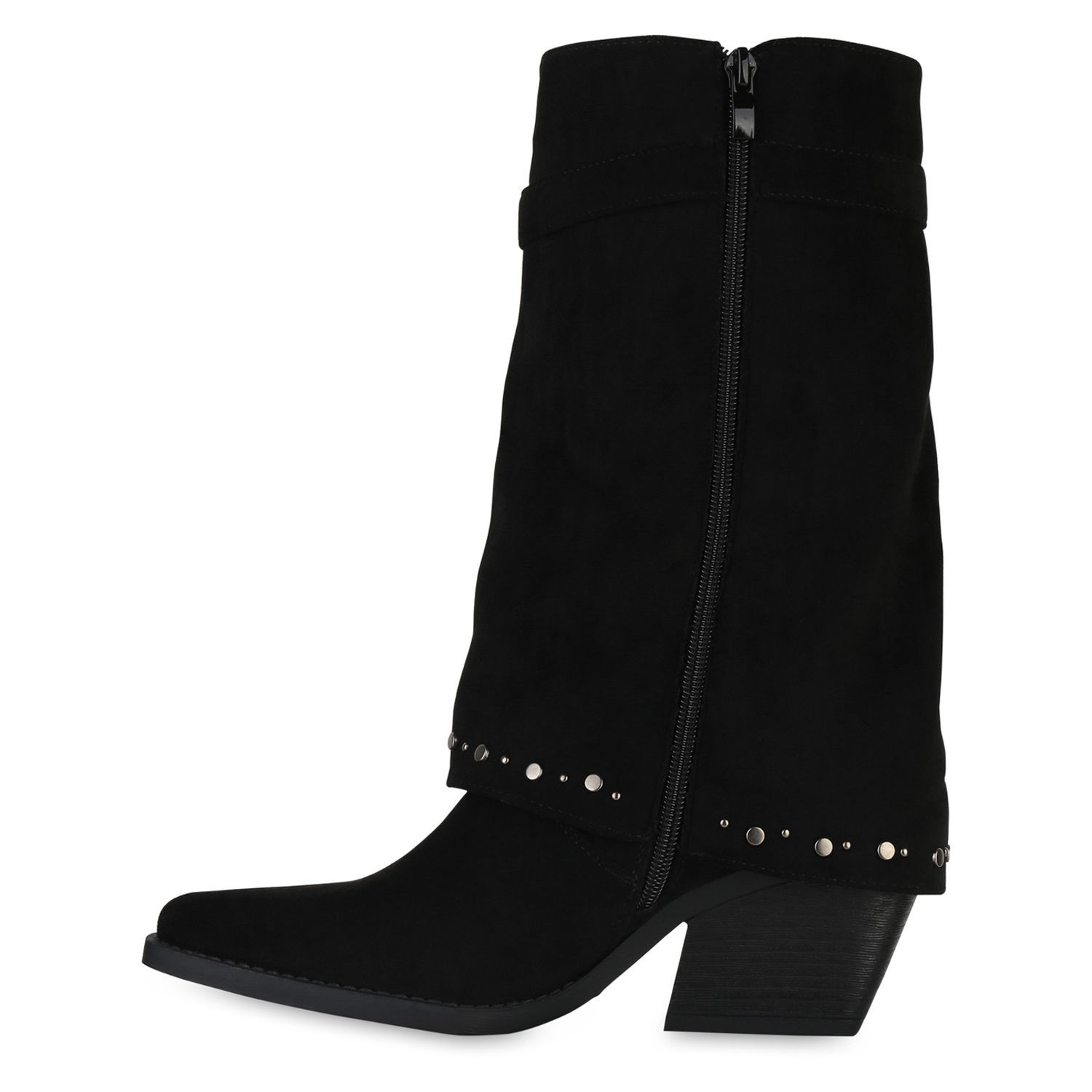 VAN HILL Damen Cowboystiefel Stiefel Spitze Nieten Holzoptikabsatz Schuhe 841523