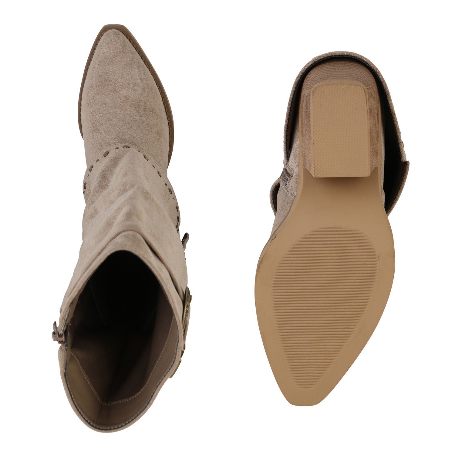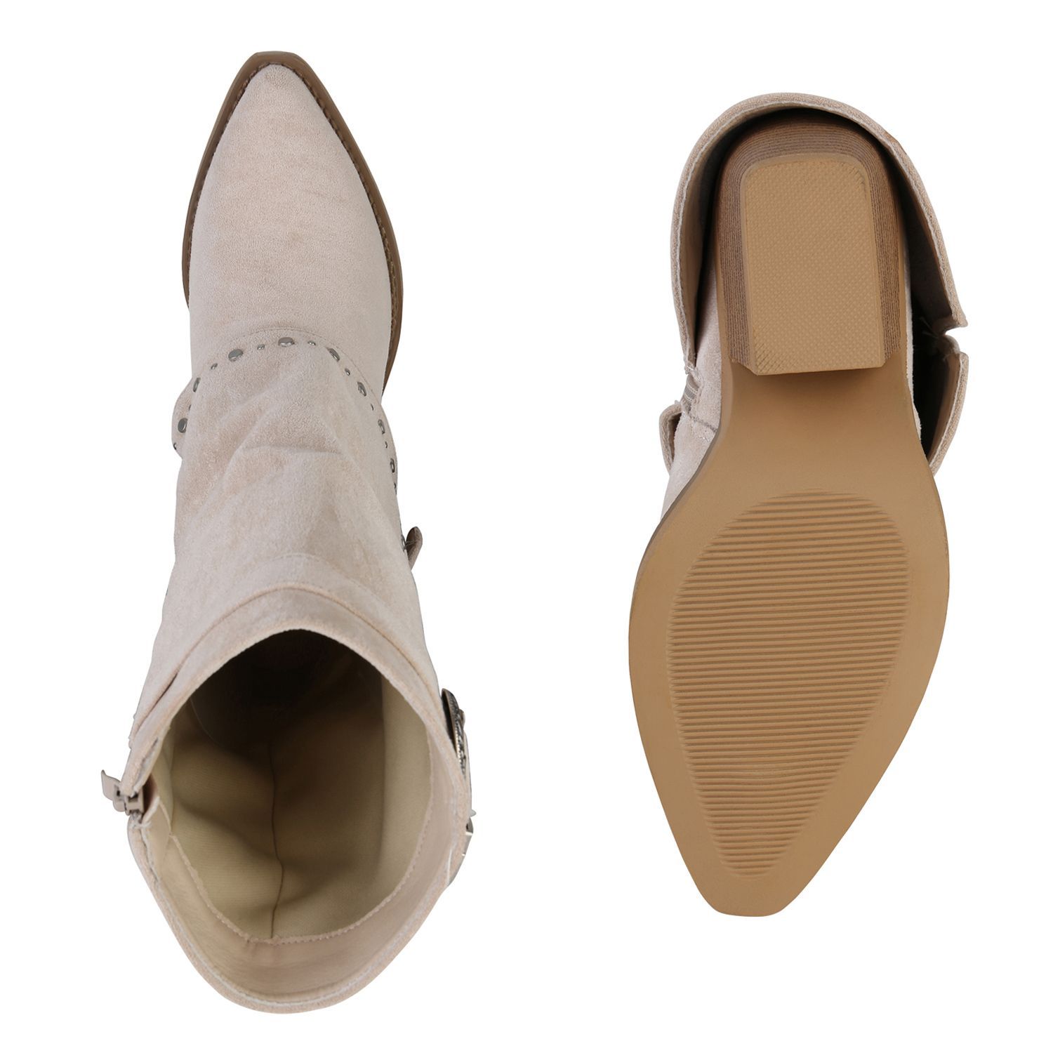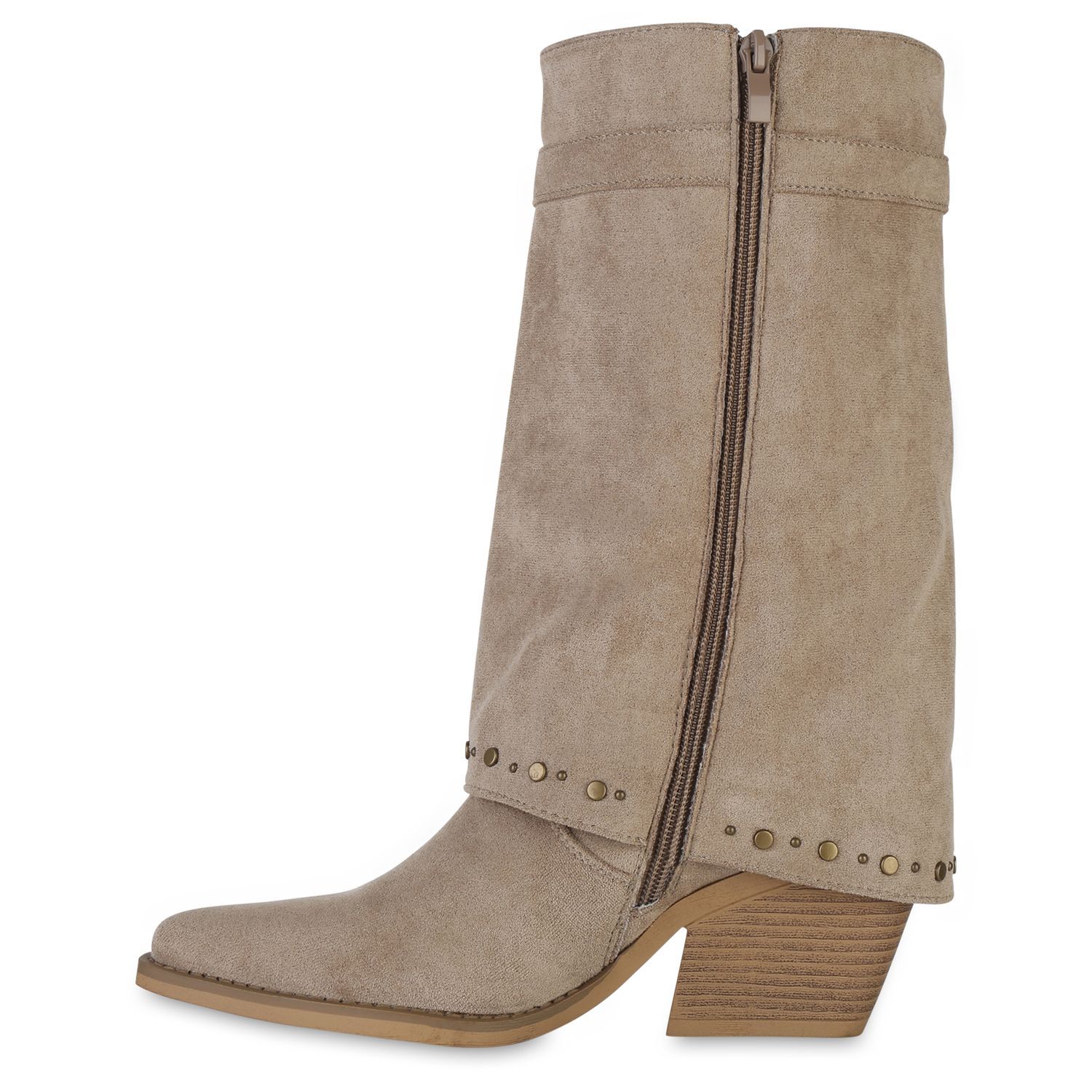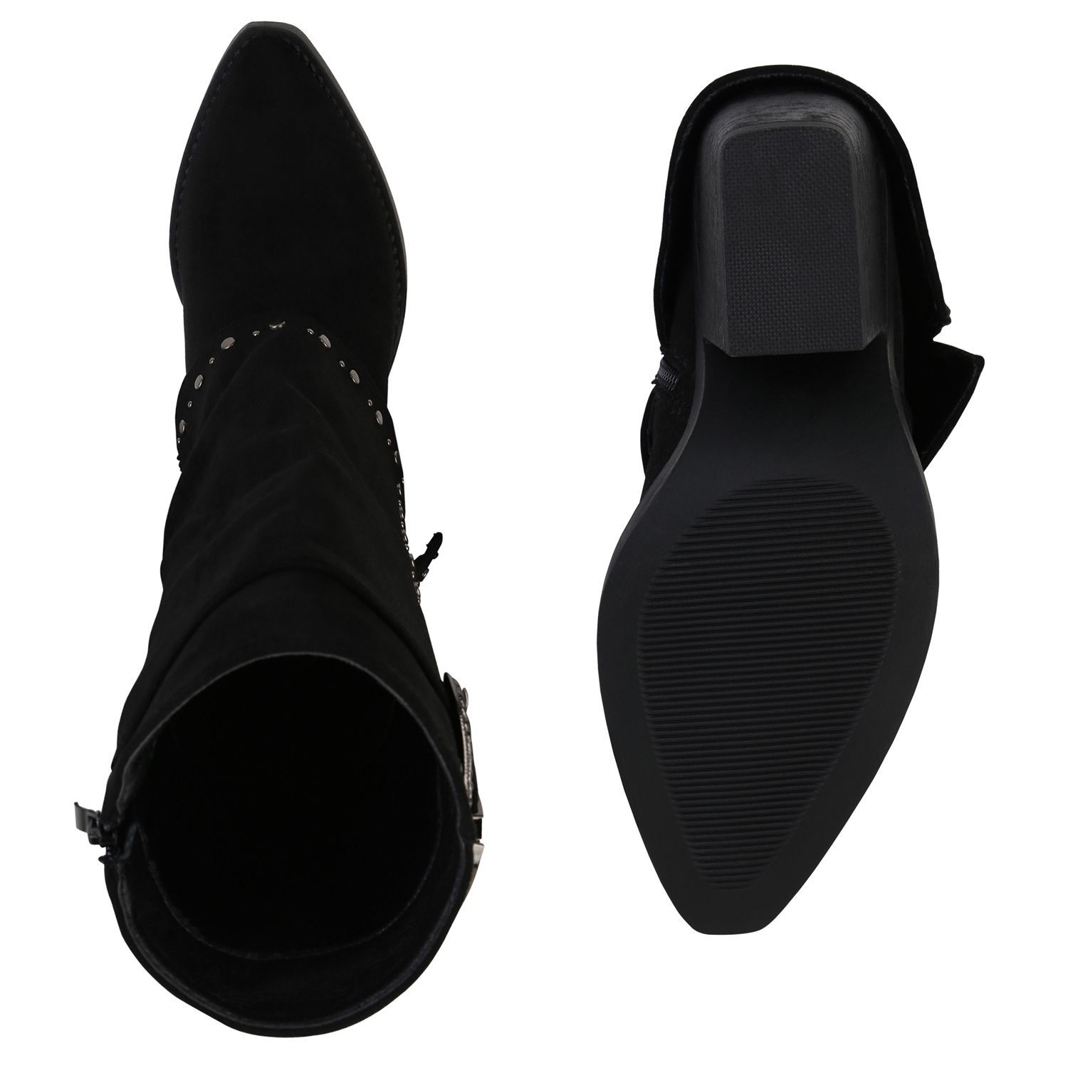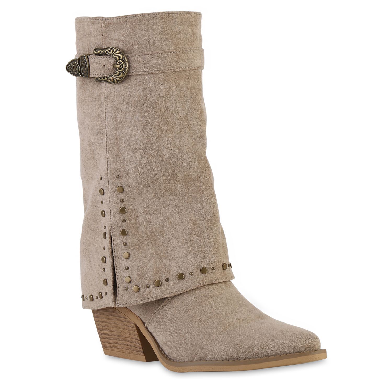 VAN HILL Damen Cowboystiefel Stiefel Spitze Nieten Holzoptikabsatz Schuhe 841523