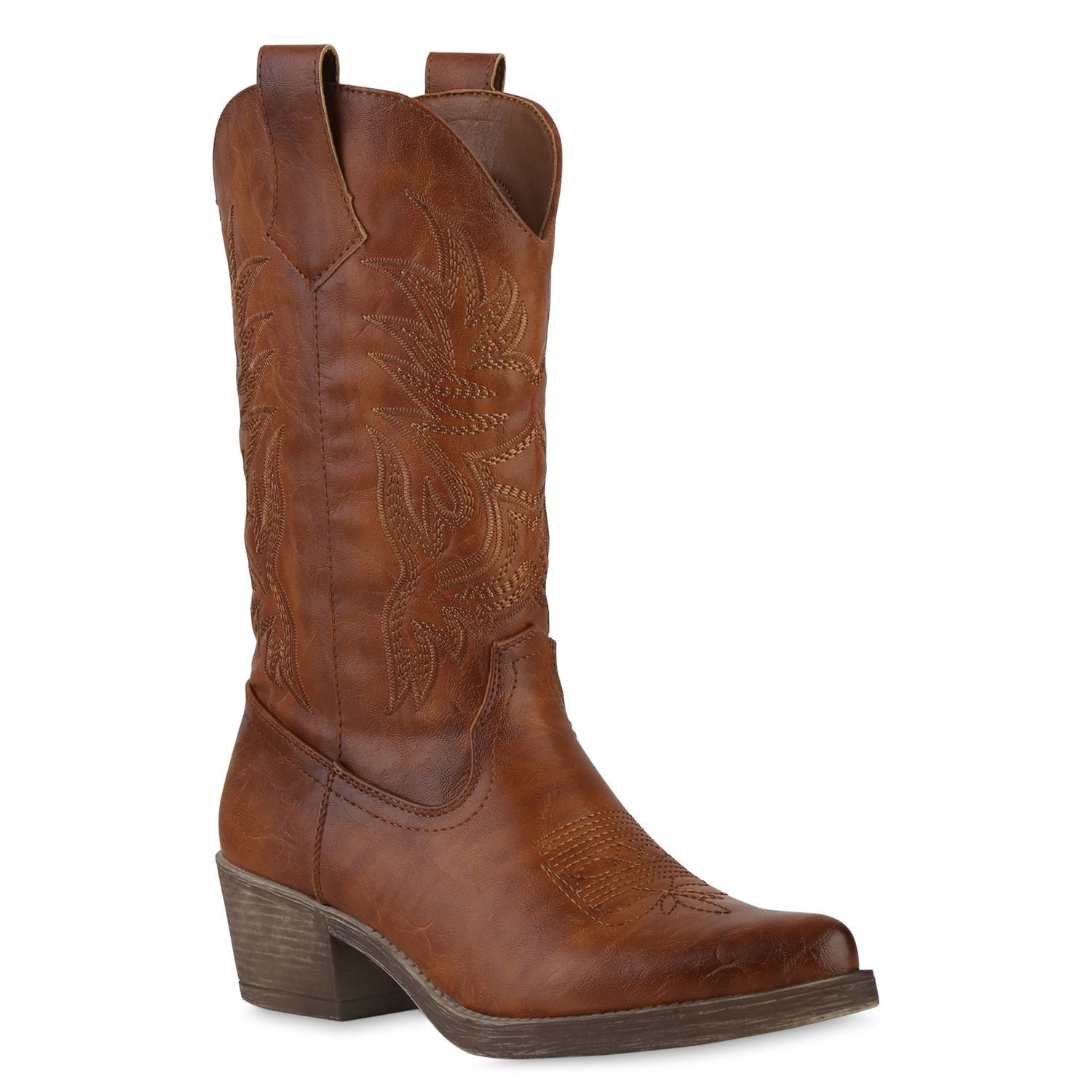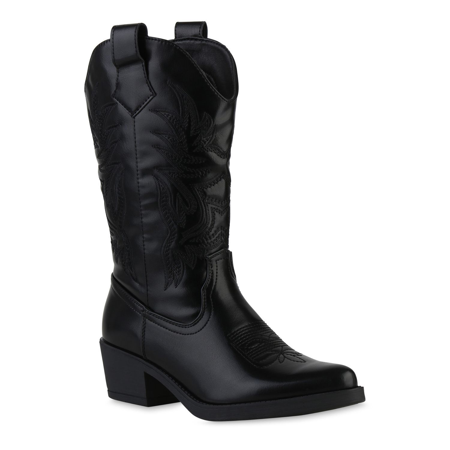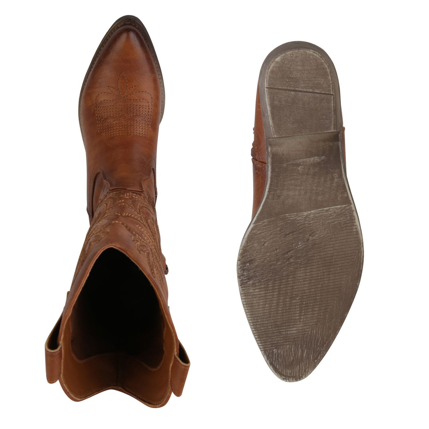 VAN HILL Damen Cowboystiefel Stiefel Spitze Stickereien Western Schuhe 840902