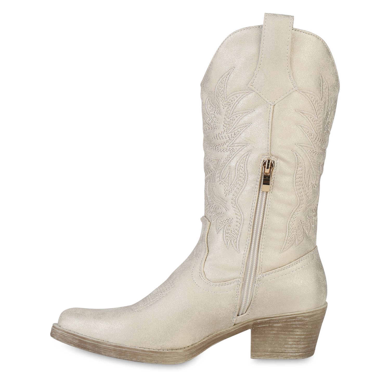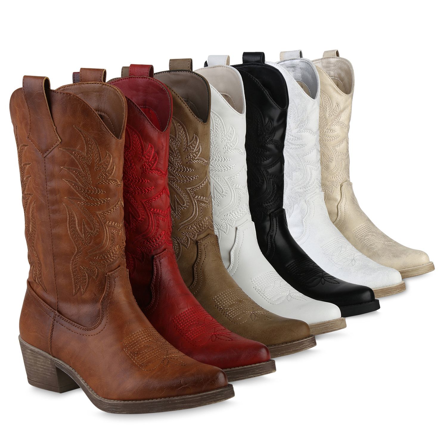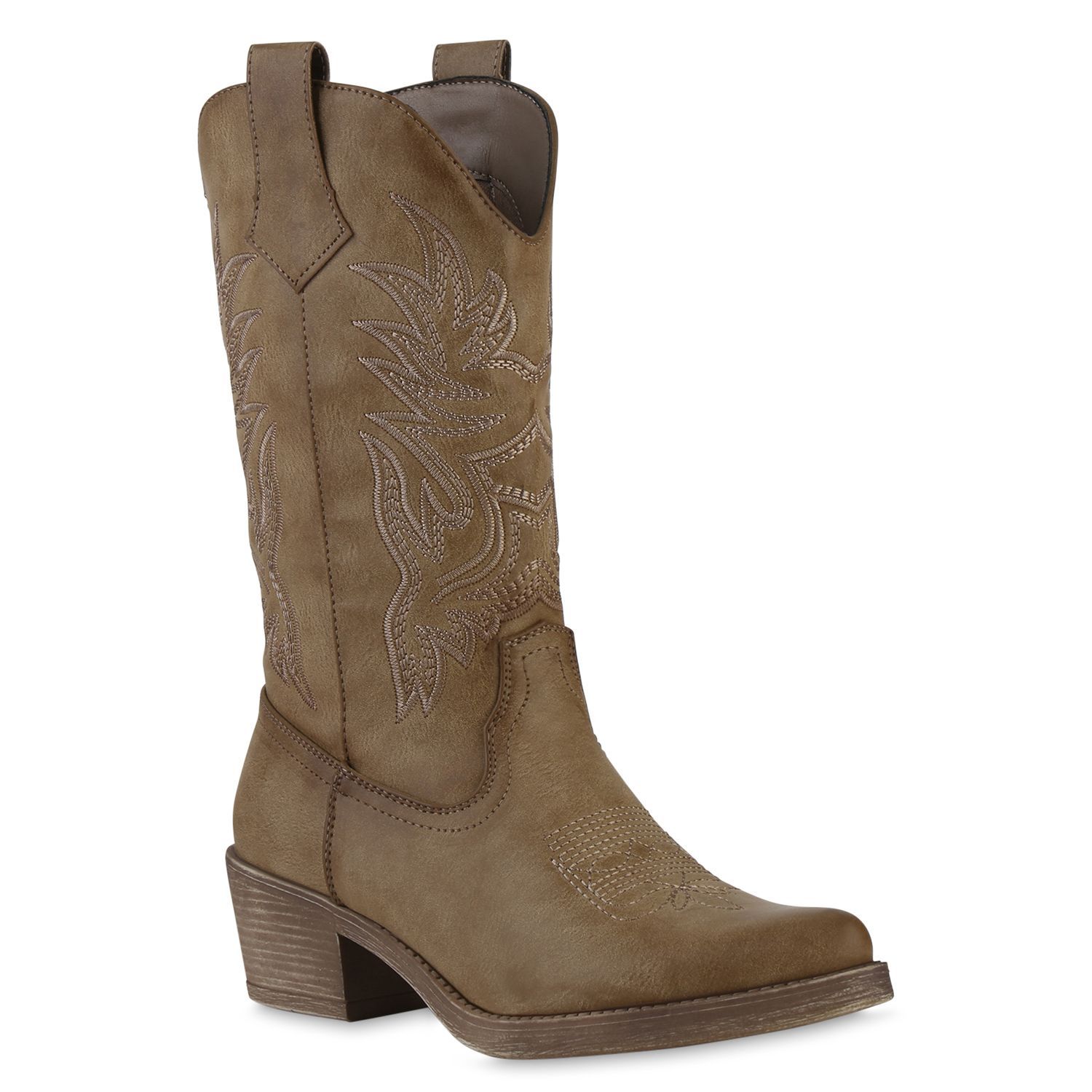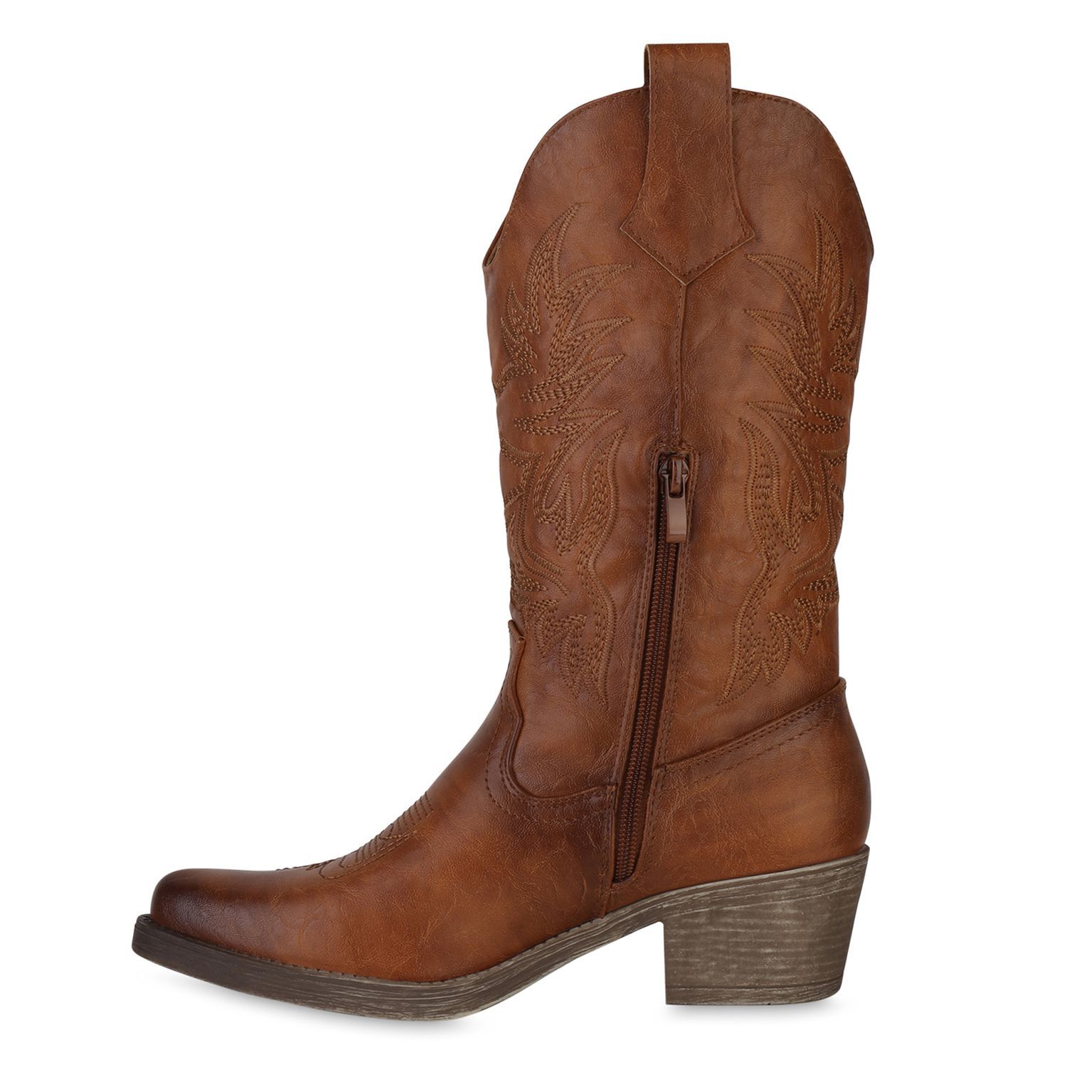 VAN HILL Damen Cowboystiefel Stiefel Spitze Stickereien Western Schuhe 840902