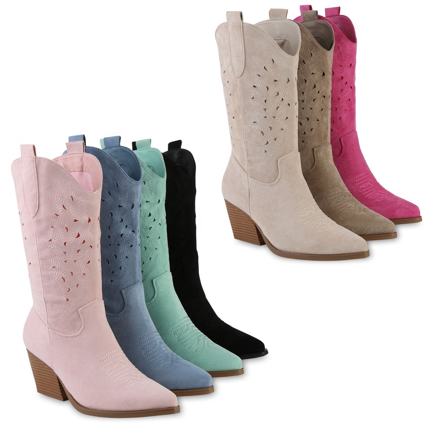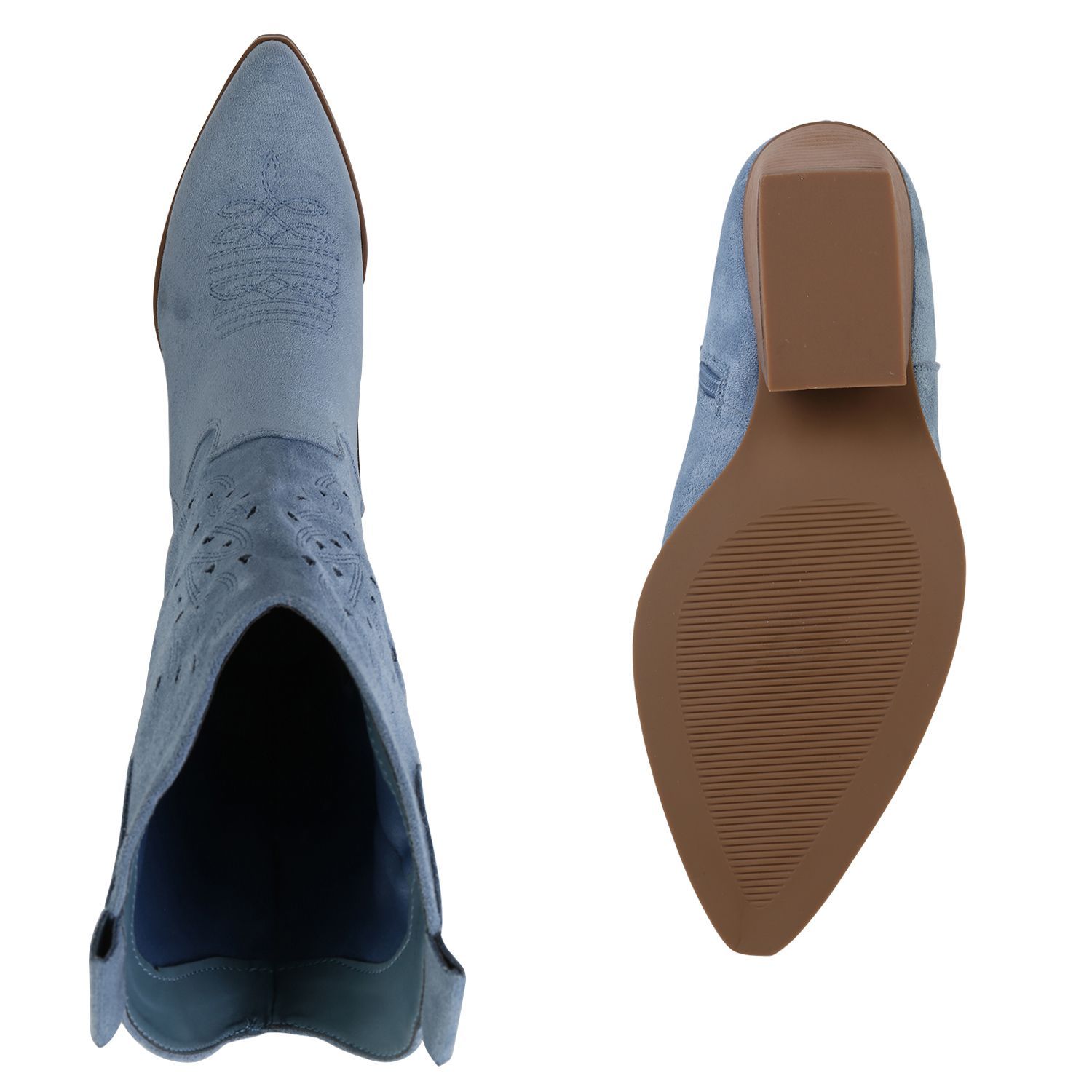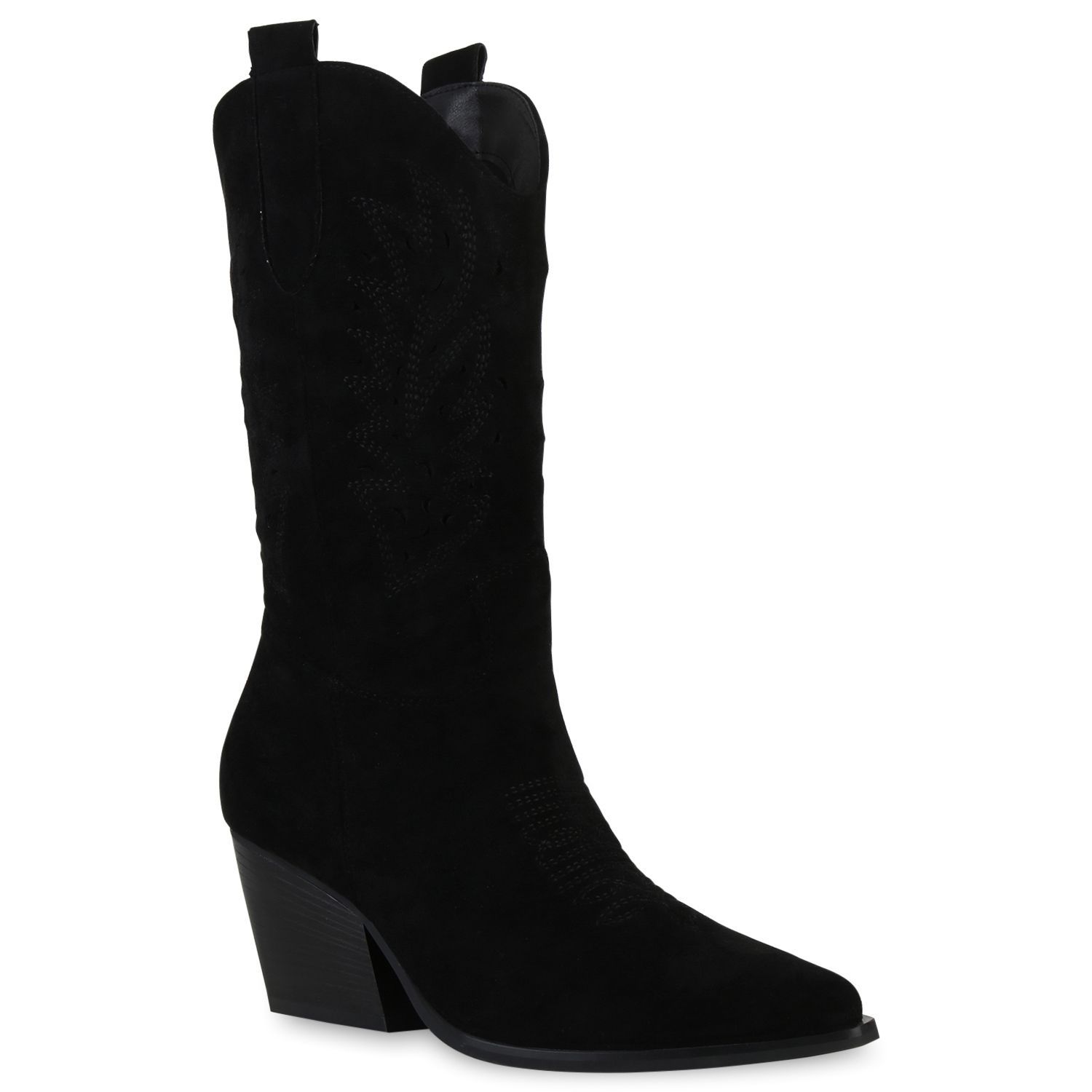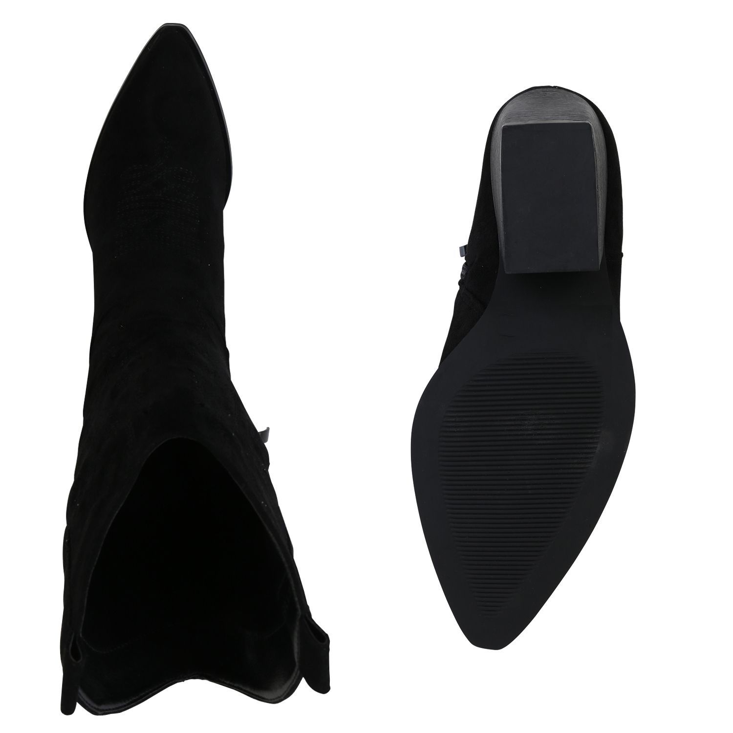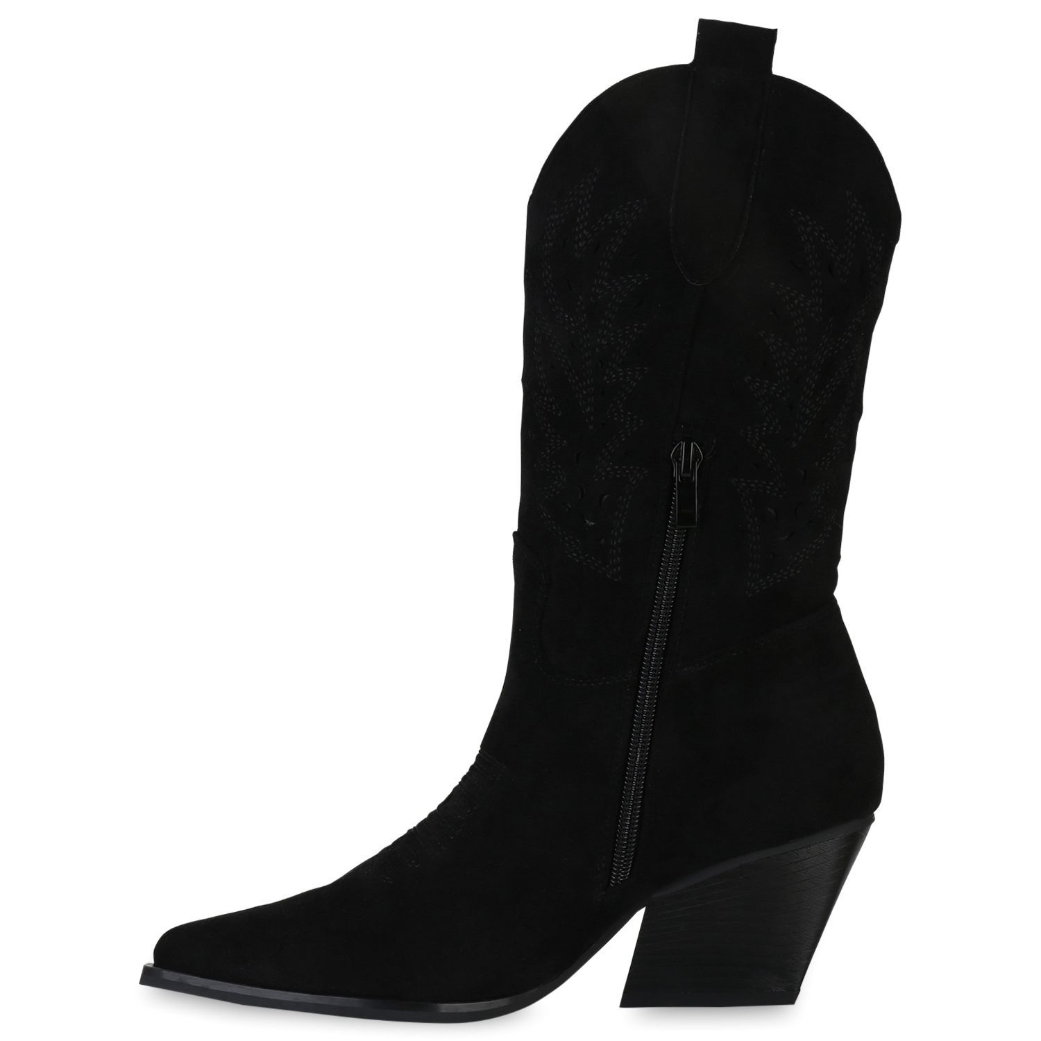 VAN HILL Damen Cowboystiefel Stiefel Stickereien Holzoptikabsatz Schuhe 840054