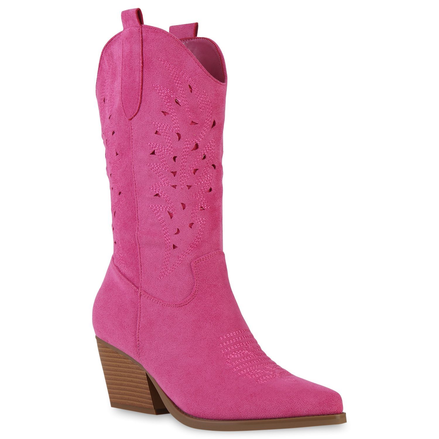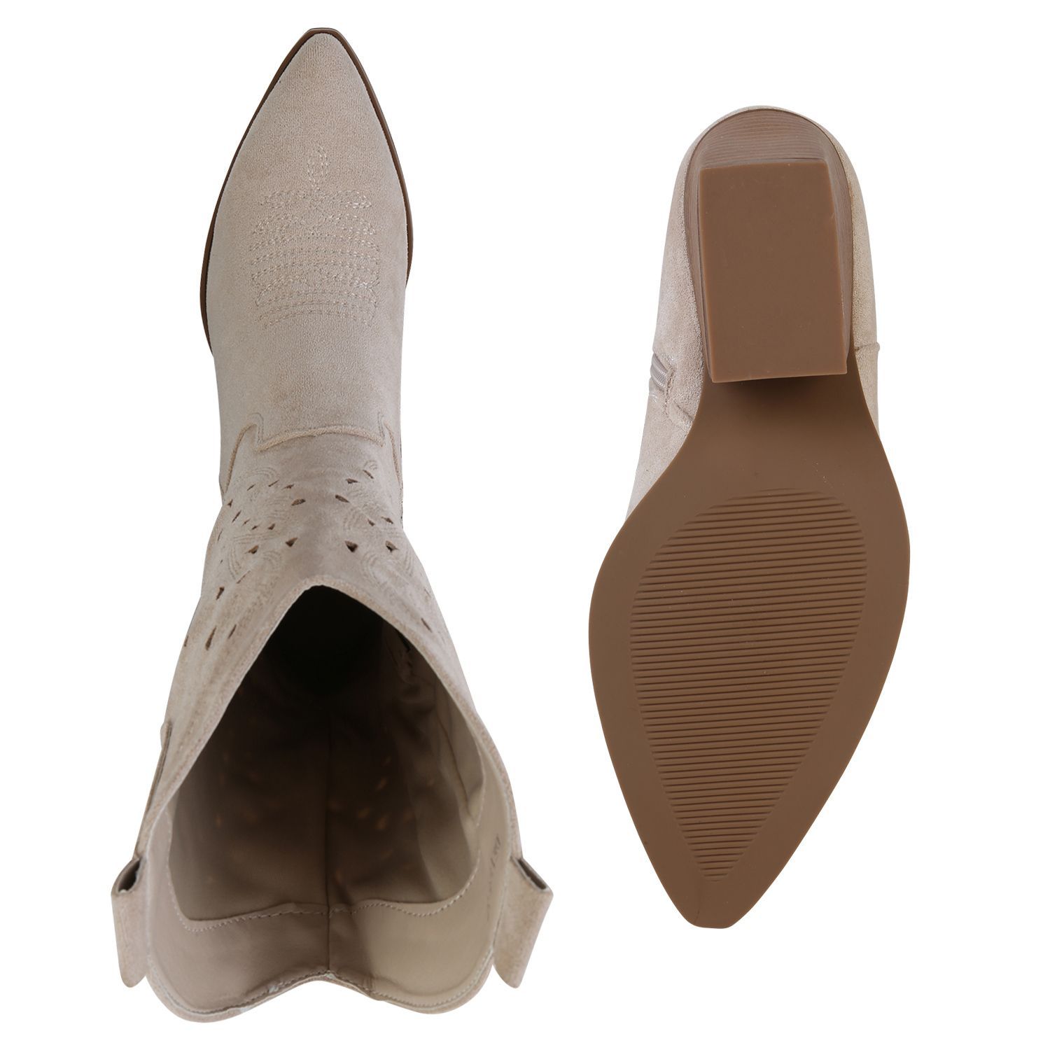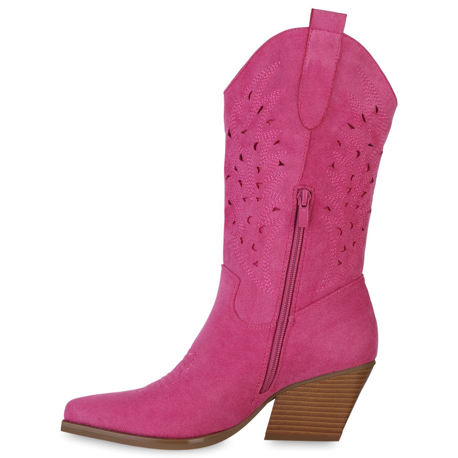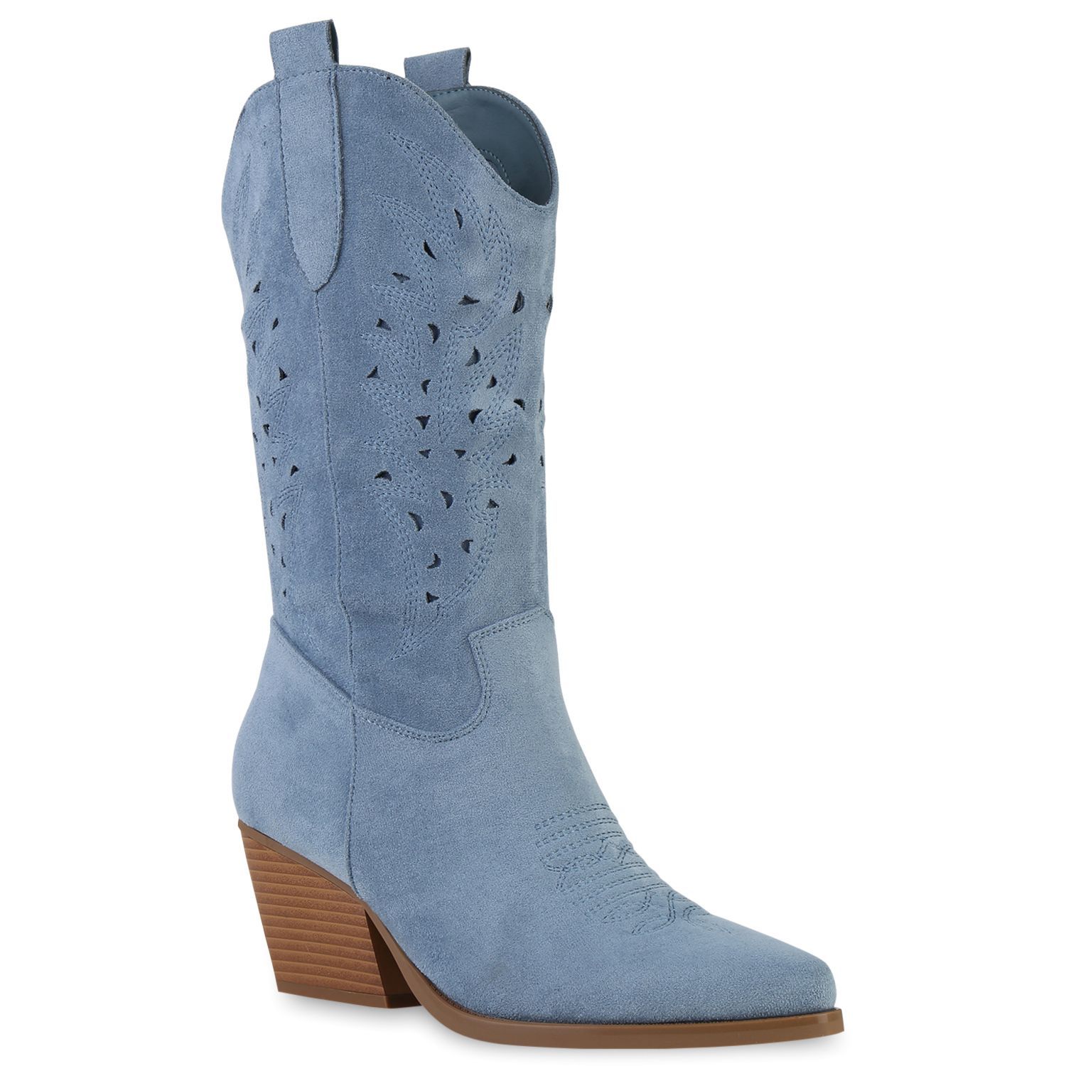 VAN HILL Damen Cowboystiefel Stiefel Stickereien Holzoptikabsatz Schuhe 840054