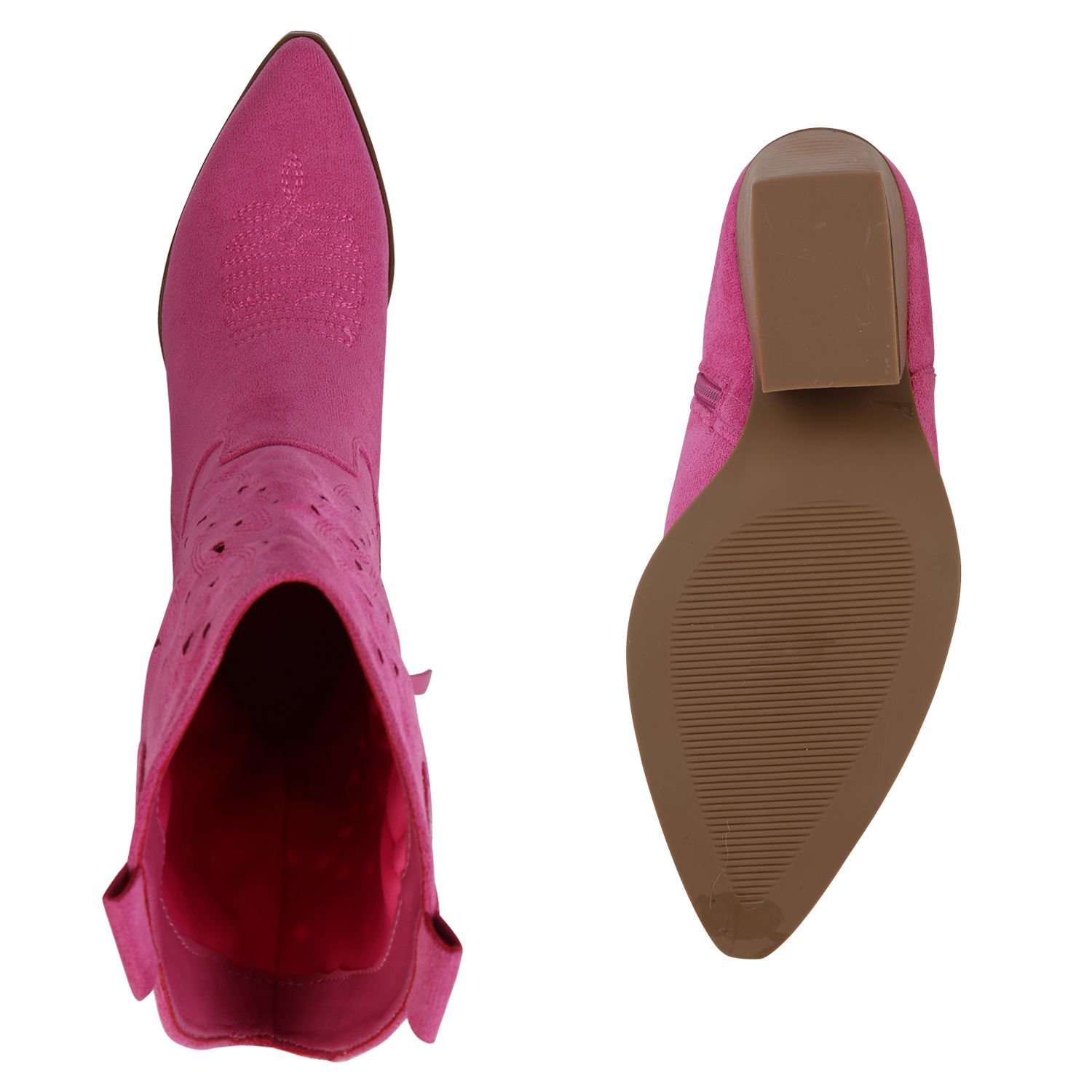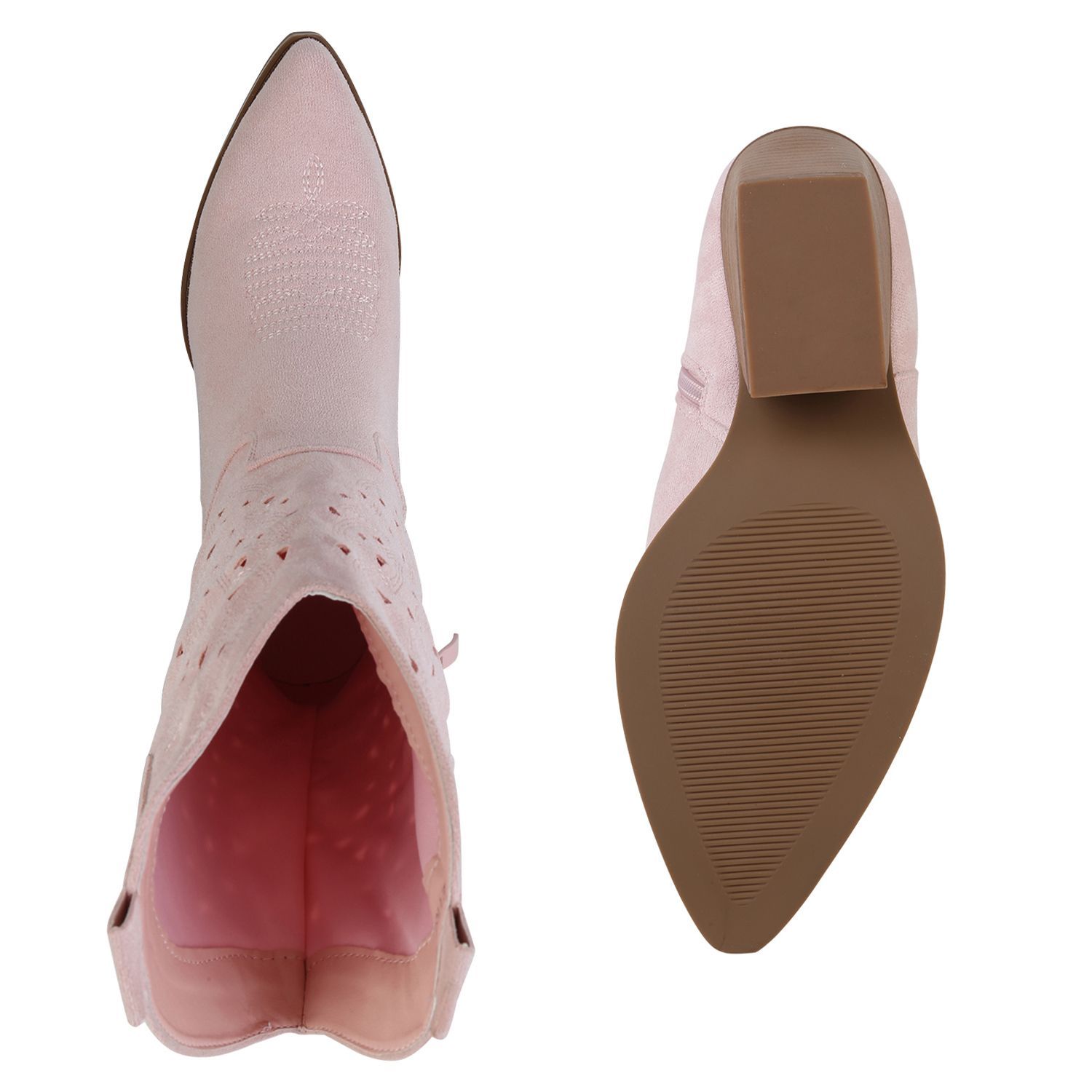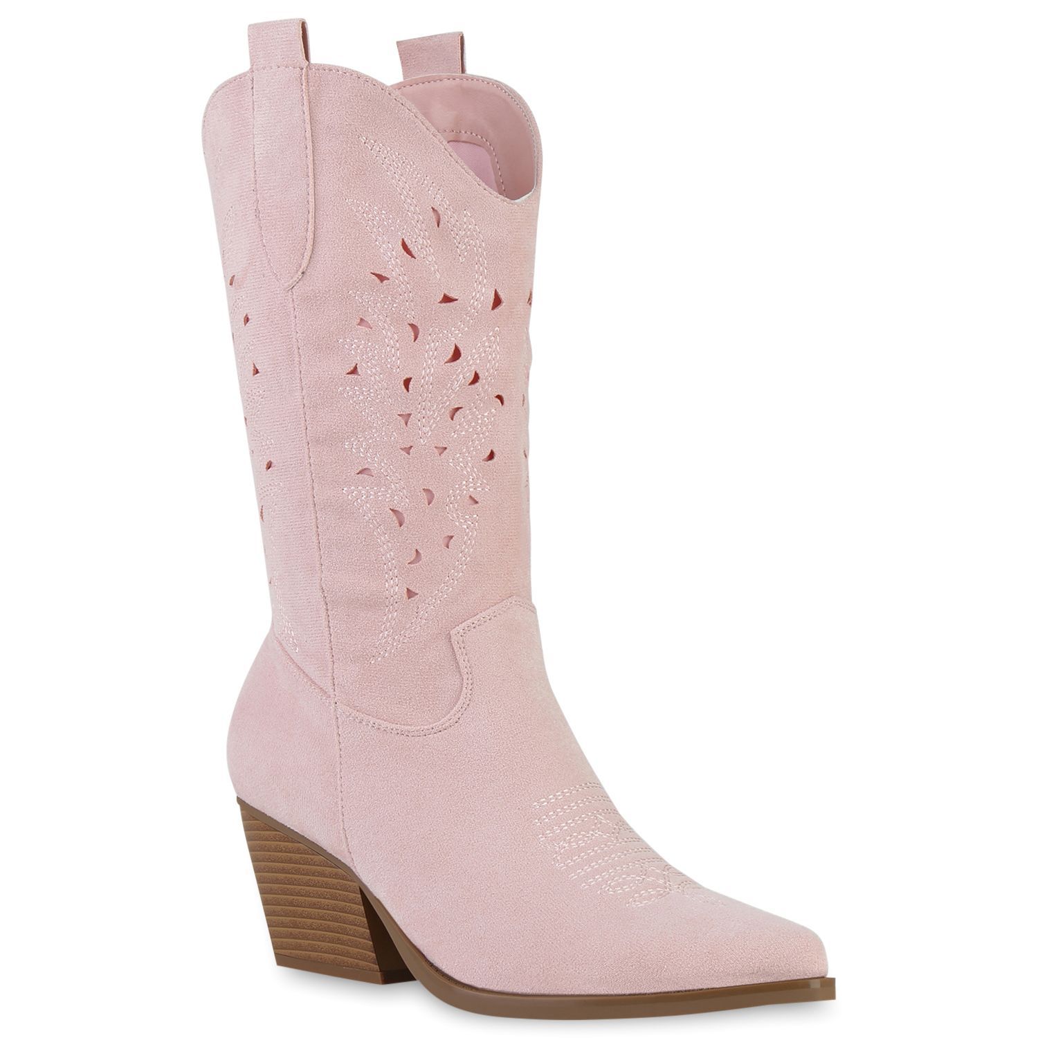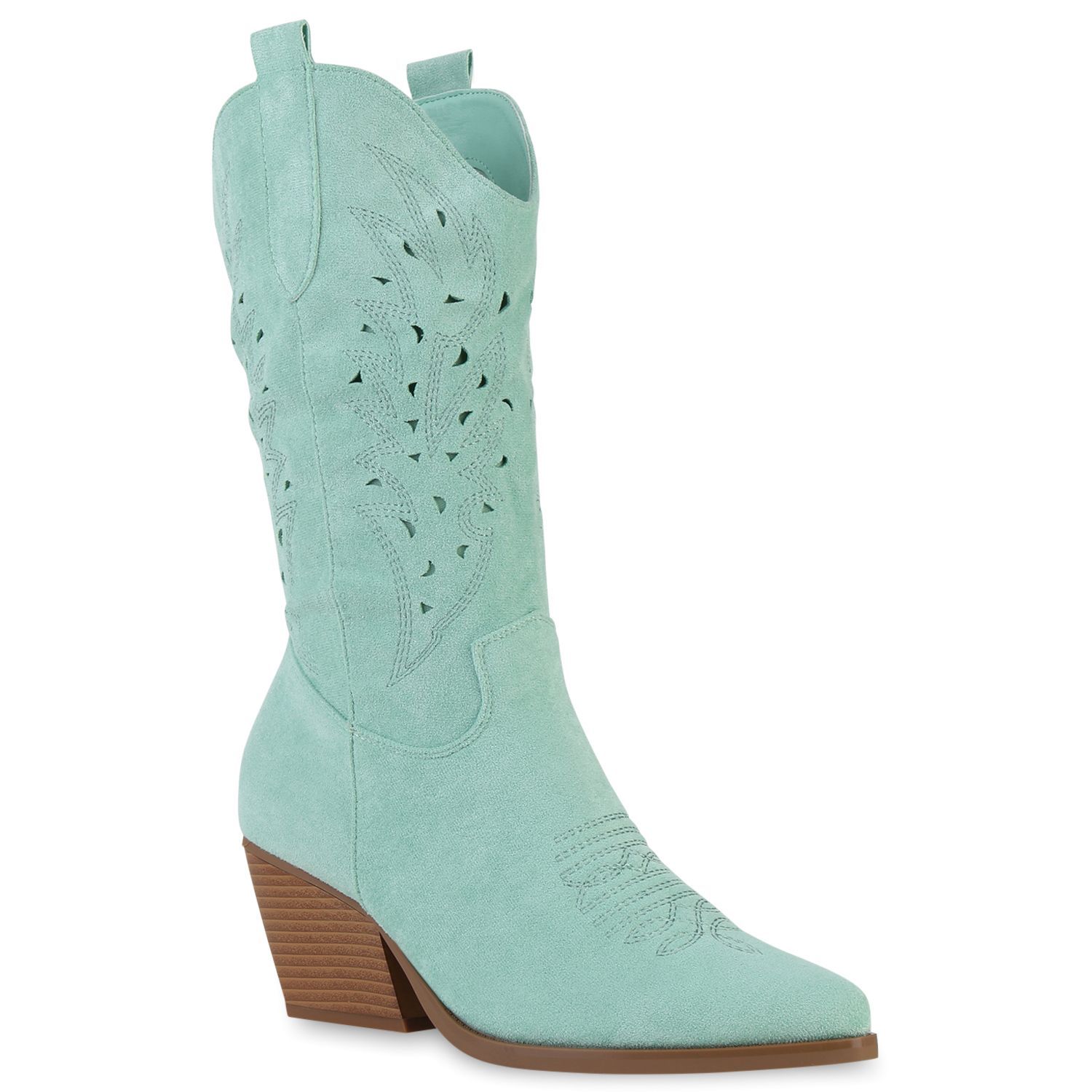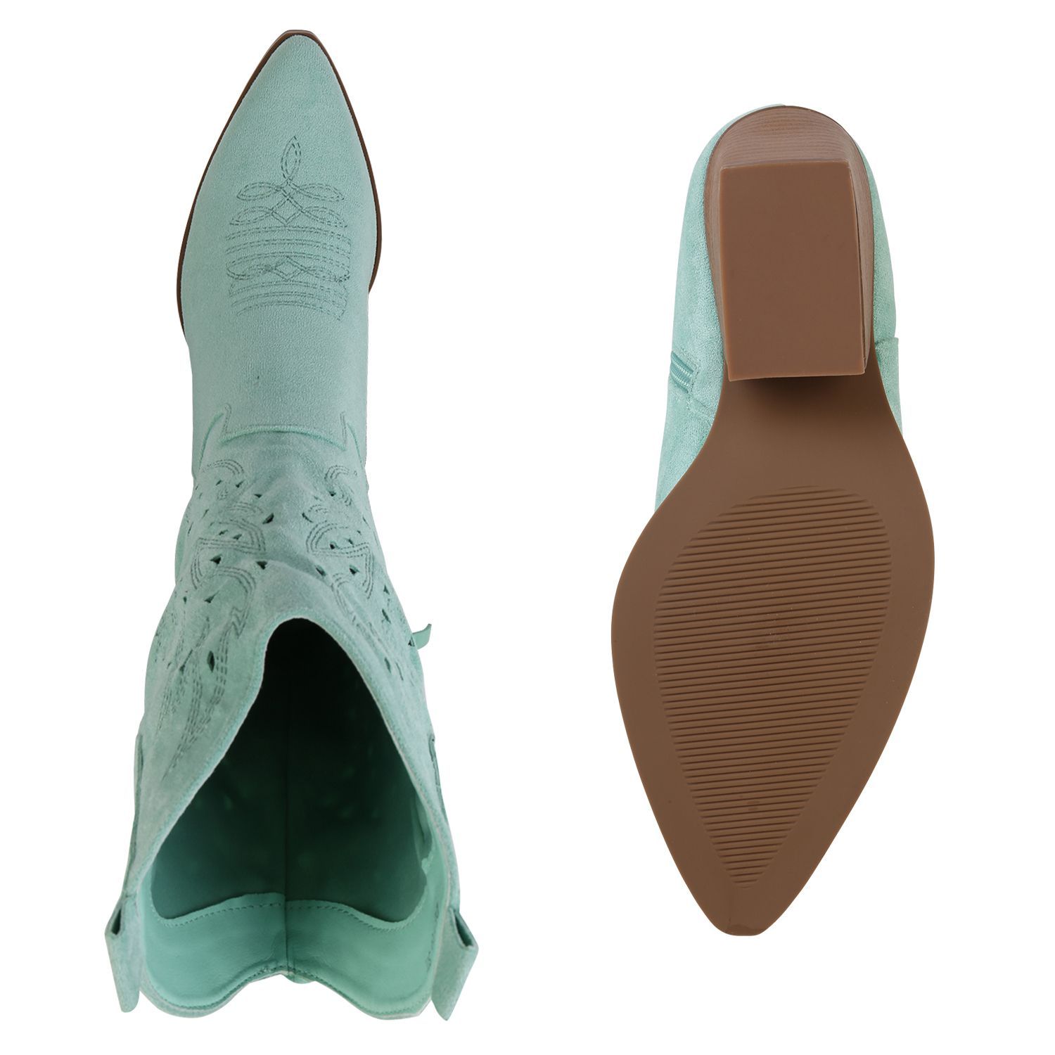 VAN HILL Damen Cowboystiefel Stiefel Stickereien Holzoptikabsatz Schuhe 840054