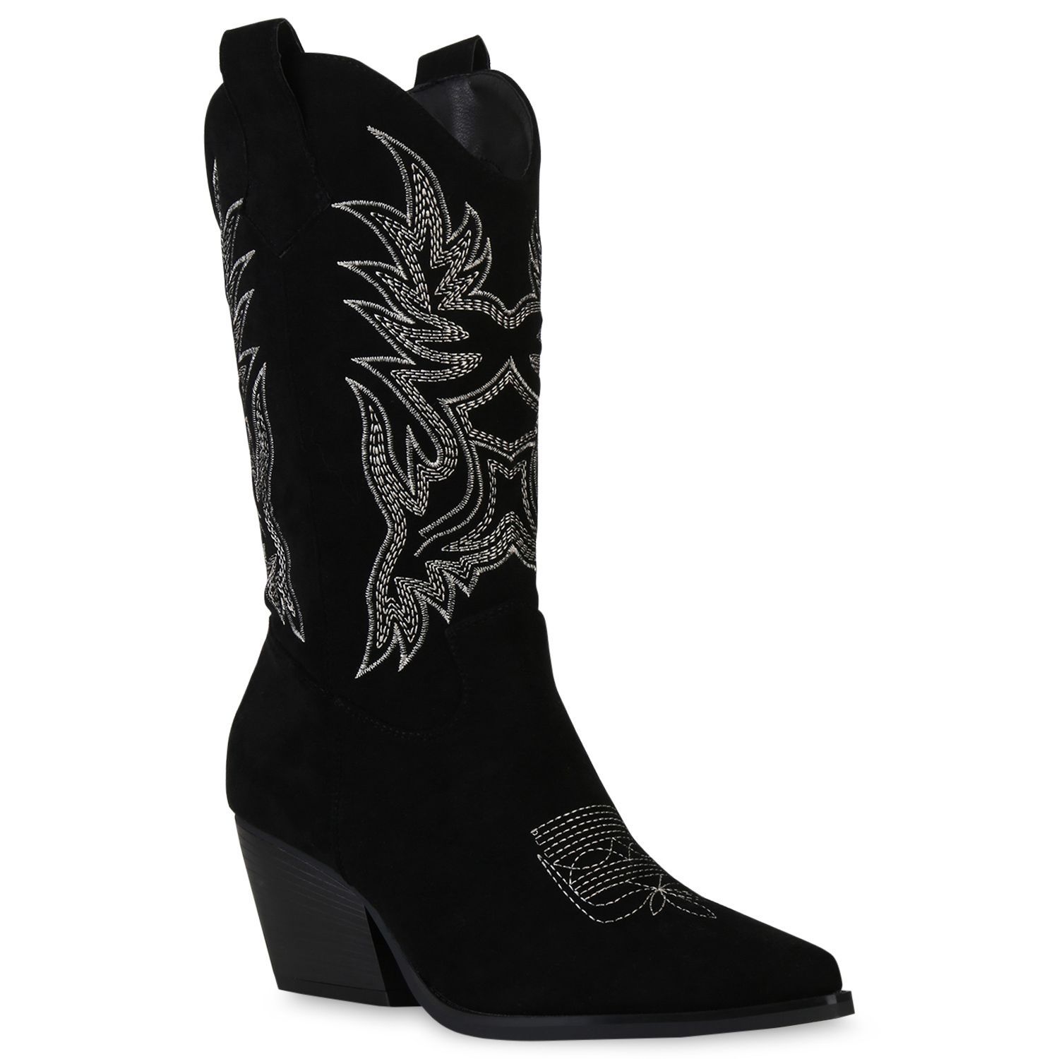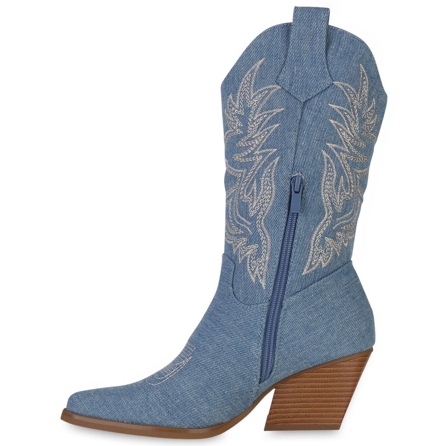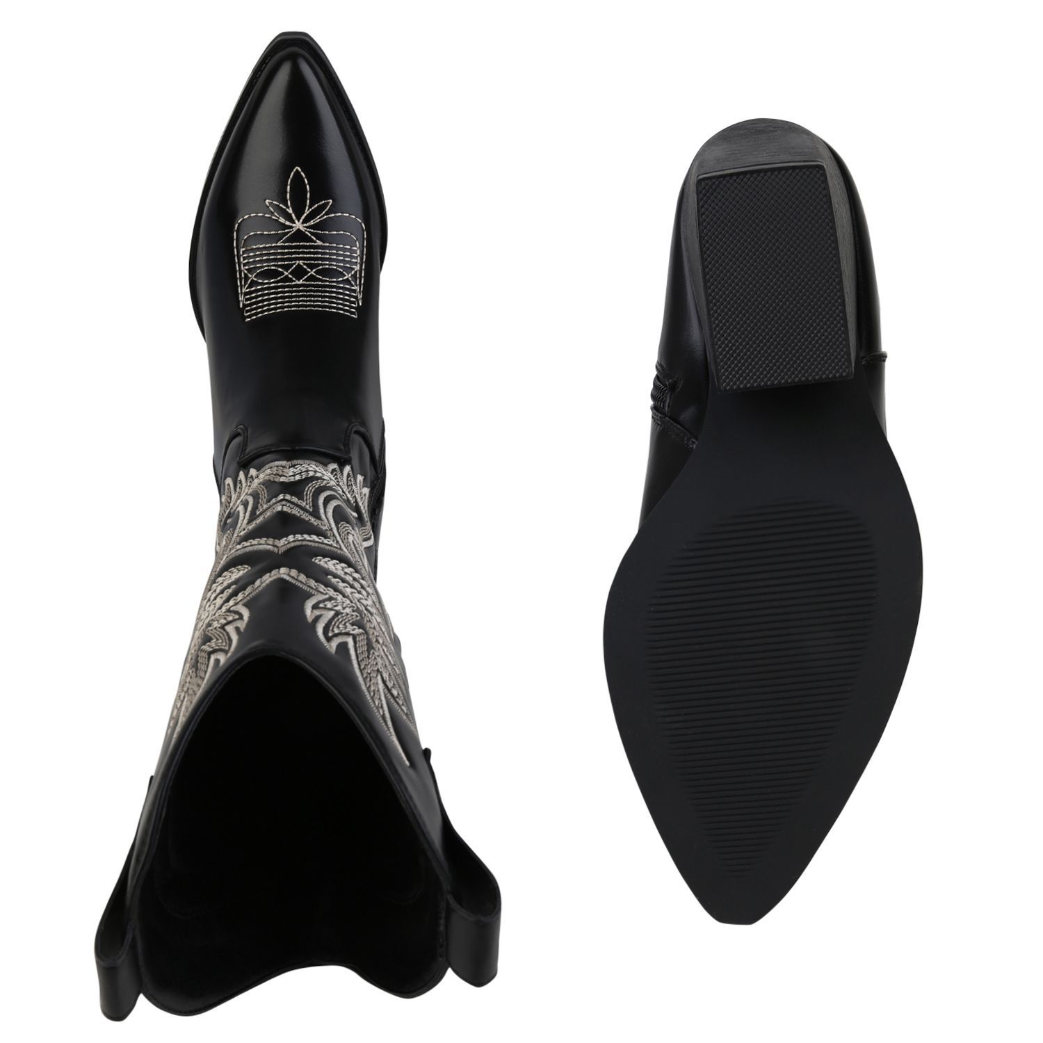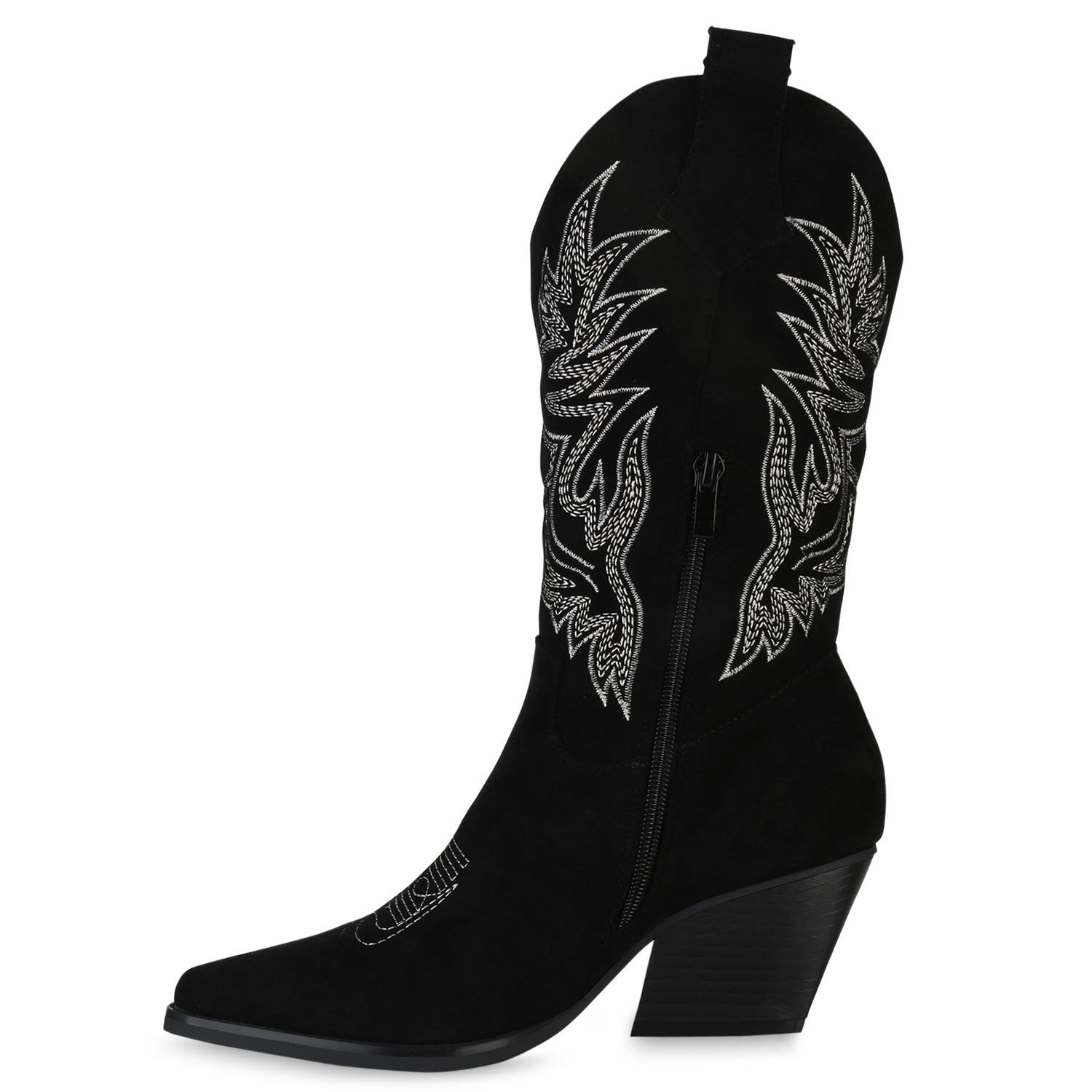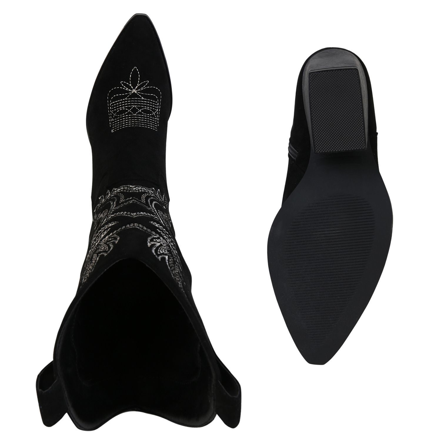 VAN HILL Damen Cowboystiefel Stiefel Stickereien Holzoptikabsatz Schuhe 840142