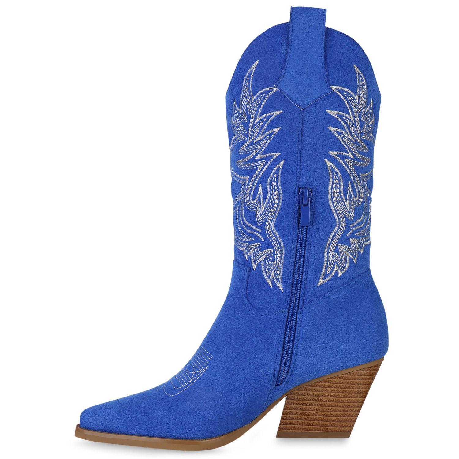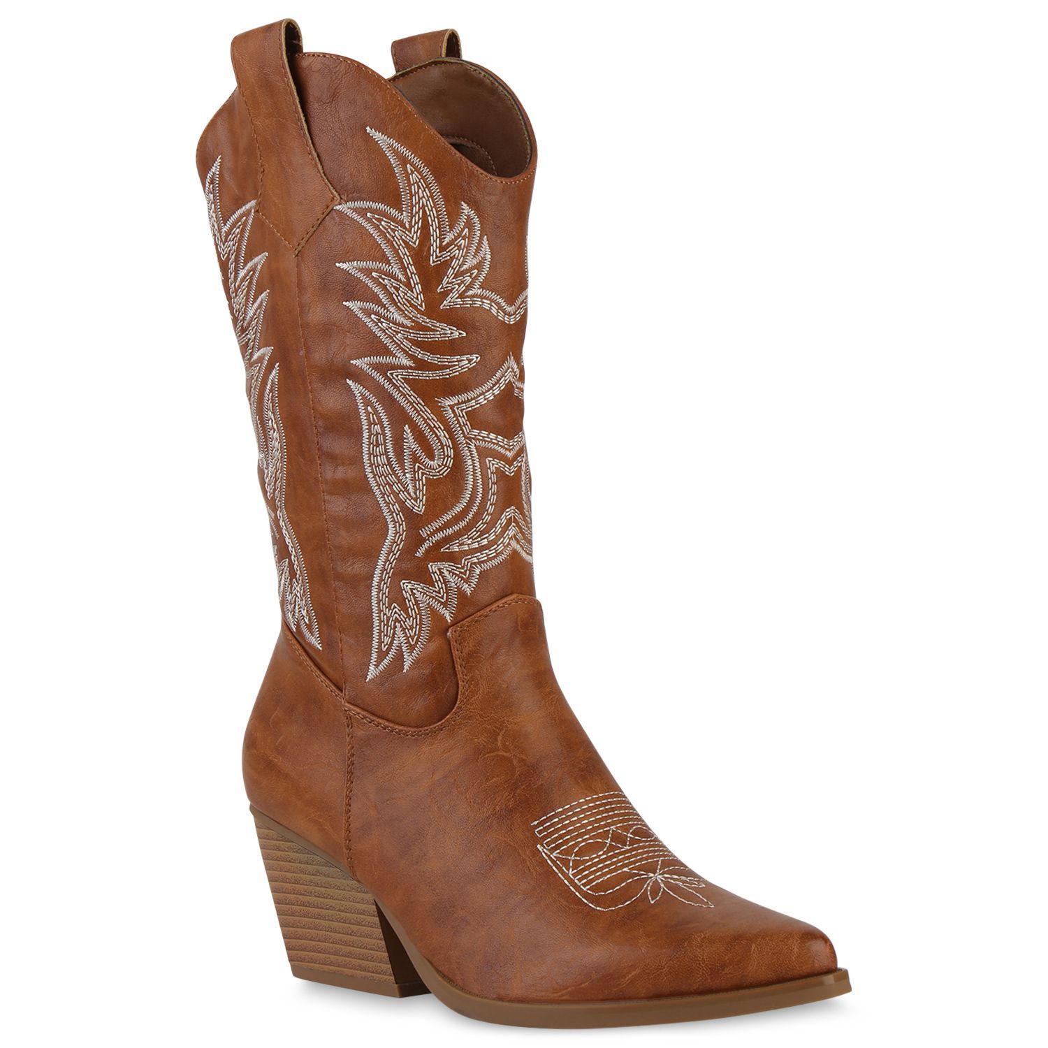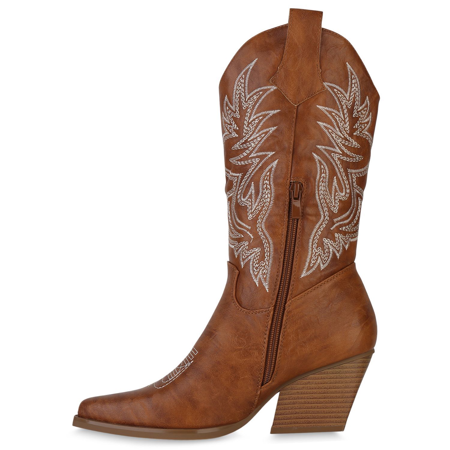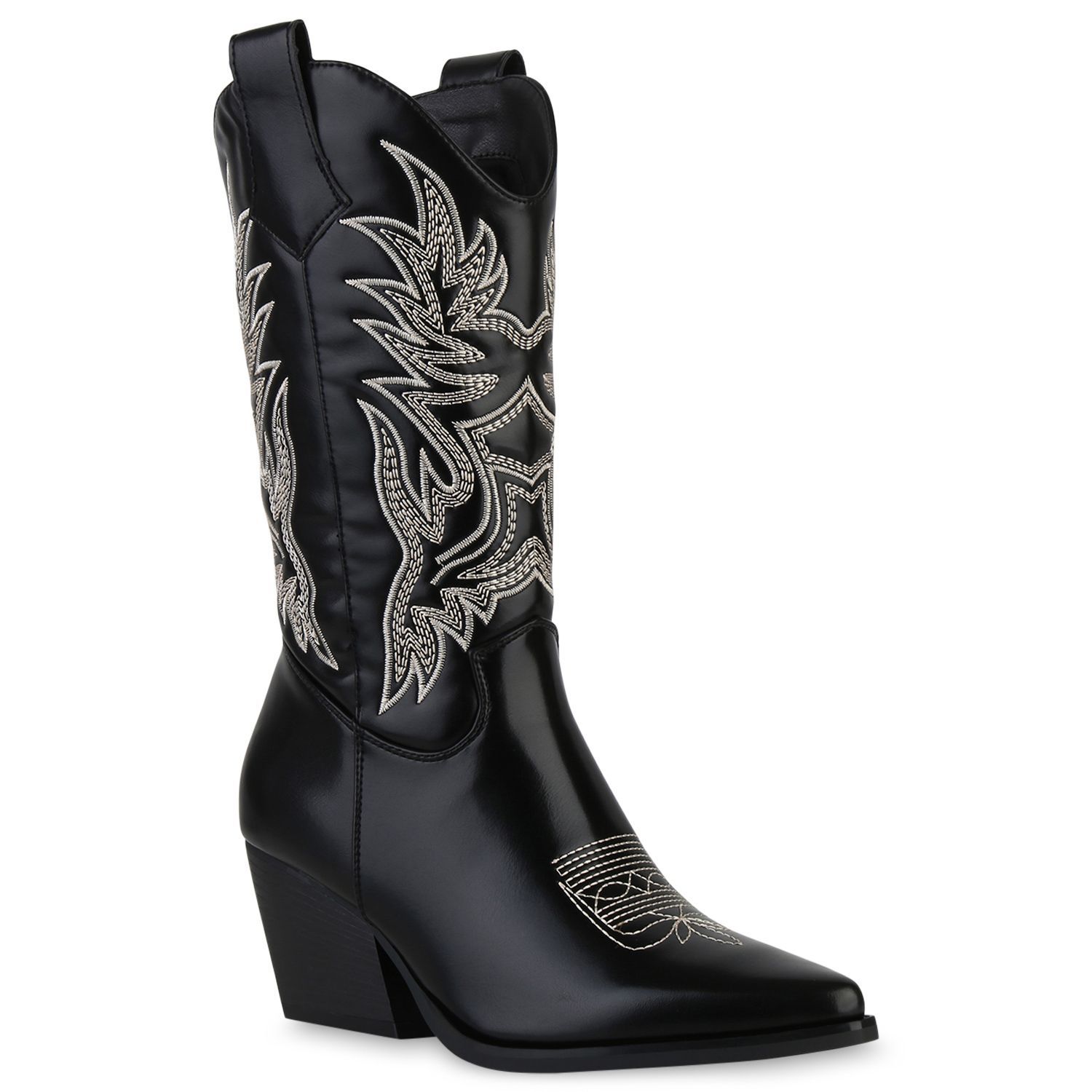 VAN HILL Damen Cowboystiefel Stiefel Stickereien Holzoptikabsatz Schuhe 840142
