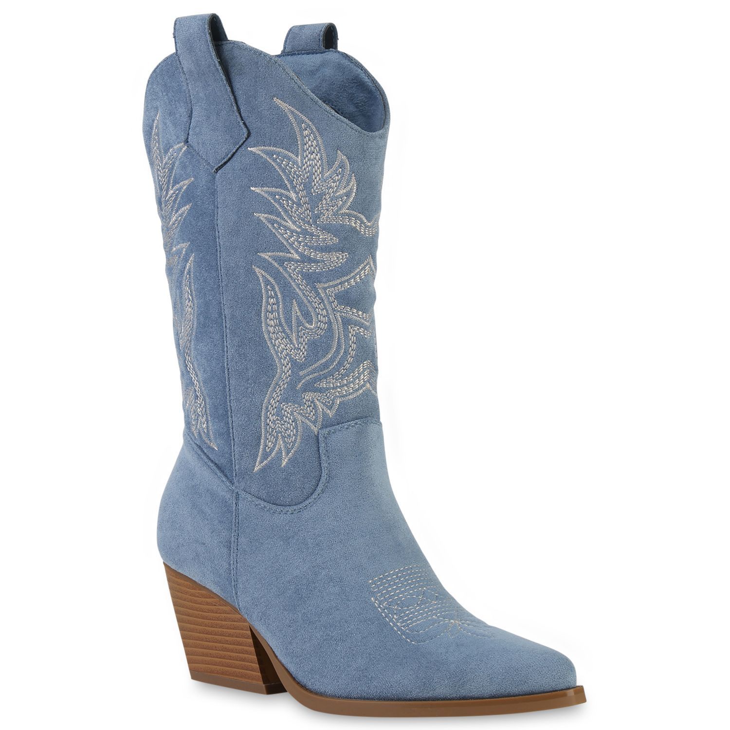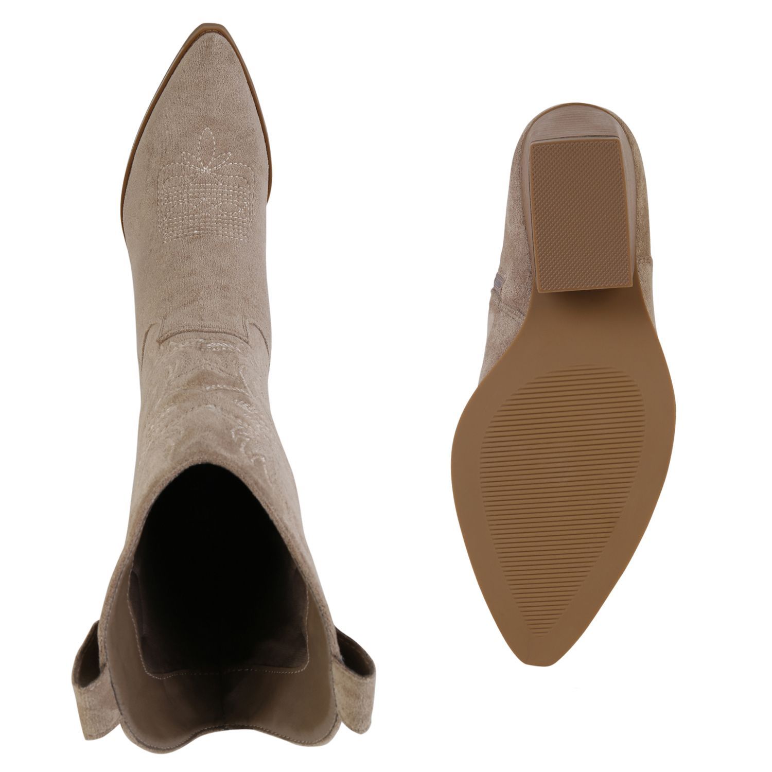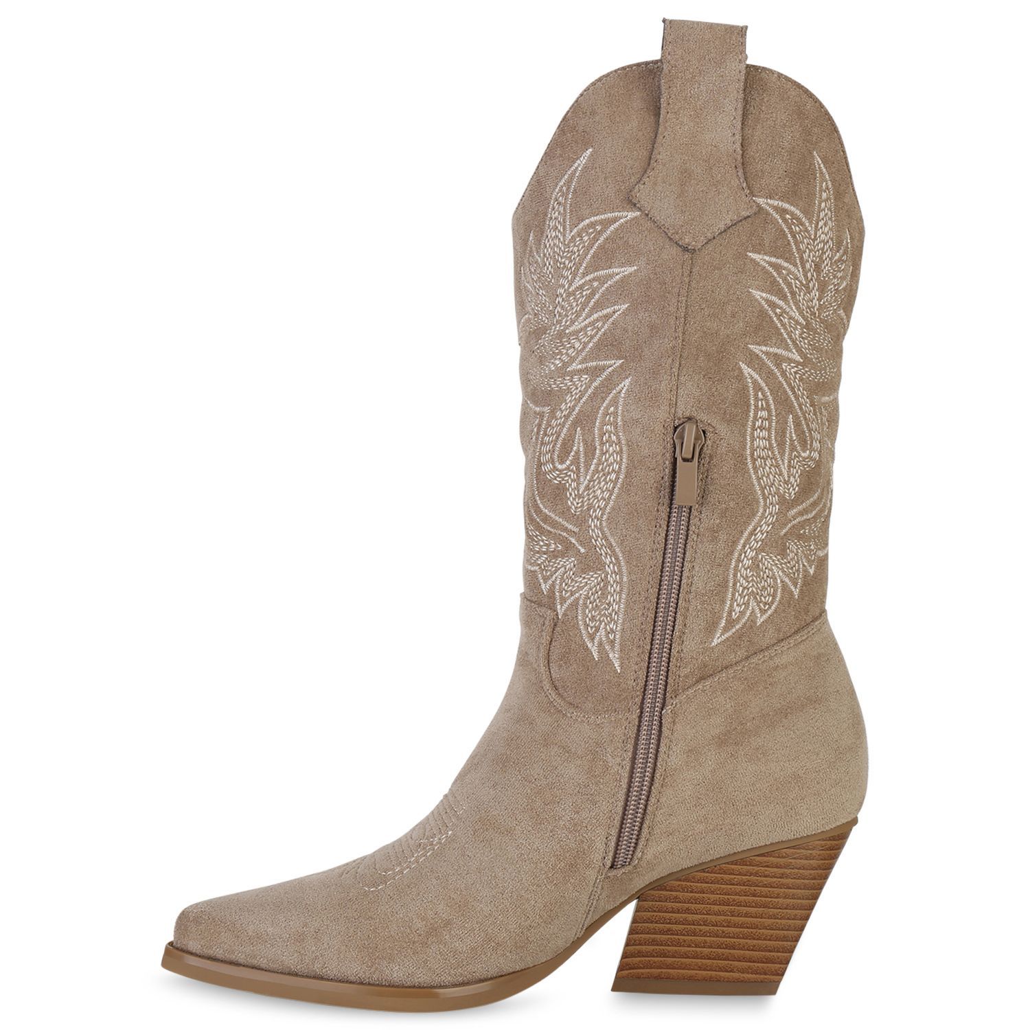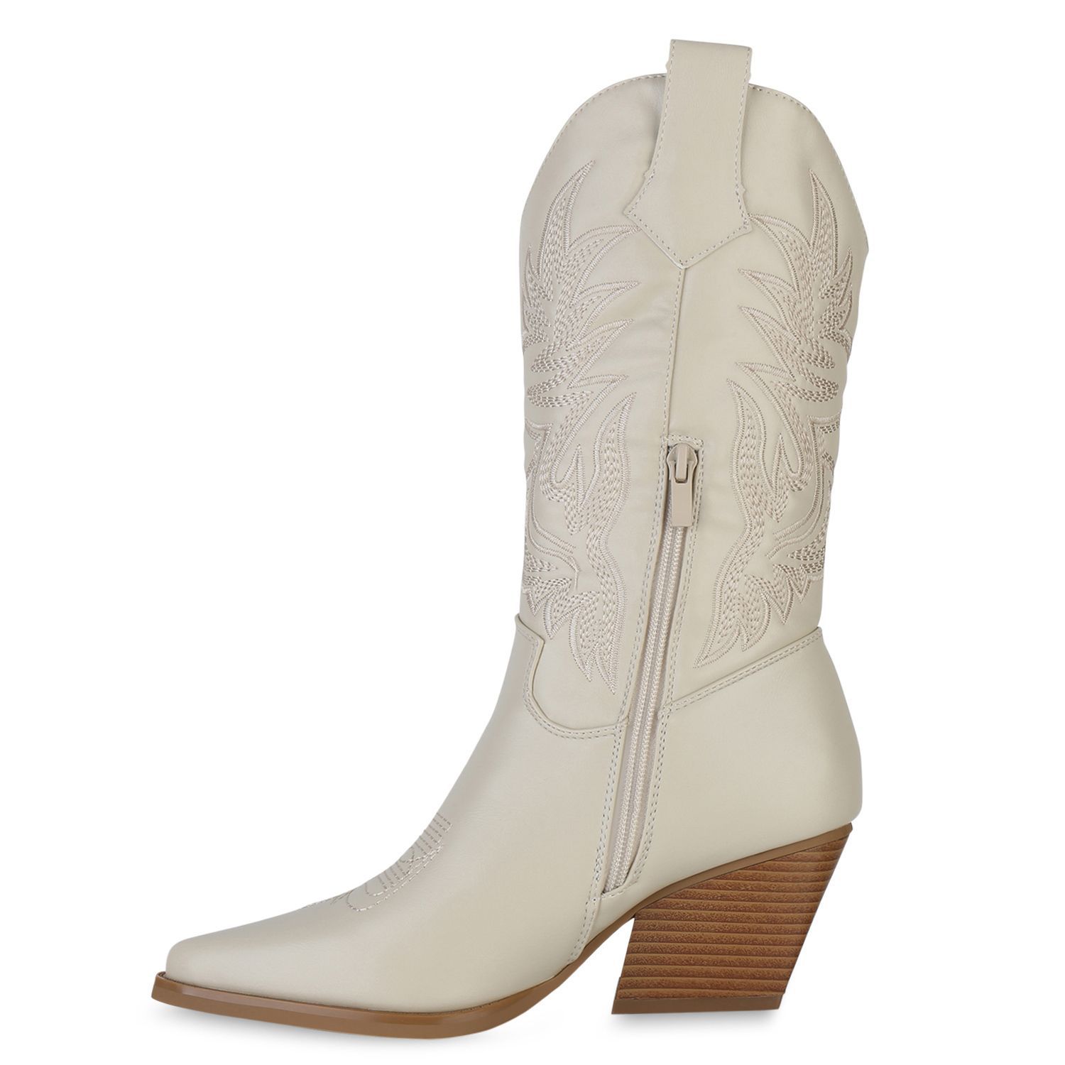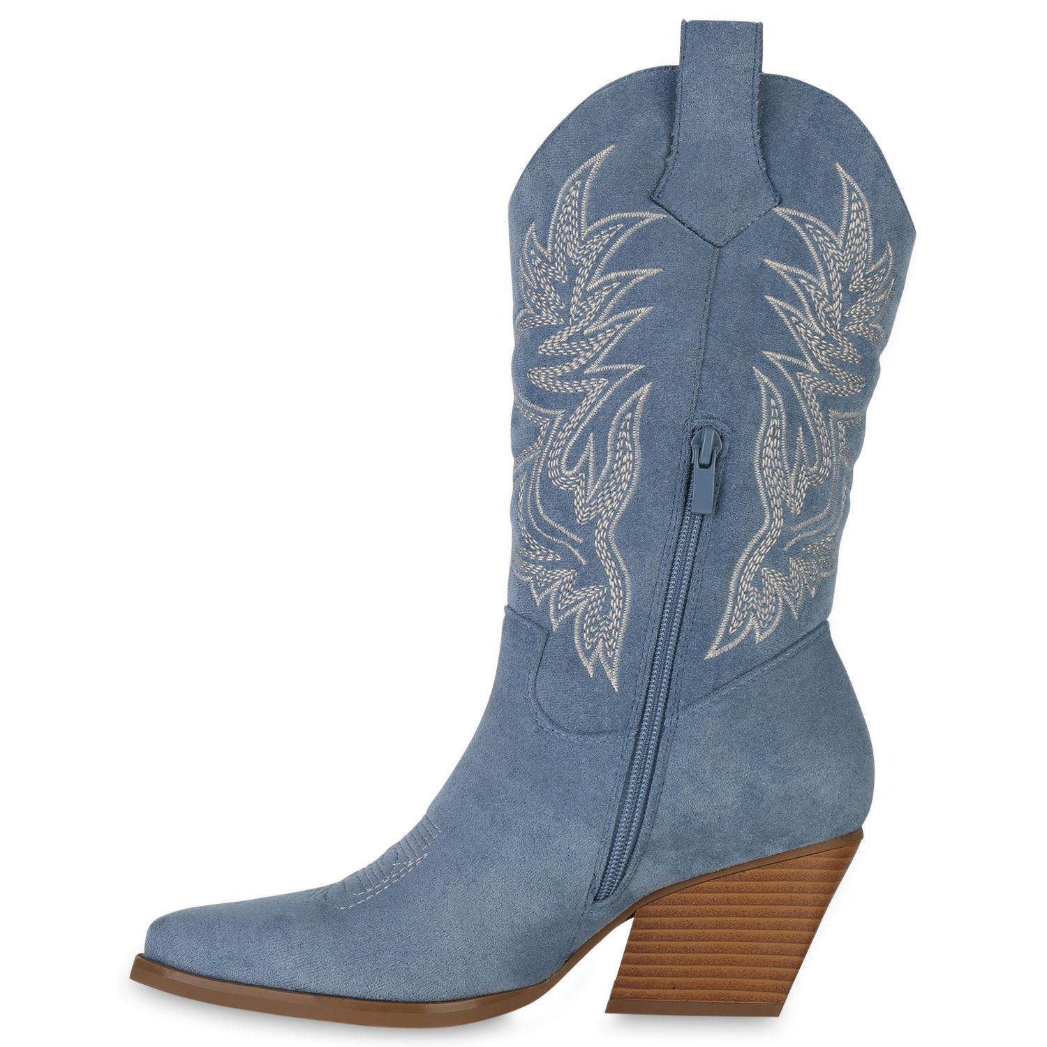 VAN HILL Damen Cowboystiefel Stiefel Stickereien Holzoptikabsatz Schuhe 840142