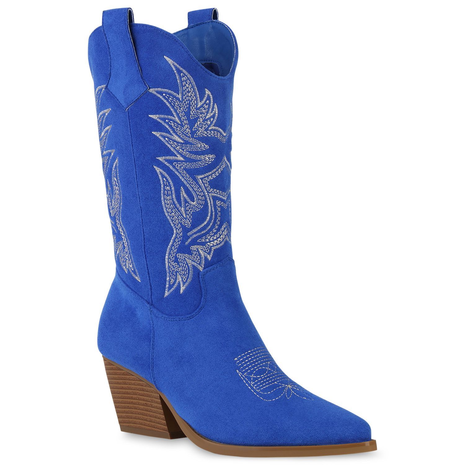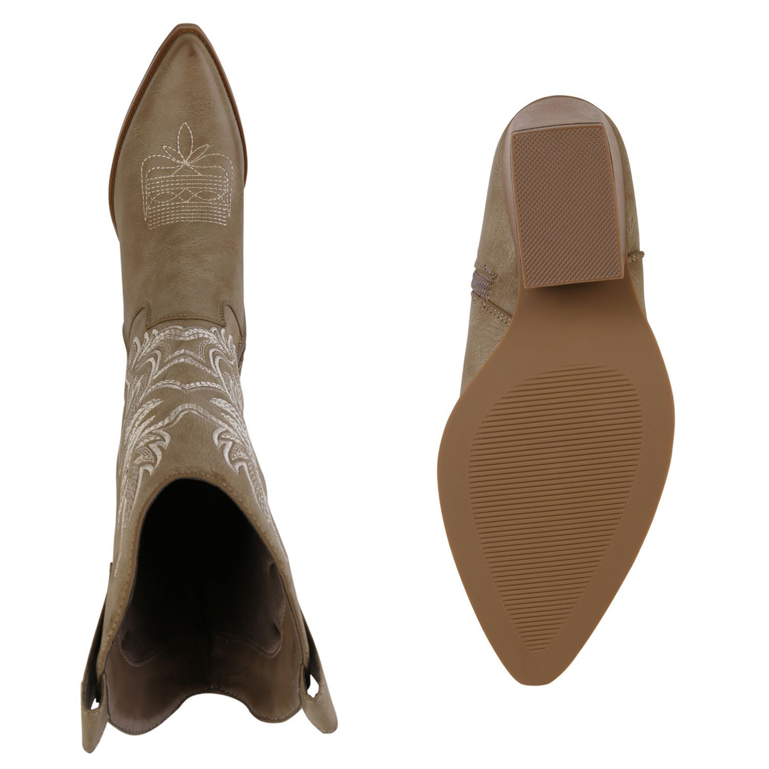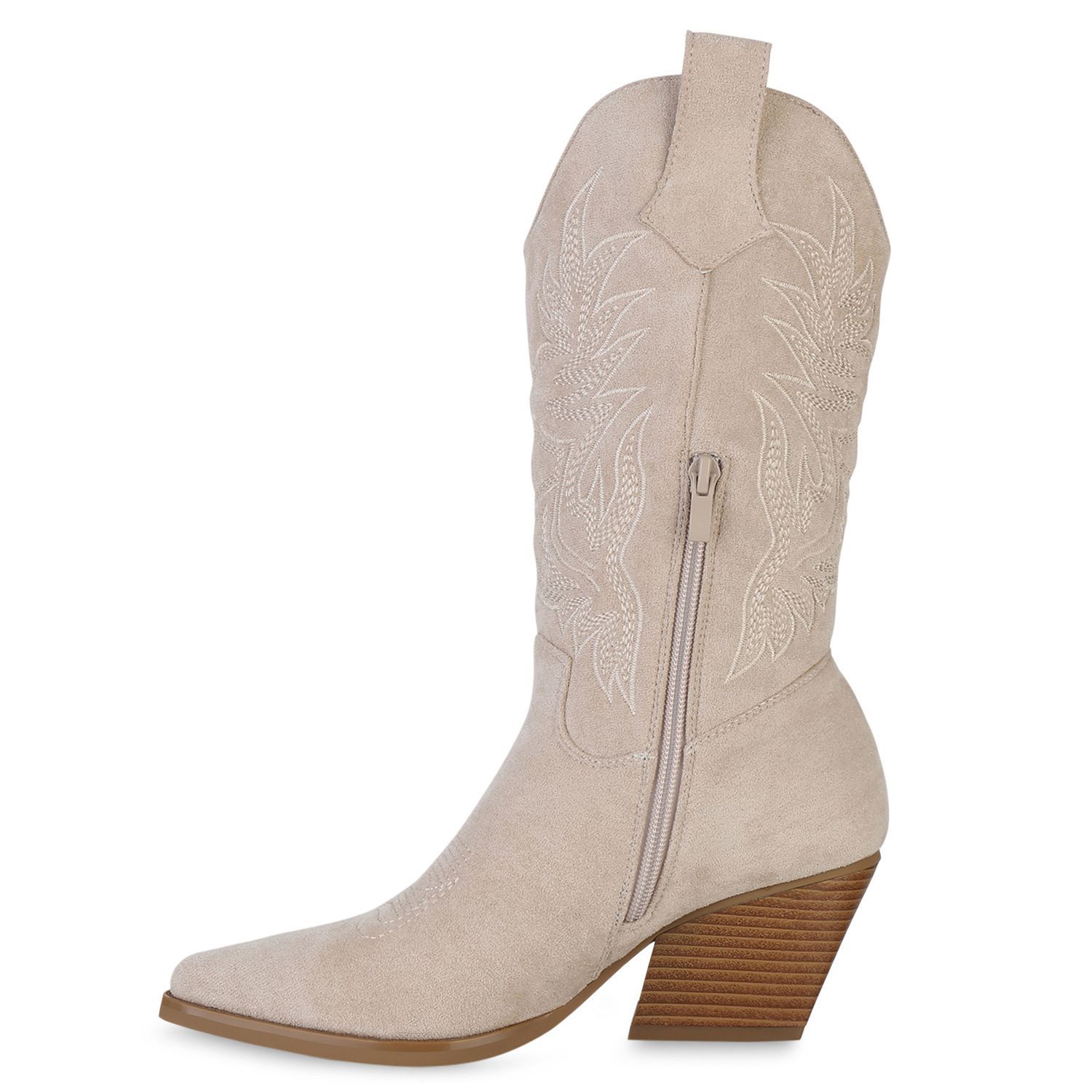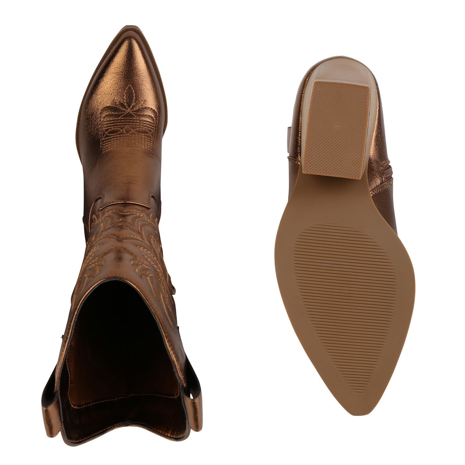 VAN HILL Damen Cowboystiefel Stiefel Stickereien Holzoptikabsatz Schuhe 840142