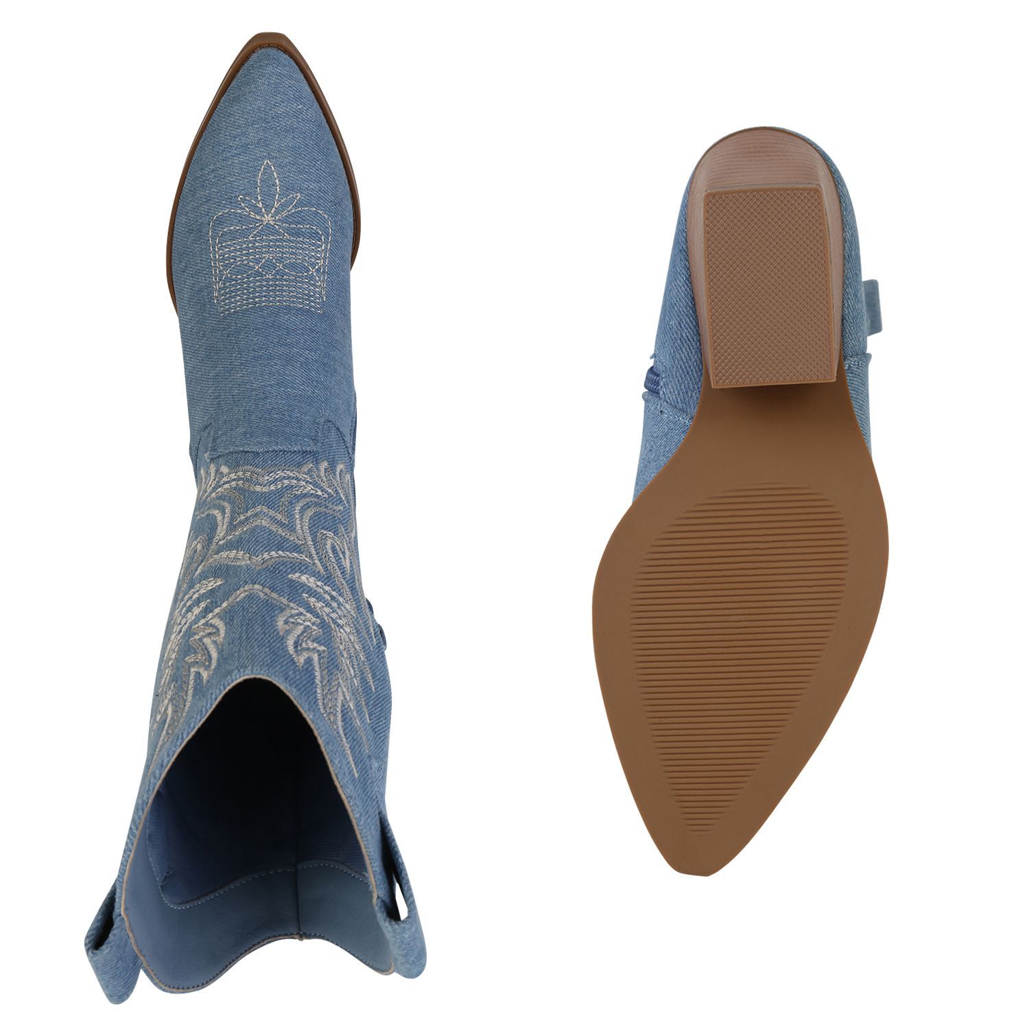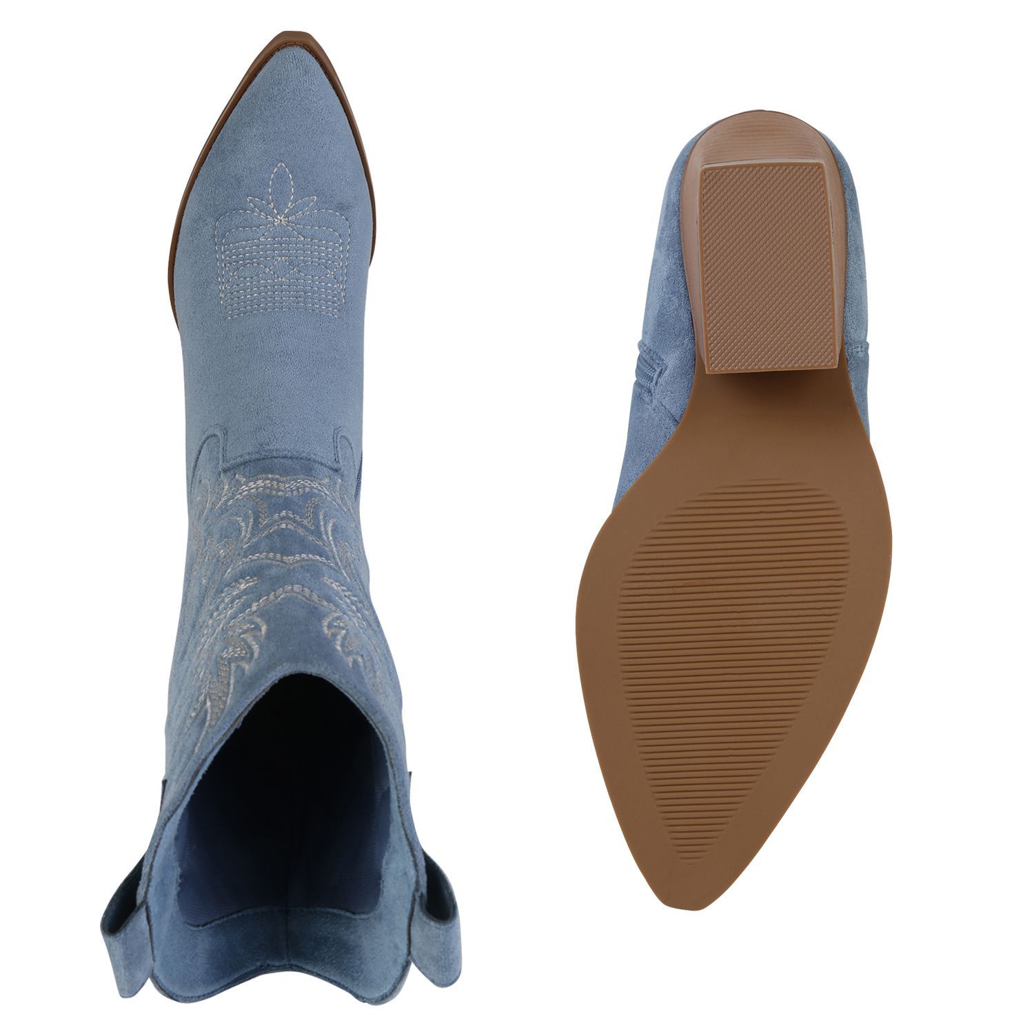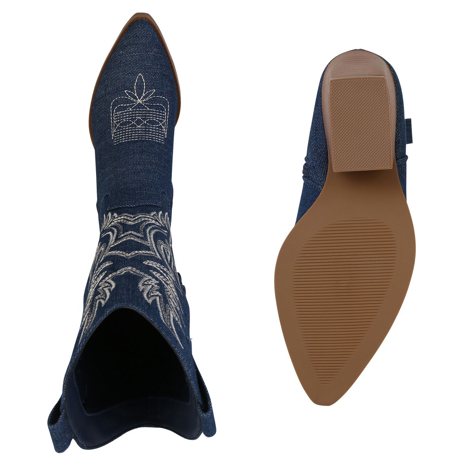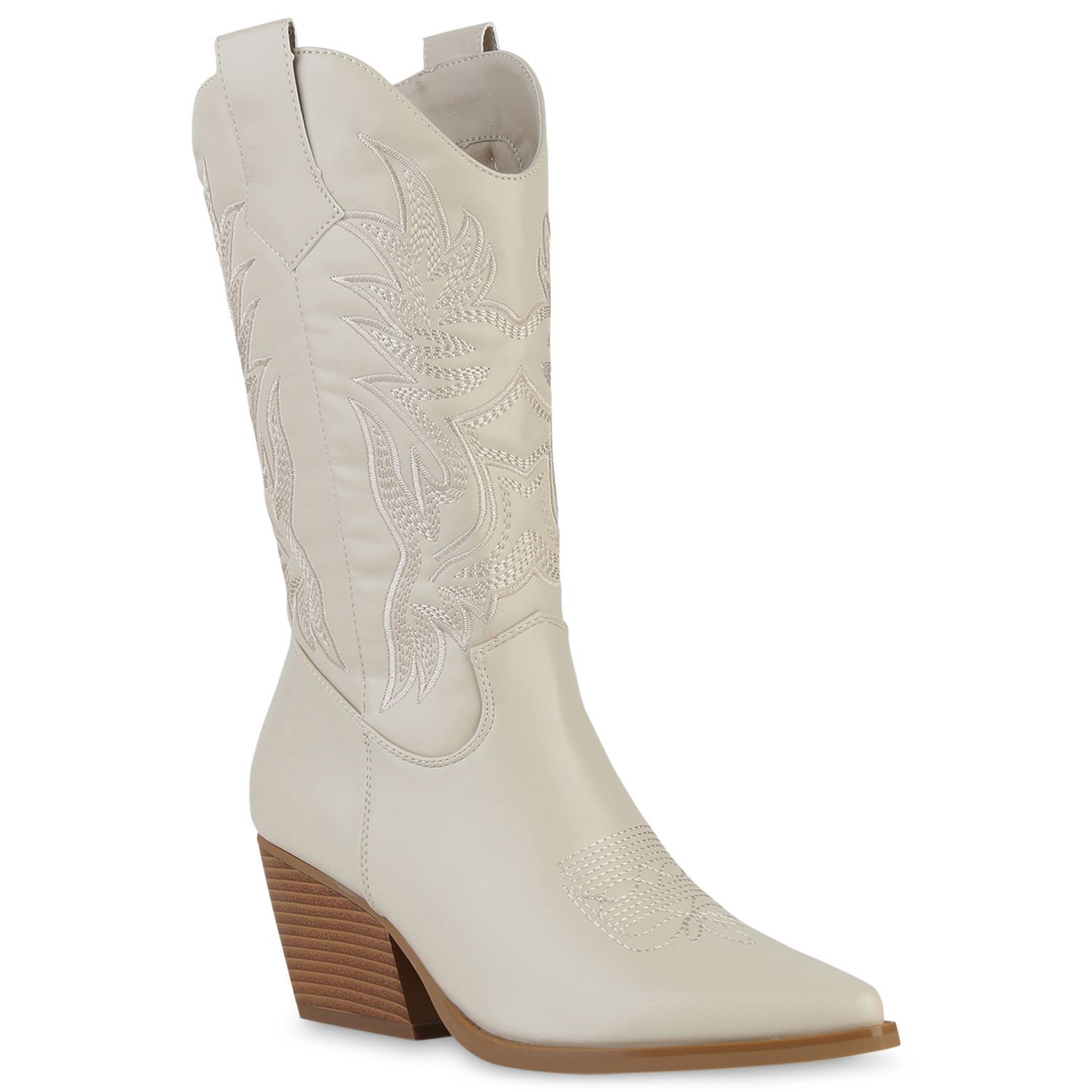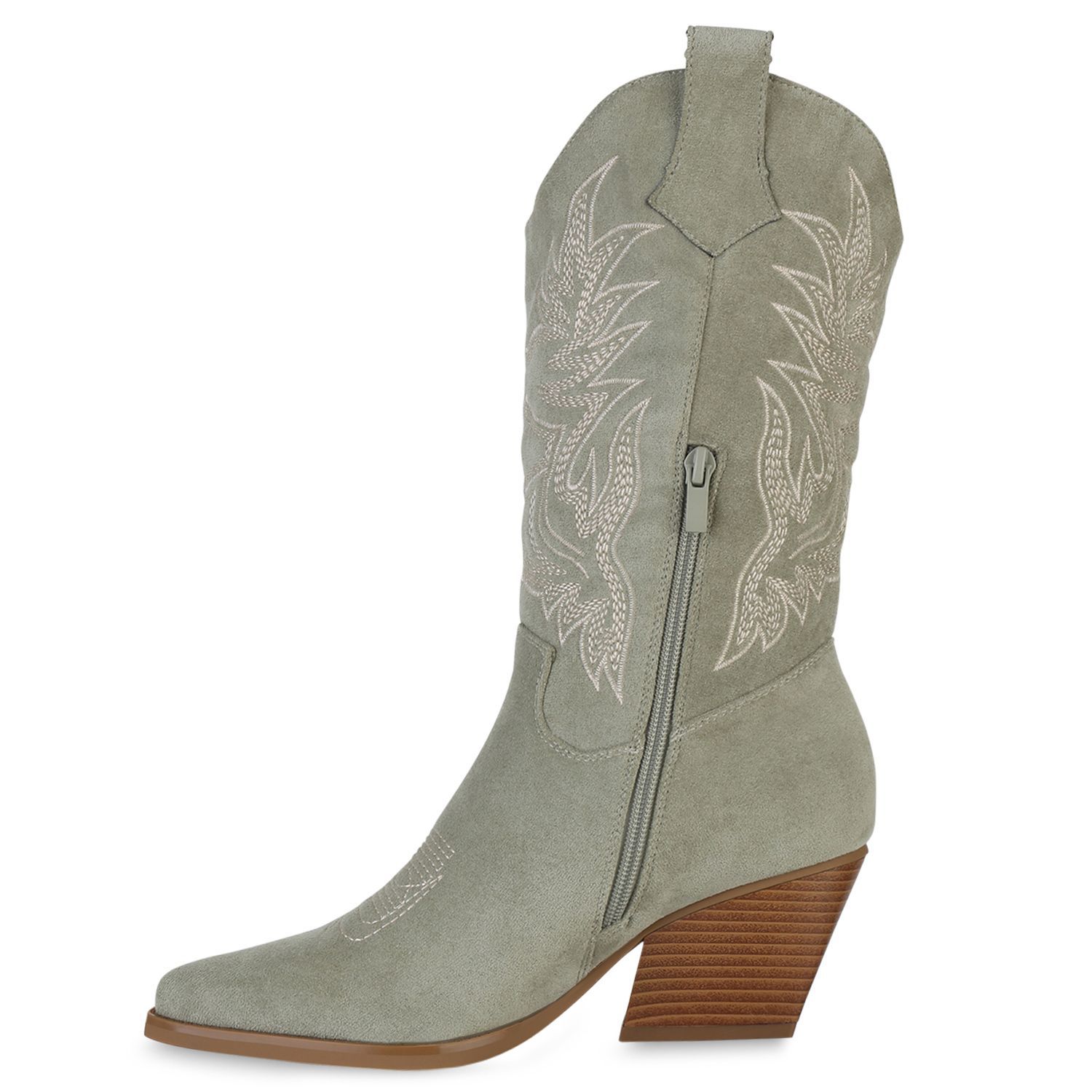 VAN HILL Damen Cowboystiefel Stiefel Stickereien Holzoptikabsatz Schuhe 840142